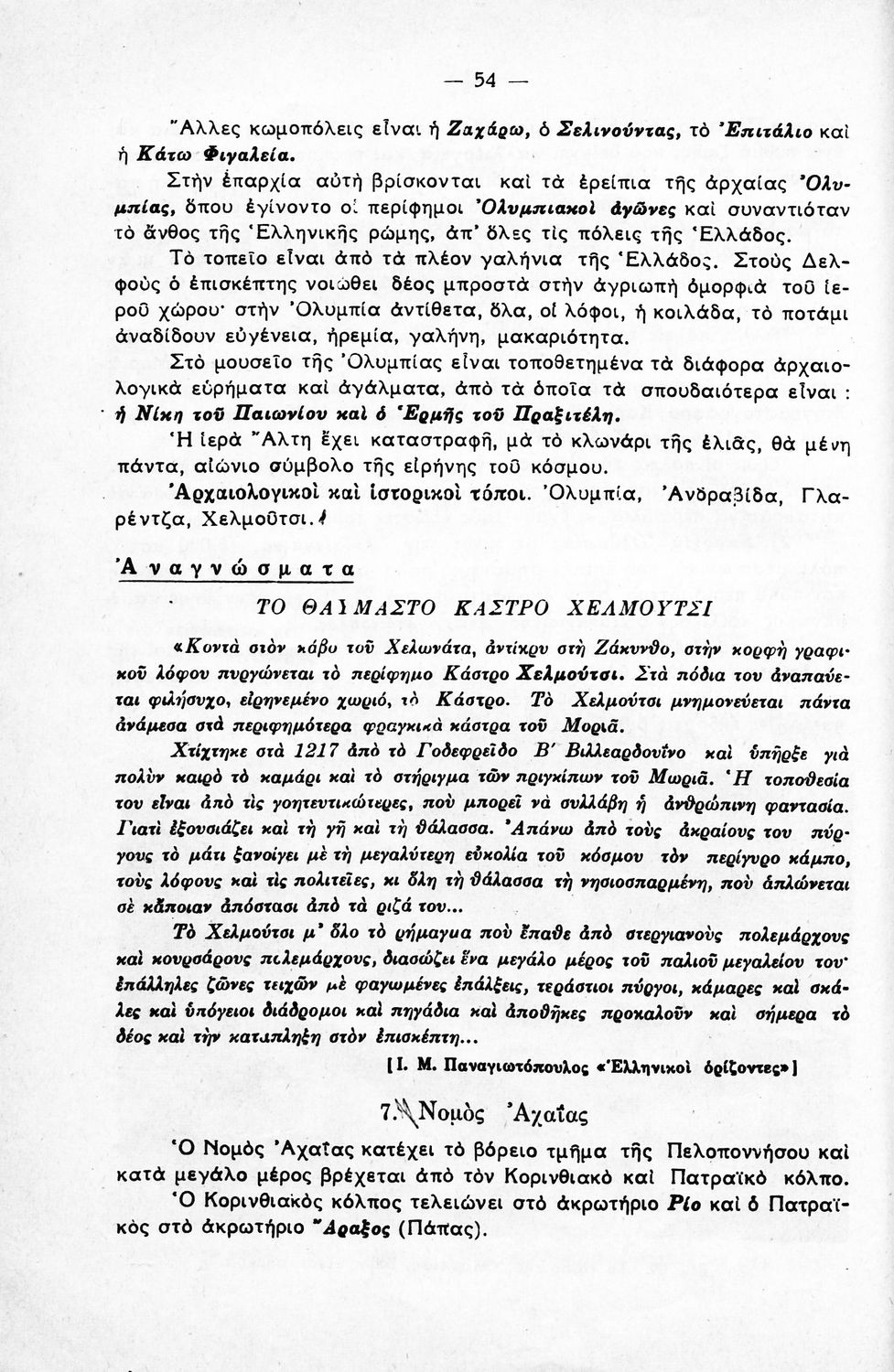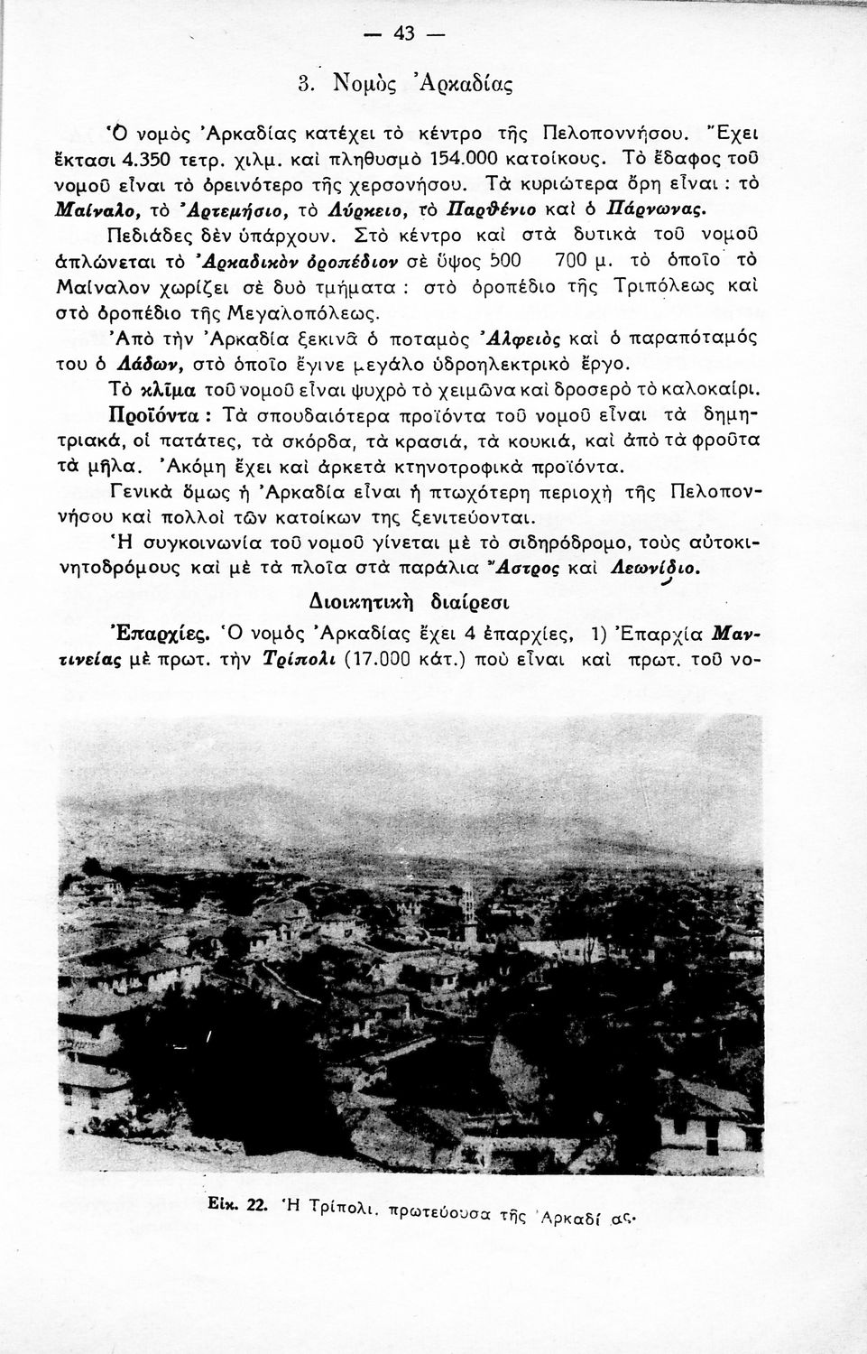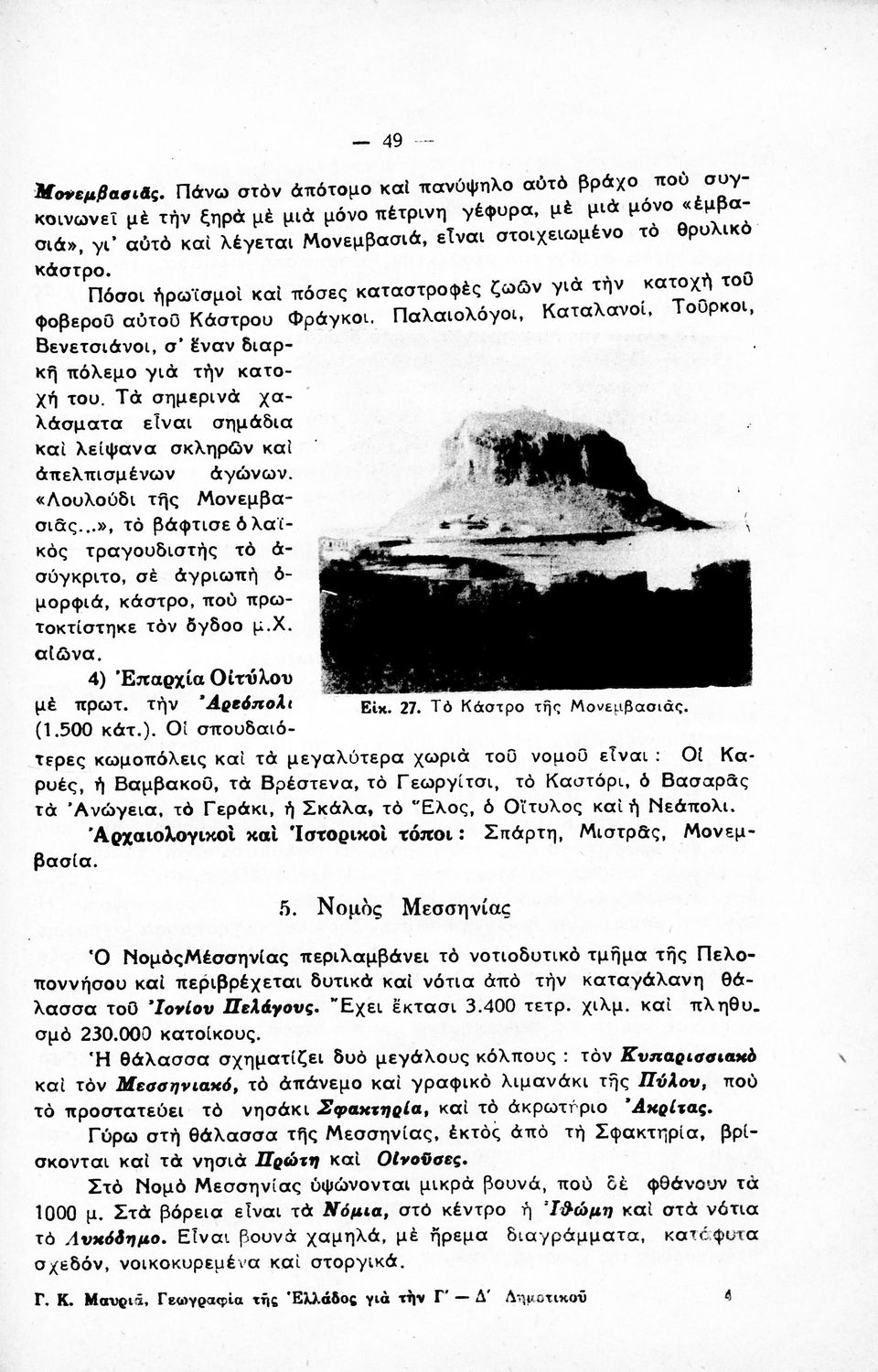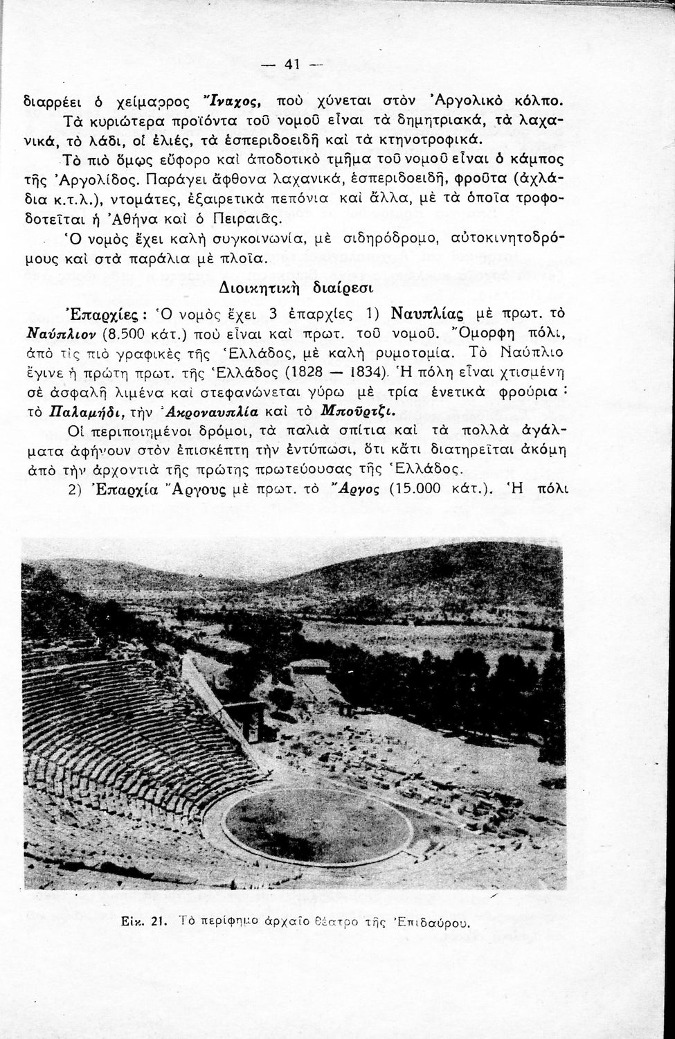 Σχολικό εγχειρίδιο Γεωγραφίας για τη Γ΄, Δ΄ Δημοτικού. Μελετά την Ελλάδα ανά γεωγραφικό νομό με πληροφορίες από το χάρτη της περιοχής και στοιχεία της ιστορίας και της οικονομικής ζωής.
