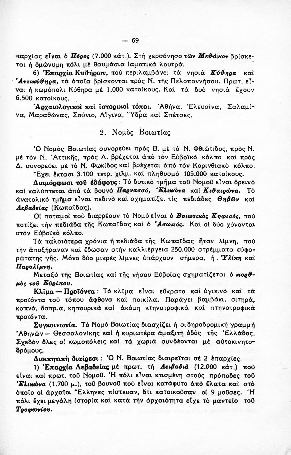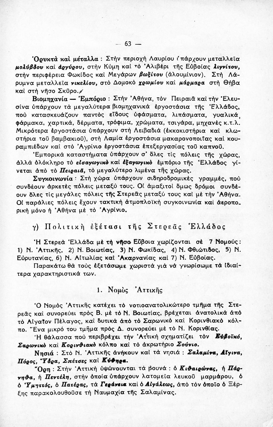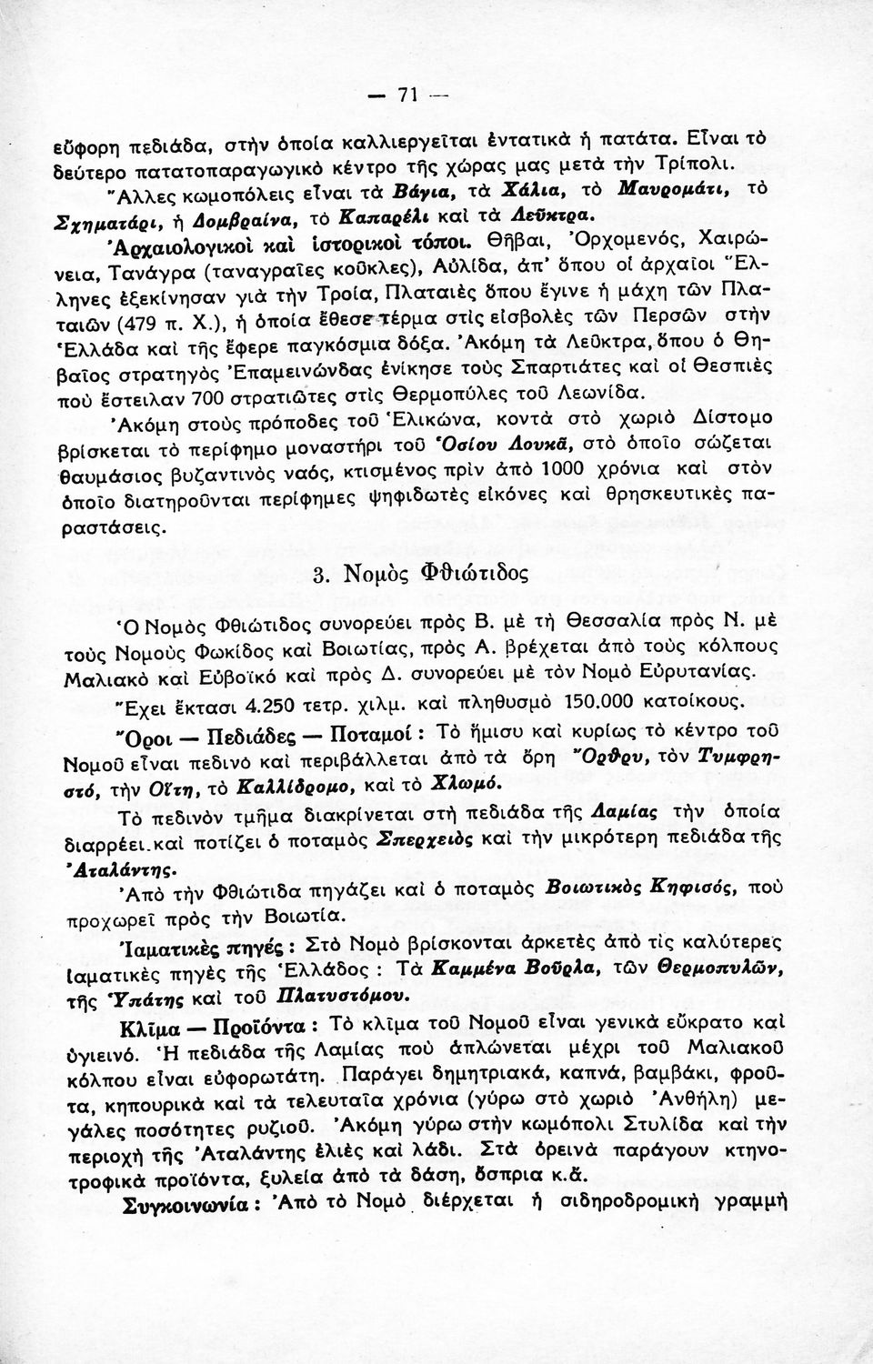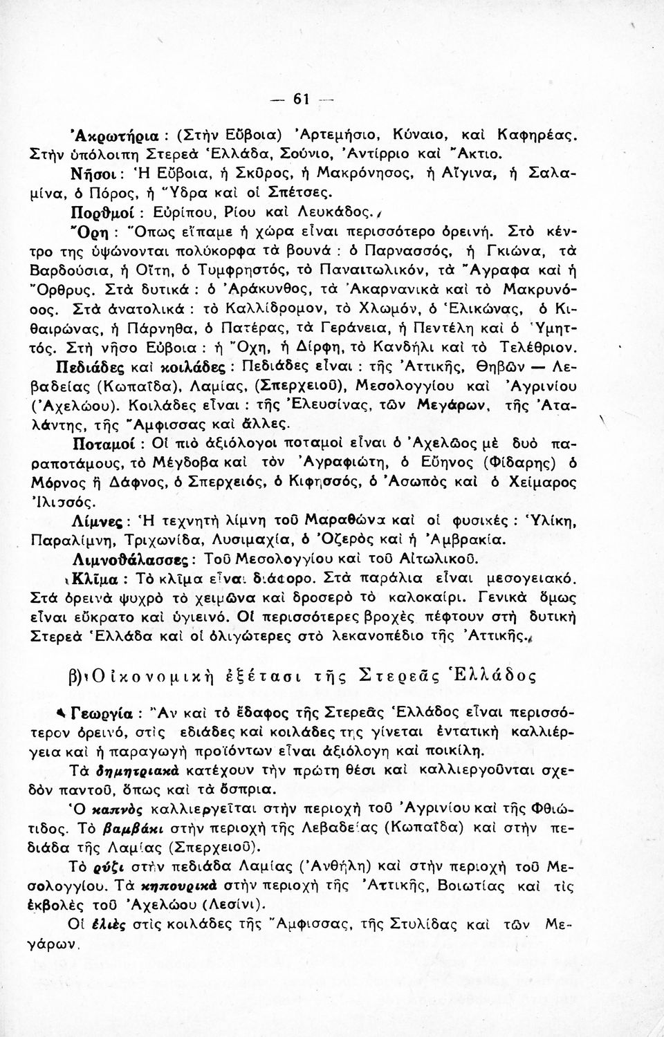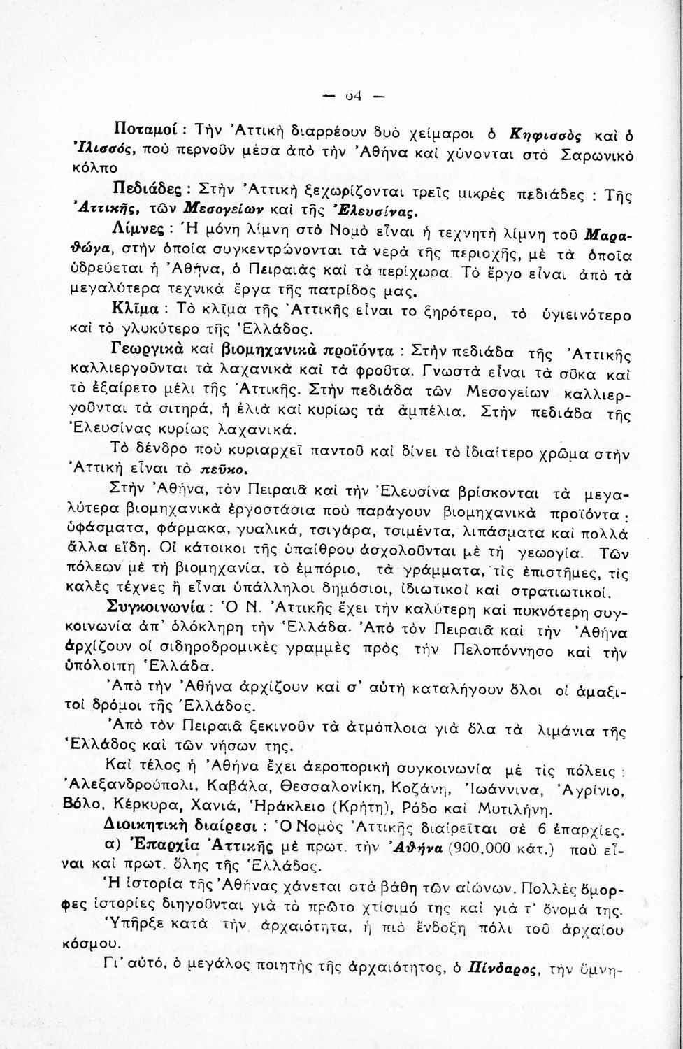 Σχολικό εγχειρίδιο Γεωγραφίας για τη Γ΄, Δ΄ Δημοτικού. Μελετά την Ελλάδα ανά γεωγραφικό νομό με πληροφορίες από το χάρτη της περιοχής και στοιχεία της ιστορίας και της οικονομικής ζωής.
