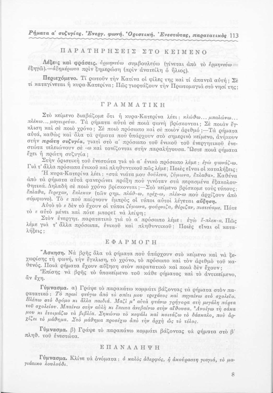 Μαθητικό βοήθημα Γλώσσας και Νέων Ελληνικών για μαθητές των Ε΄ και ΣΤ΄ Δημοτικού και Γυμνασίου που περιλαμβάνει πεζά και ποιήματα, προφορικές και γραπτές ασκήσεις, και βοηθητικούς γραμματικούς πίνακες για τη διδασκαλία των γραμματικών φαινομένων.