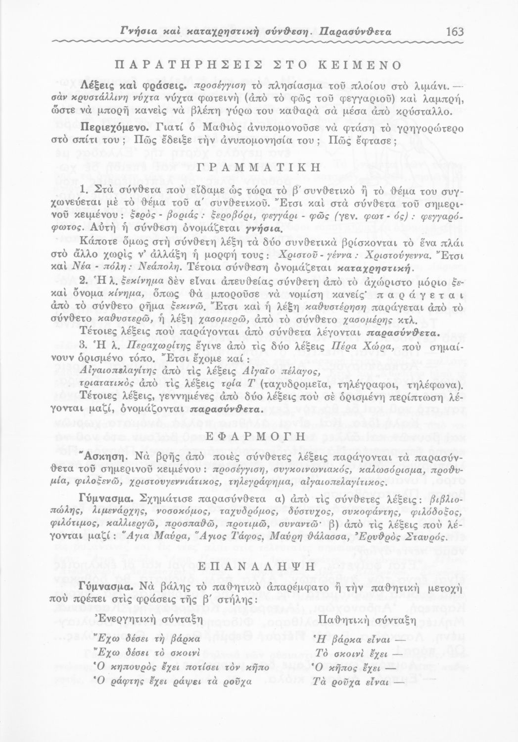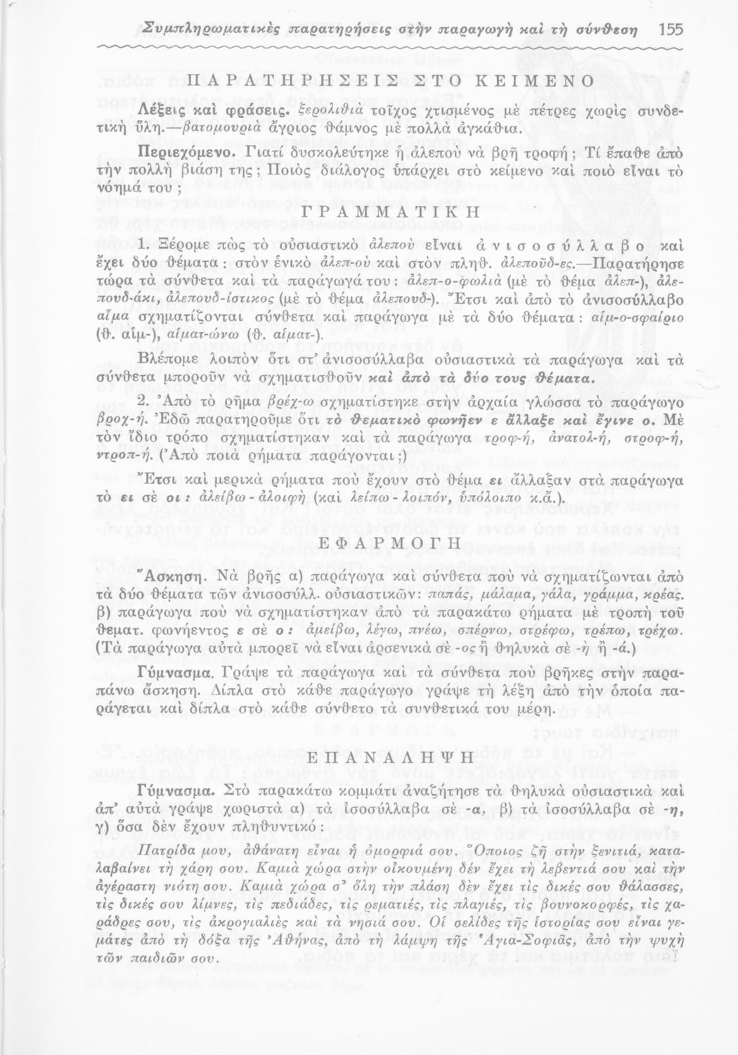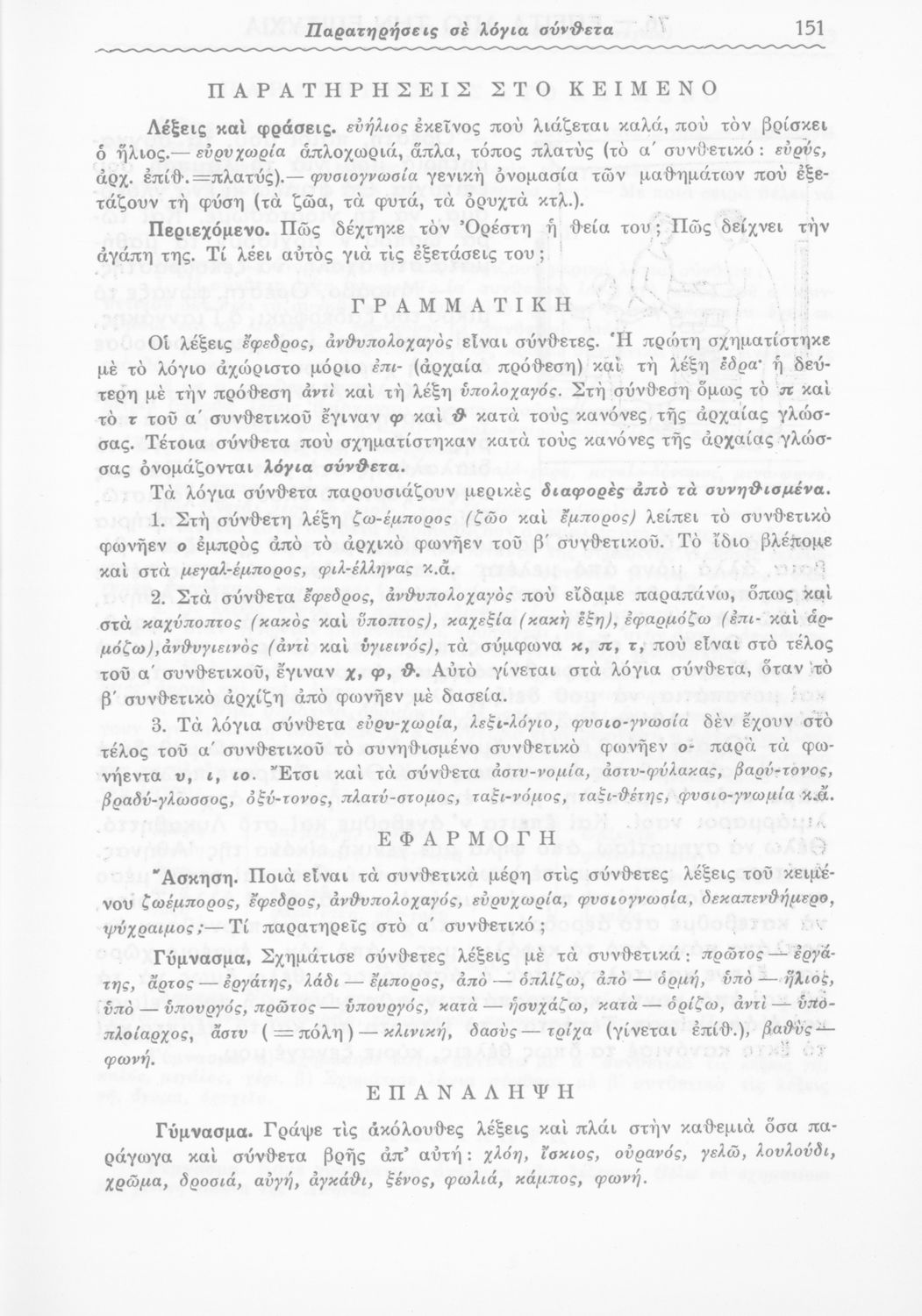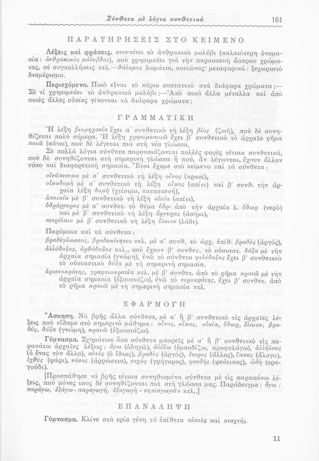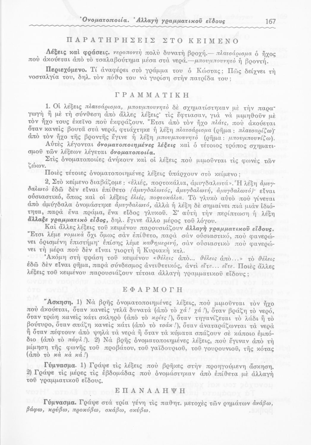 Μαθητικό βοήθημα Γλώσσας και Νέων Ελληνικών για μαθητές των Ε΄ και ΣΤ΄ Δημοτικού και Γυμνασίου που περιλαμβάνει πεζά και ποιήματα, προφορικές και γραπτές ασκήσεις, και βοηθητικούς γραμματικούς πίνακες για τη διδασκαλία των γραμματικών φαινομένων.