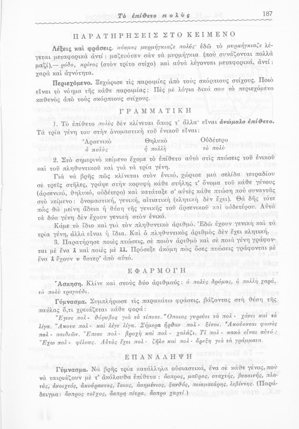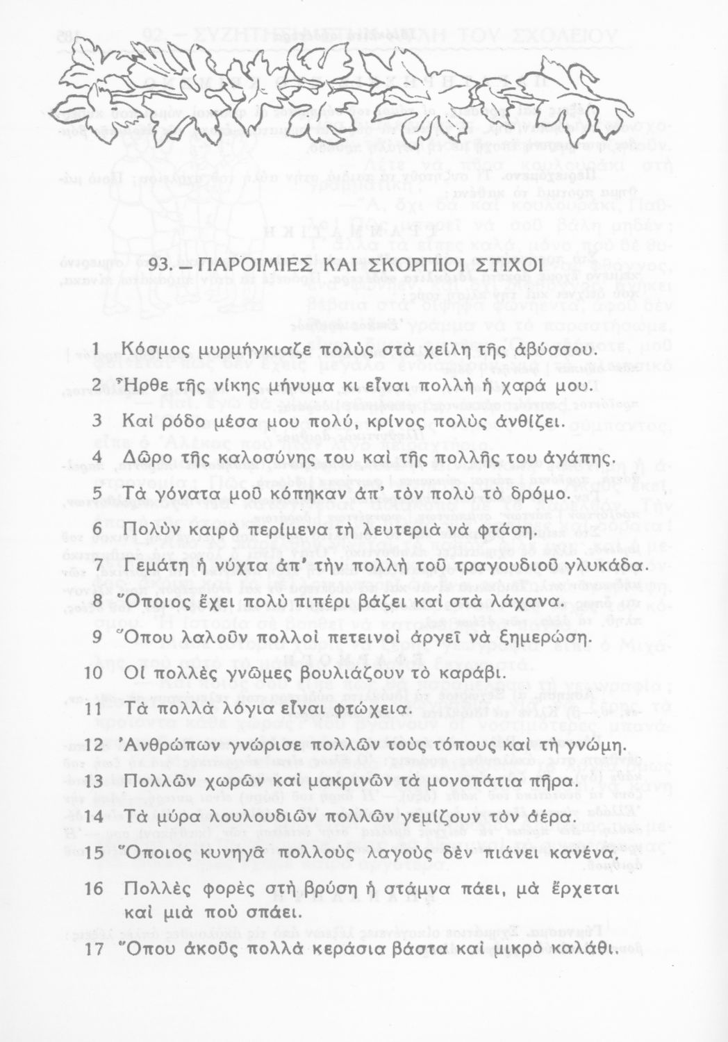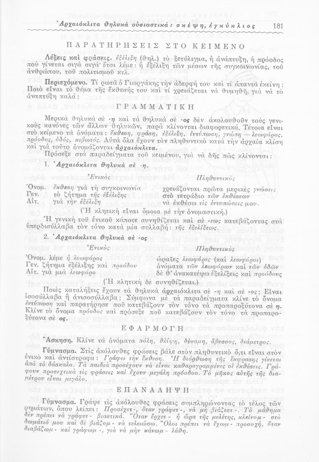 Μαθητικό βοήθημα Γλώσσας και Νέων Ελληνικών για μαθητές των Ε΄ και ΣΤ΄ Δημοτικού και Γυμνασίου που περιλαμβάνει πεζά και ποιήματα, προφορικές και γραπτές ασκήσεις, και βοηθητικούς γραμματικούς πίνακες για τη διδασκαλία των γραμματικών φαινομένων.