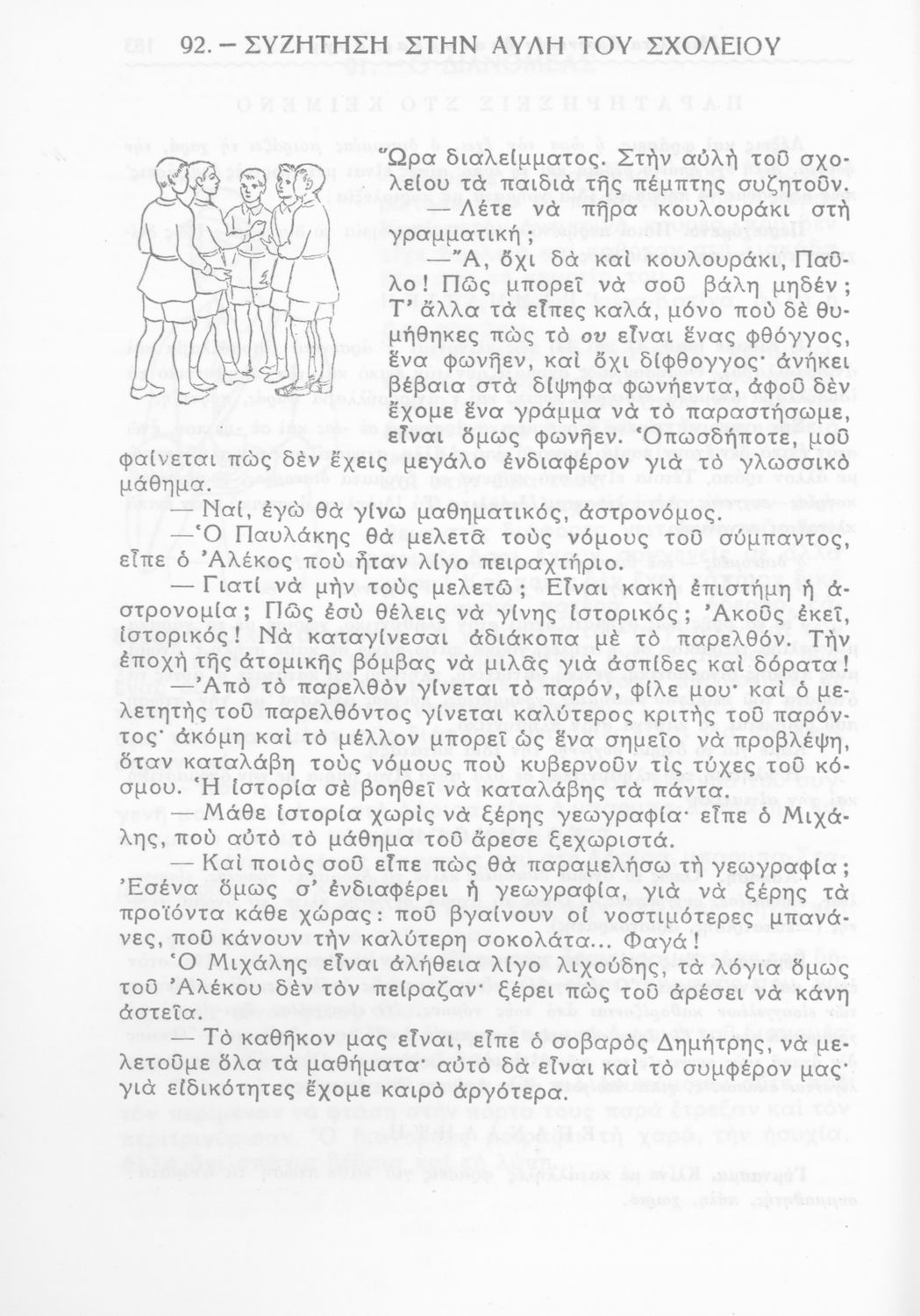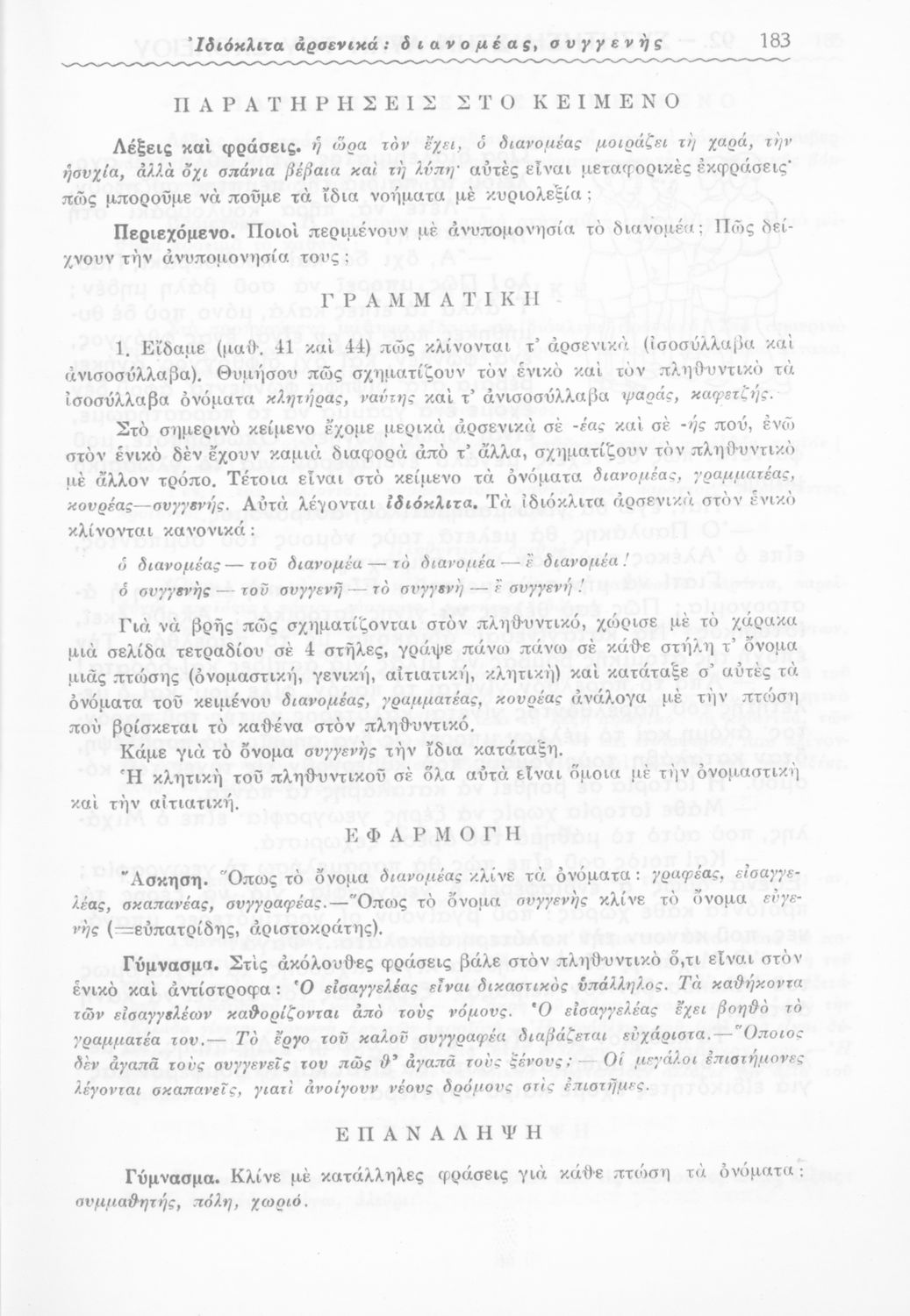 Βαθμίδα εκπαίδευσης: Πρωτοβάθμια, Δευτεροβάθμια Τάξη: Ε' Δημοτικού / ΣΤ' Δημοτικού / Γυμνάσιο Μάθημα: Νέα Ελληνικά Γλώσσα: Δημοτική Παρουσίαση περιεχομένου: Μαθητικό βοήθημα Γλώσσας και Νέων Ελληνικών για μαθητές των Ε΄ και ΣΤ΄ Δημοτικού και Γυμνασίου που περιλαμβάνει πεζά και ποιήματα, προφορικές και γραπτές ασκήσεις, και βοηθητικούς γραμματικούς πίνακες για τη διδασκαλία των γραμματικών φαινομένων. |