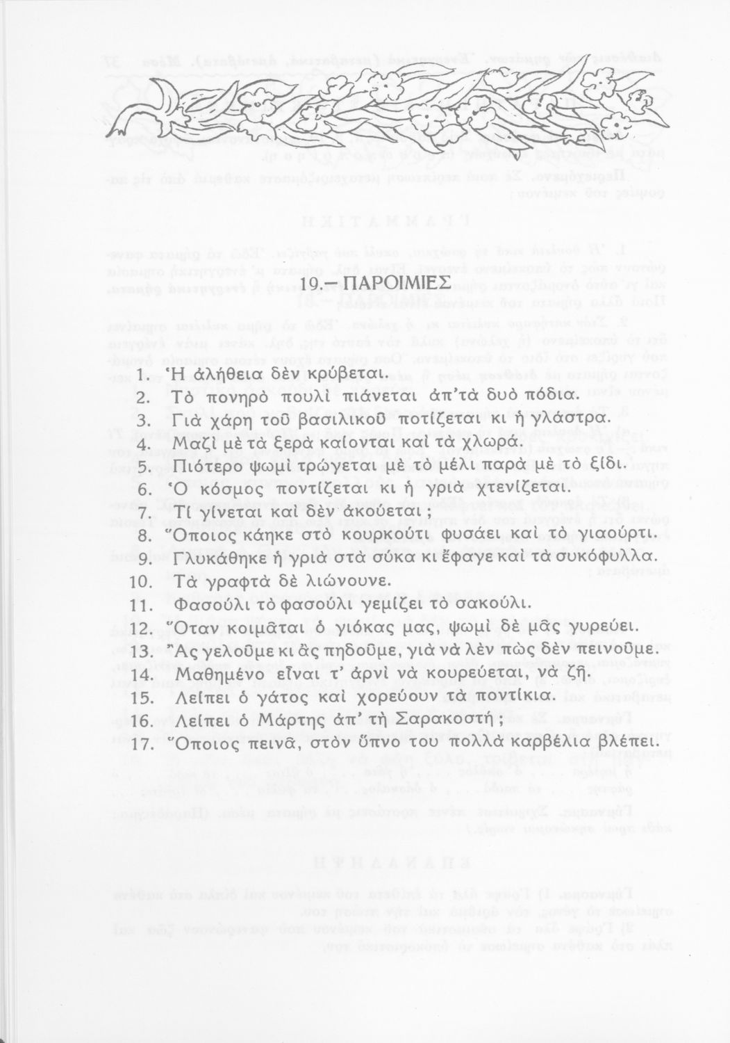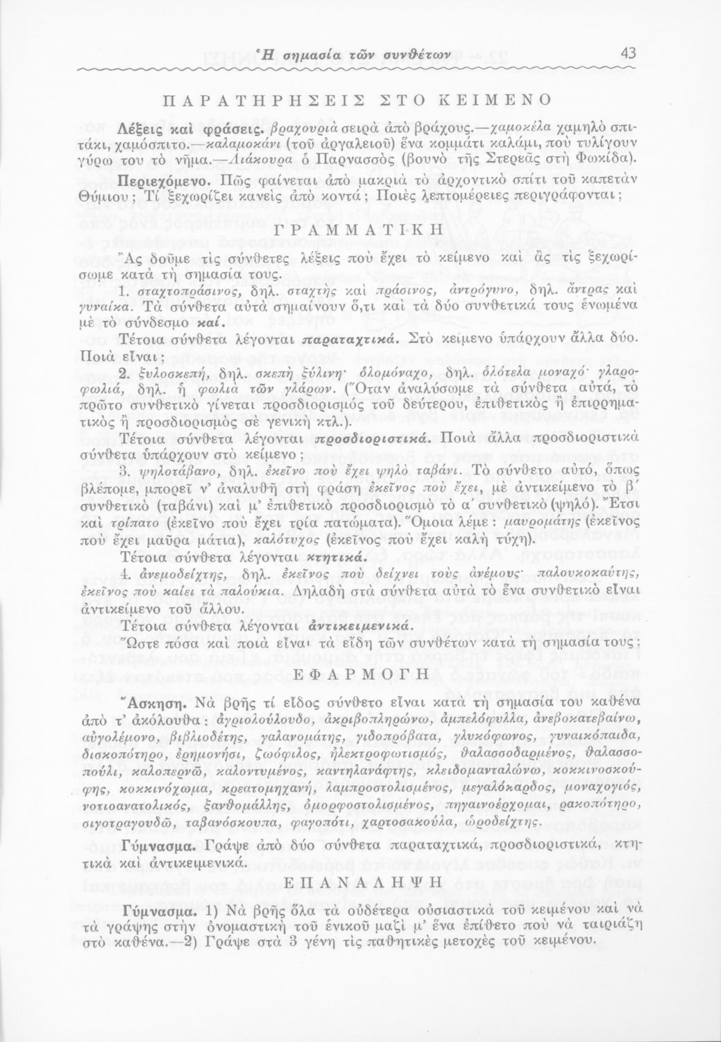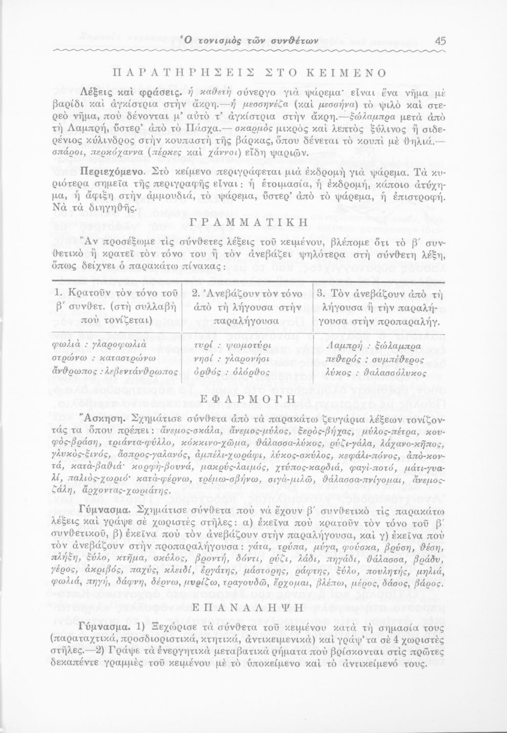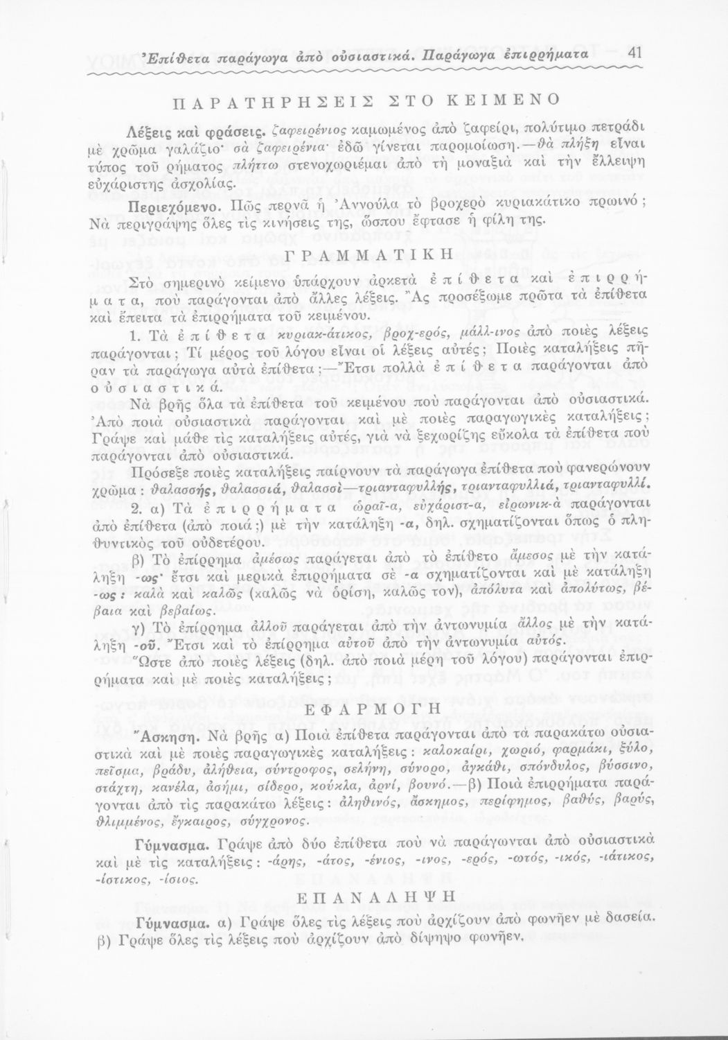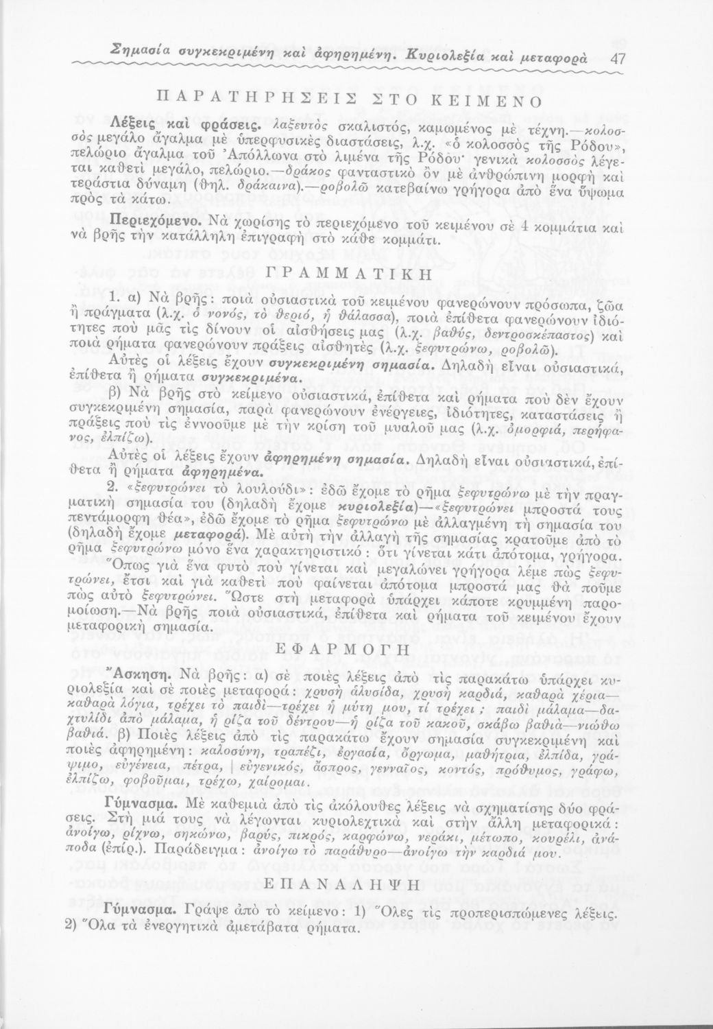 Μαθητικό βοήθημα Γλώσσας και Νέων Ελληνικών για μαθητές των Ε΄ και ΣΤ΄ Δημοτικού και Γυμνασίου που περιλαμβάνει πεζά και ποιήματα, προφορικές και γραπτές ασκήσεις, και βοηθητικούς γραμματικούς πίνακες για τη διδασκαλία των γραμματικών φαινομένων.