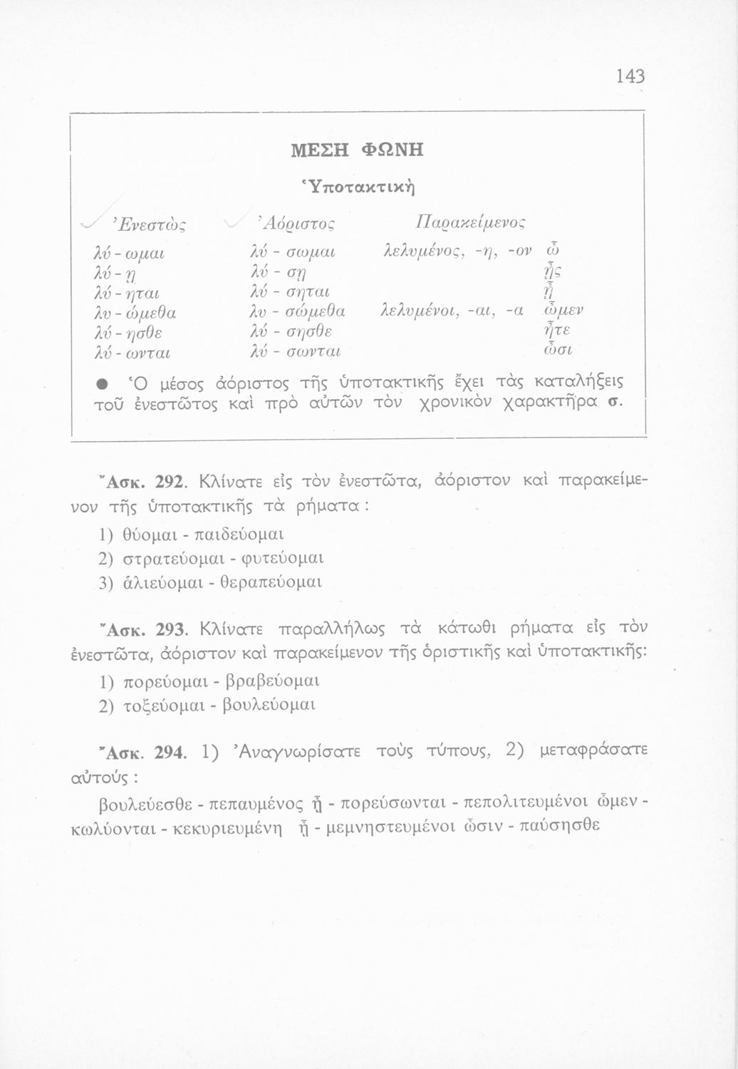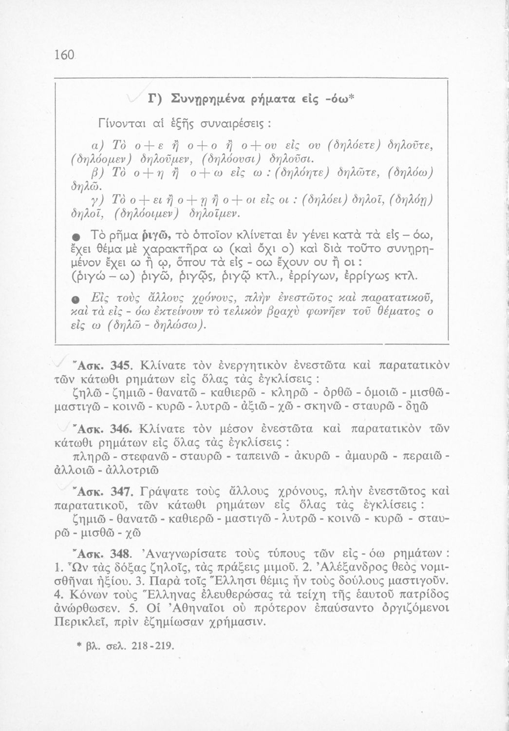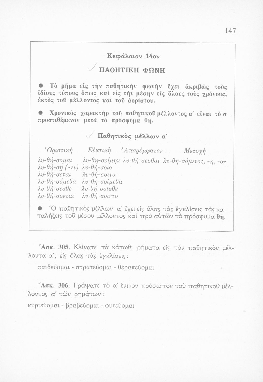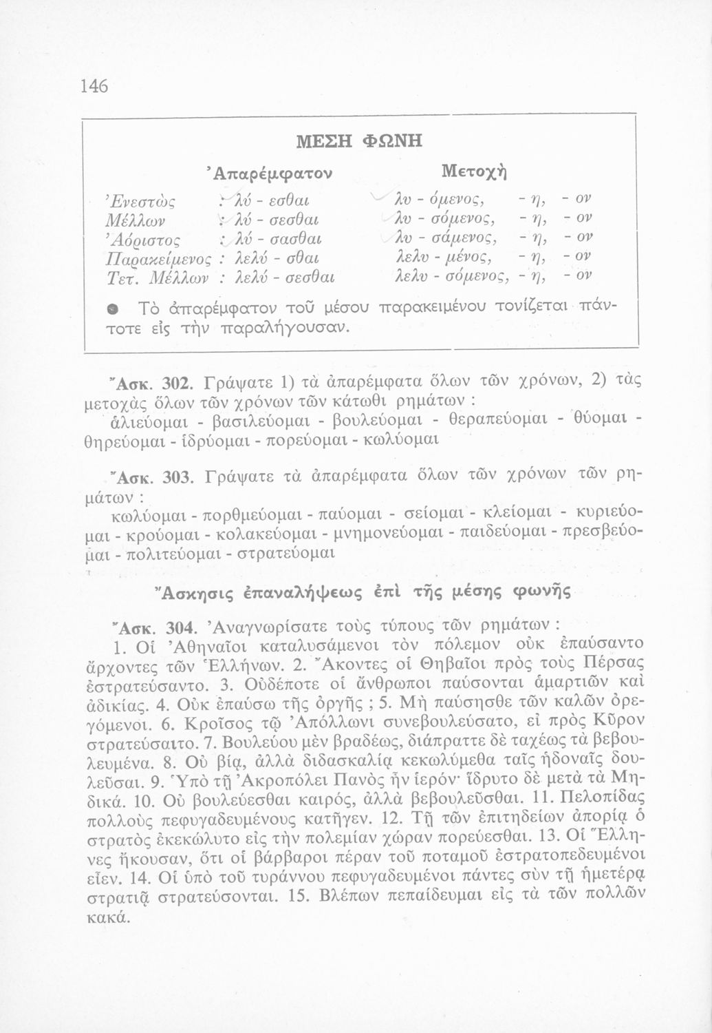 Σχολικό εγχειρίδιο Αρχαίων Ελληνικών Γυμνασίου που περιλαμβάνει τη γραμματική της αρχαίας ελληνικής και είναι χωρισμένο σε φθογγολογικό και τυπολογικό μέρος Περιέχει και κατάλογο ανωμάλων ρημάτων, ασκήσεις και