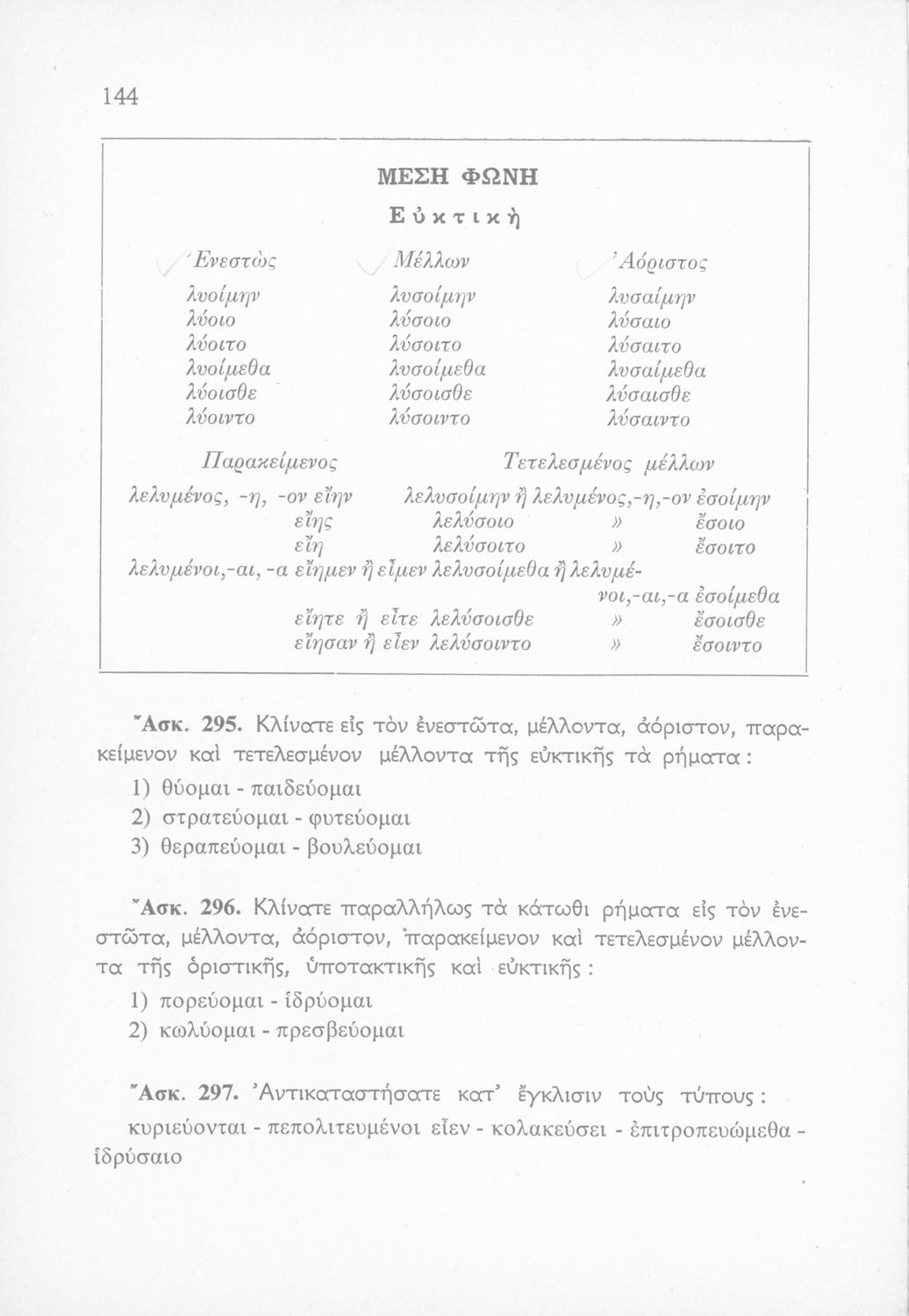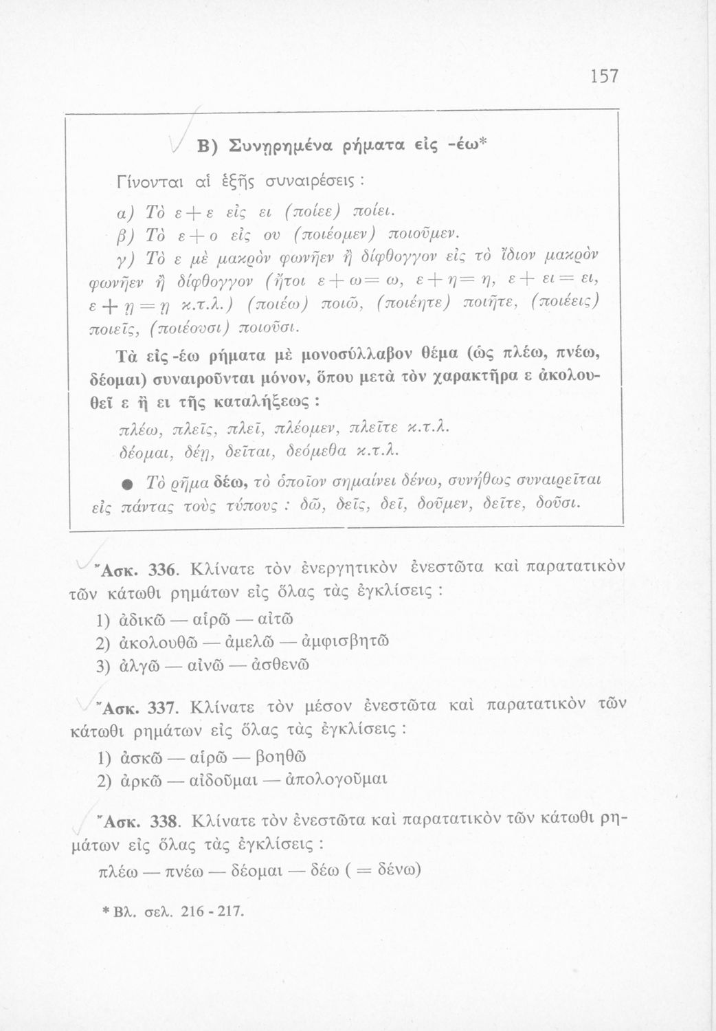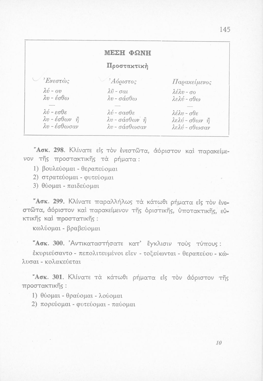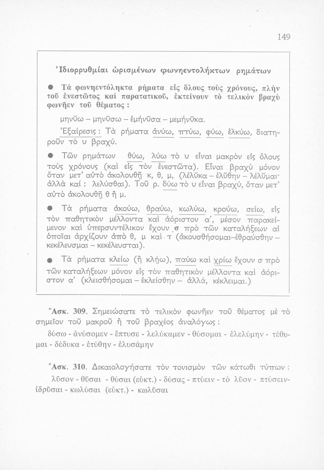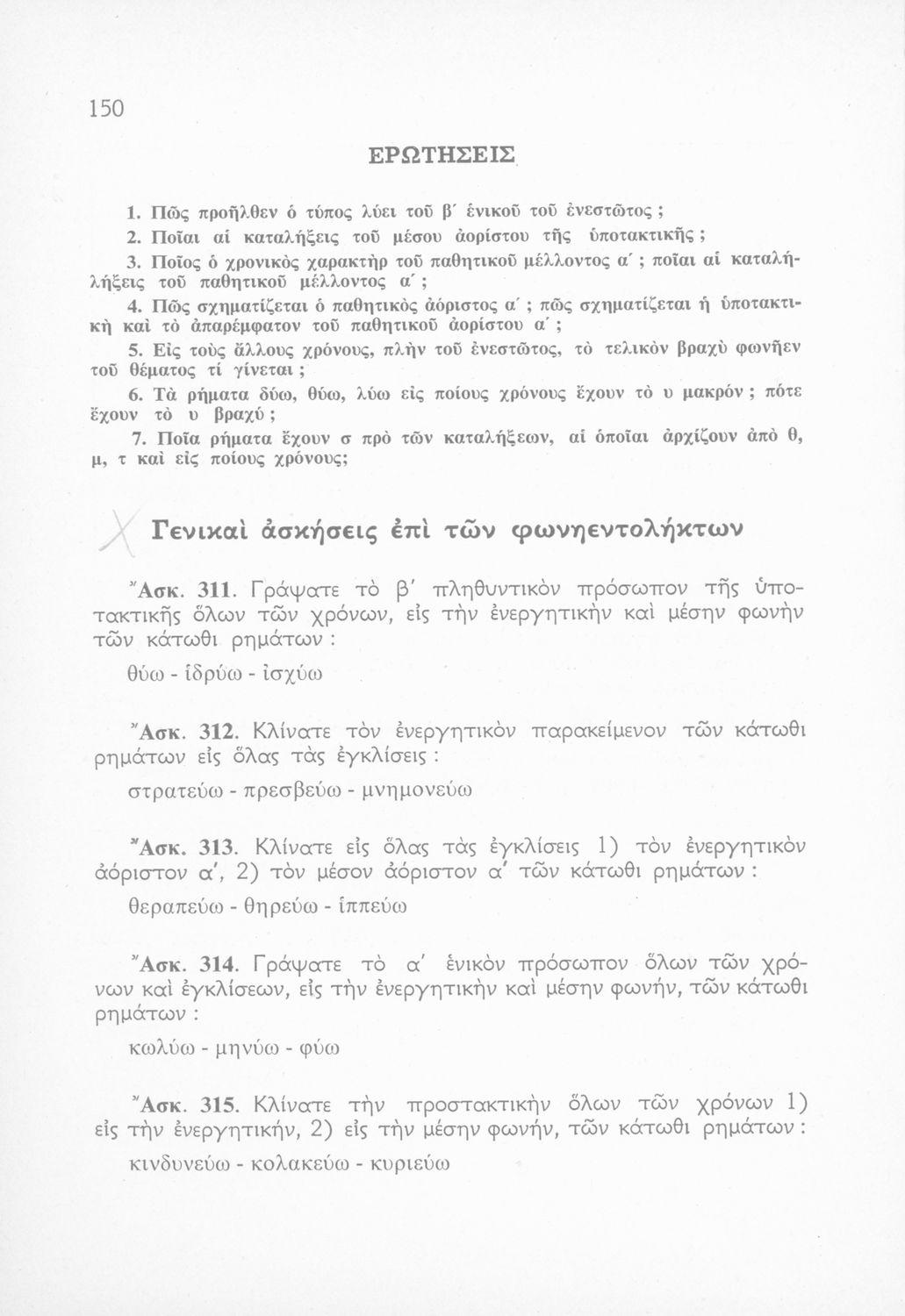 Σχολικό εγχειρίδιο Αρχαίων Ελληνικών Γυμνασίου που περιλαμβάνει τη γραμματική της αρχαίας ελληνικής και είναι χωρισμένο σε φθογγολογικό και τυπολογικό μέρος Περιέχει και κατάλογο ανωμάλων ρημάτων, ασκήσεις και