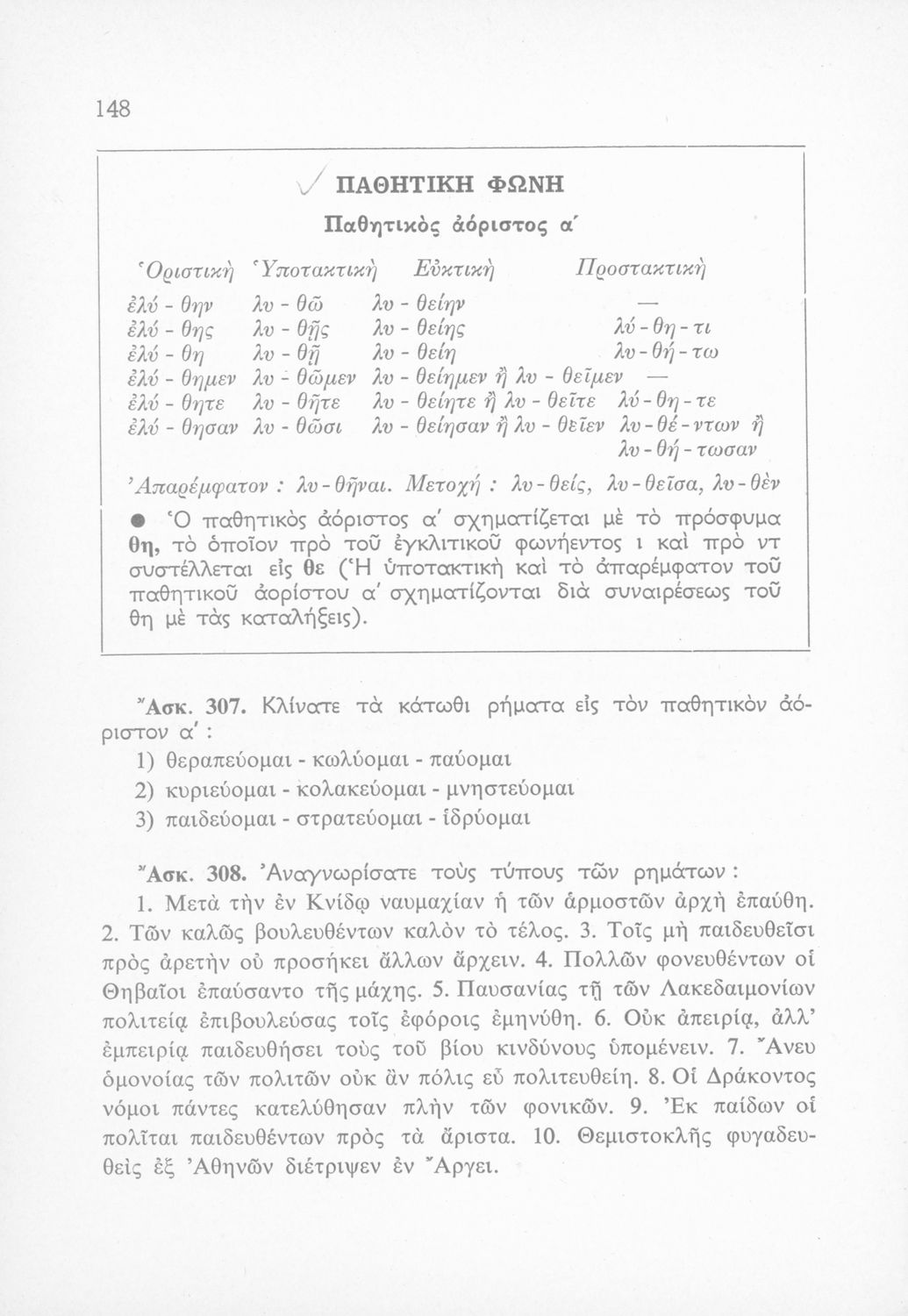 Μαθήματα και ασκήσεις αρχαίας ελληνικής γραμματικής (Βοήθημα προς χρήσιν των μαθητών Γυμνασίου)