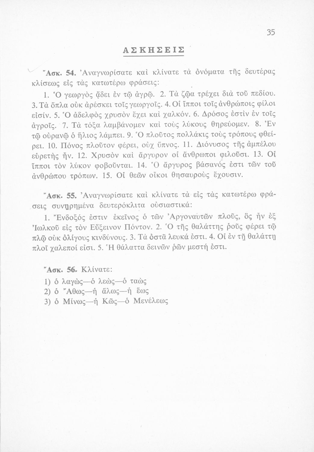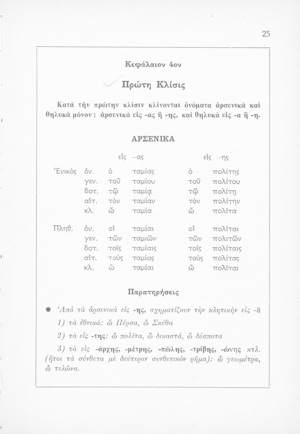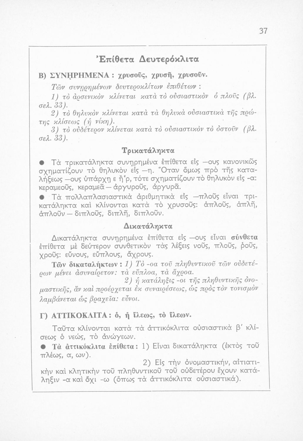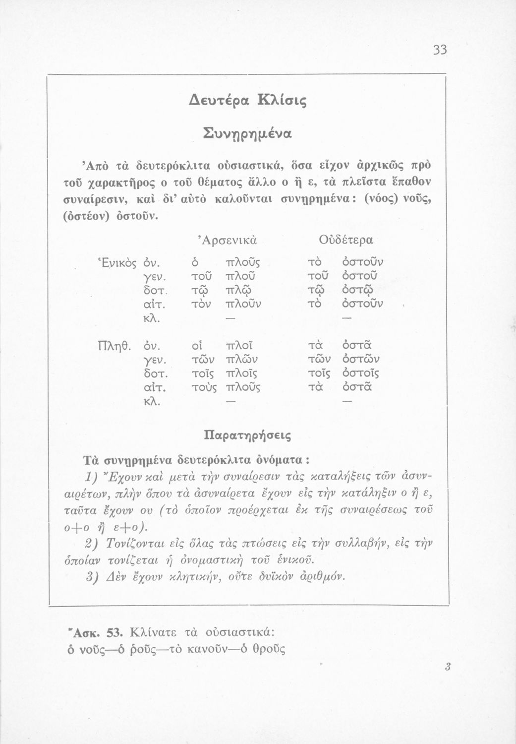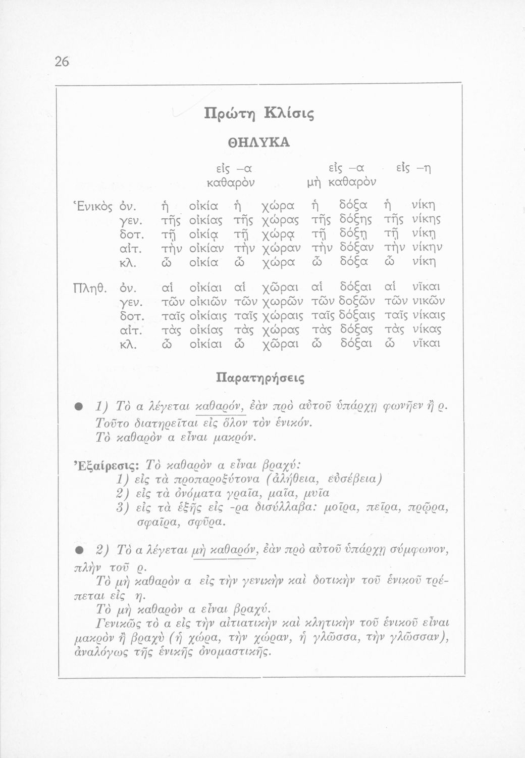 Σχολικό εγχειρίδιο Αρχαίων Ελληνικών Γυμνασίου που περιλαμβάνει τη γραμματική της αρχαίας ελληνικής και είναι χωρισμένο σε φθογγολογικό και τυπολογικό μέρος Περιέχει και κατάλογο ανωμάλων ρημάτων, ασκήσεις και