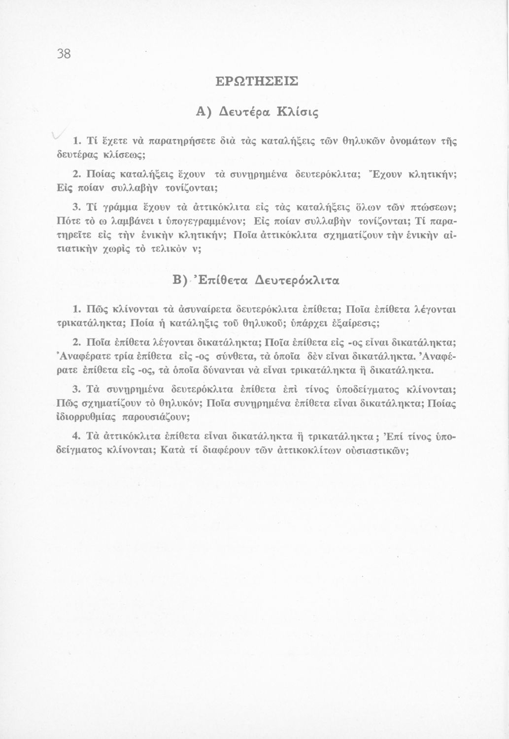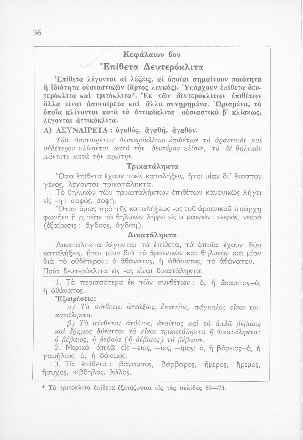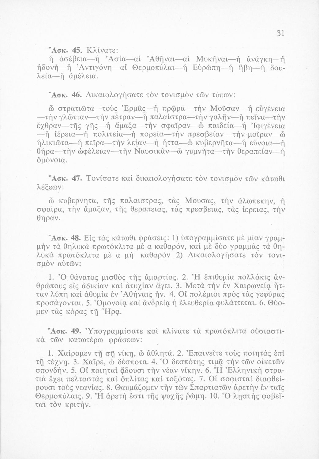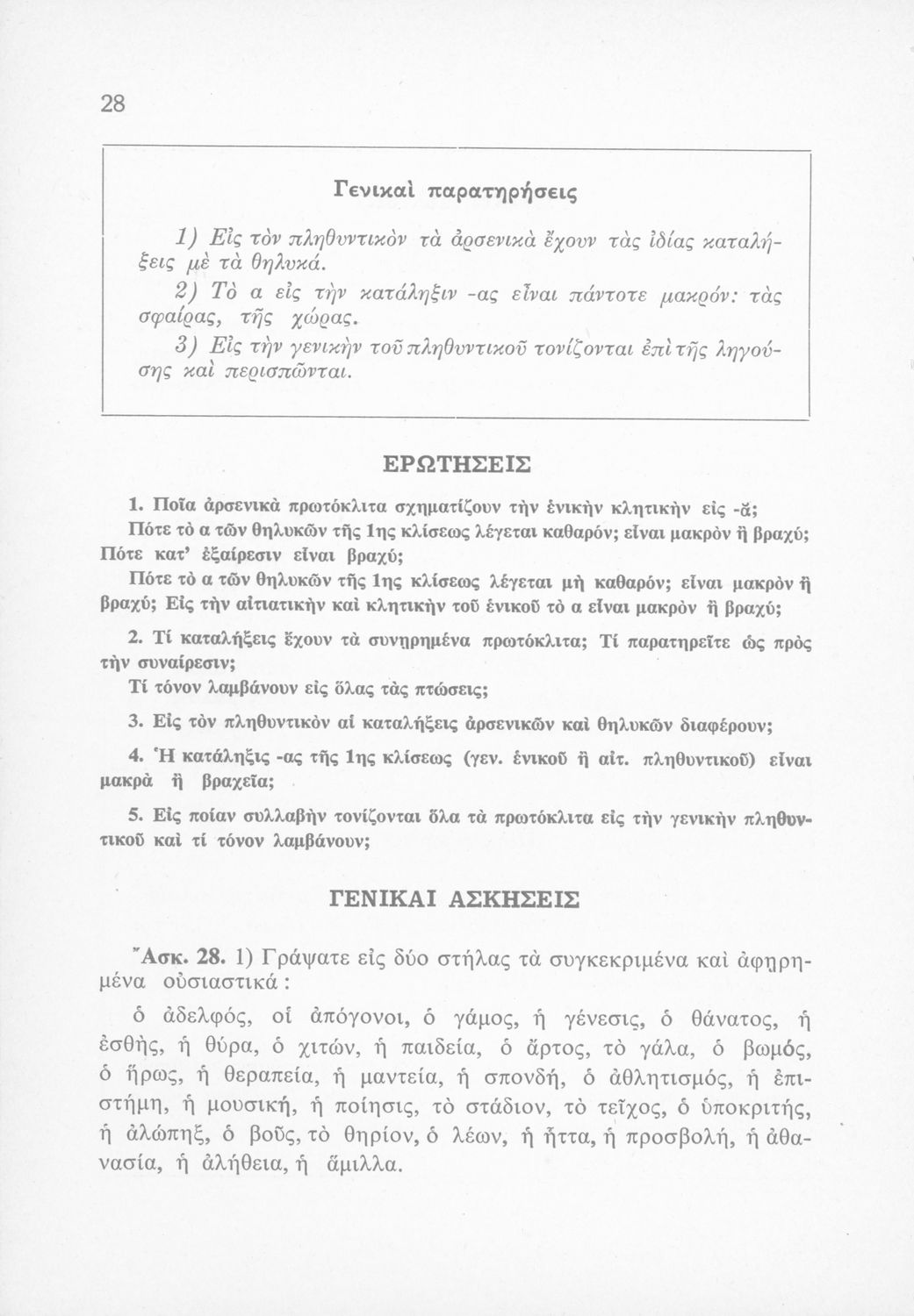 Σχολικό εγχειρίδιο Αρχαίων Ελληνικών Γυμνασίου που περιλαμβάνει τη γραμματική της αρχαίας ελληνικής και είναι χωρισμένο σε φθογγολογικό και τυπολογικό μέρος Περιέχει και κατάλογο ανωμάλων ρημάτων, ασκήσεις και