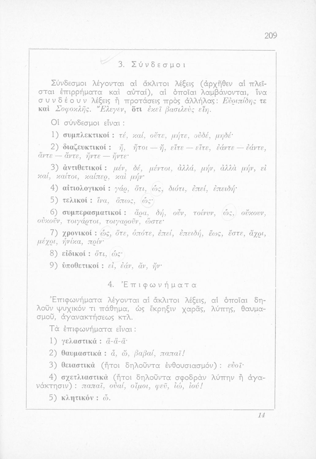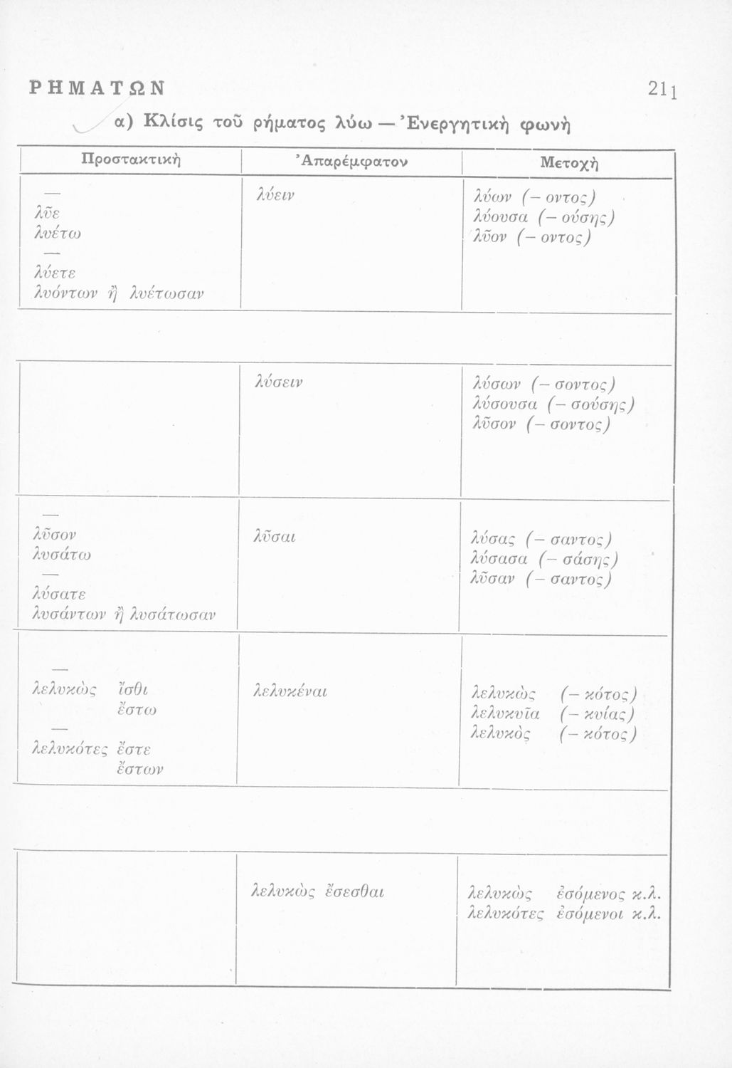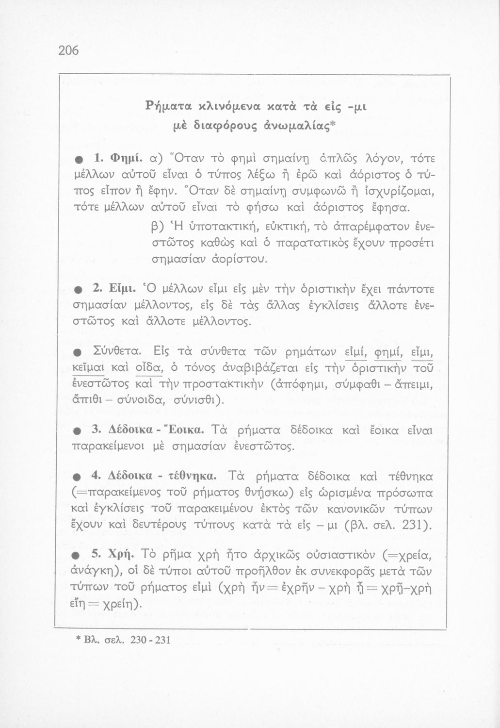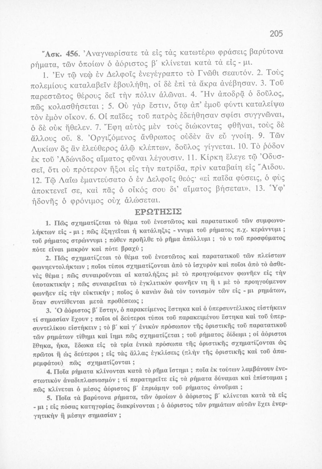 Σχολικό εγχειρίδιο Αρχαίων Ελληνικών Γυμνασίου που περιλαμβάνει τη γραμματική της αρχαίας ελληνικής και είναι χωρισμένο σε φθογγολογικό και τυπολογικό μέρος Περιέχει και κατάλογο ανωμάλων ρημάτων, ασκήσεις και