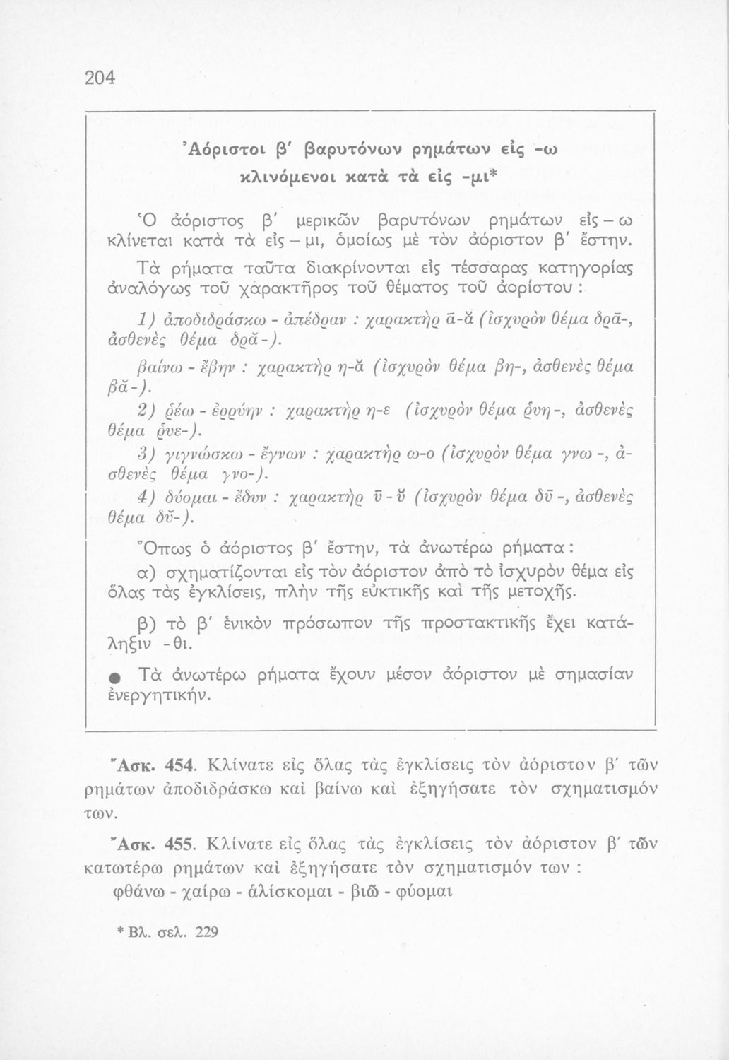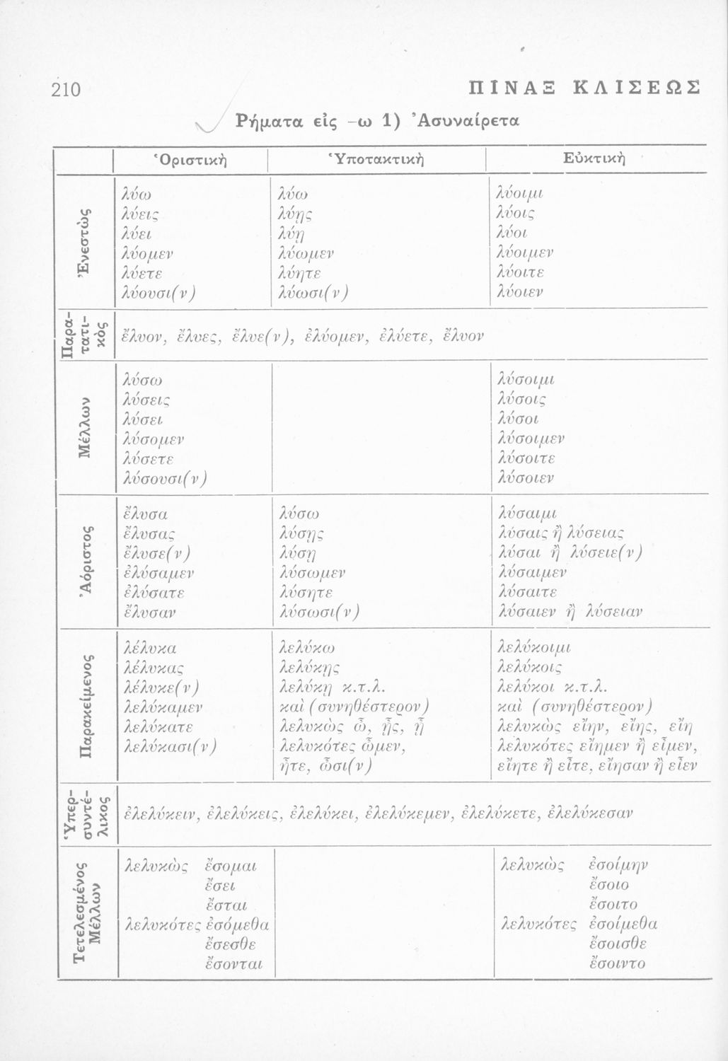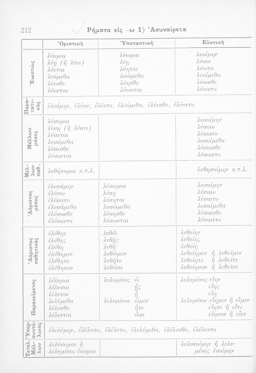 Σχολικό εγχειρίδιο Αρχαίων Ελληνικών Γυμνασίου που περιλαμβάνει τη γραμματική της αρχαίας ελληνικής και είναι χωρισμένο σε φθογγολογικό και τυπολογικό μέρος Περιέχει και κατάλογο ανωμάλων ρημάτων, ασκήσεις και
