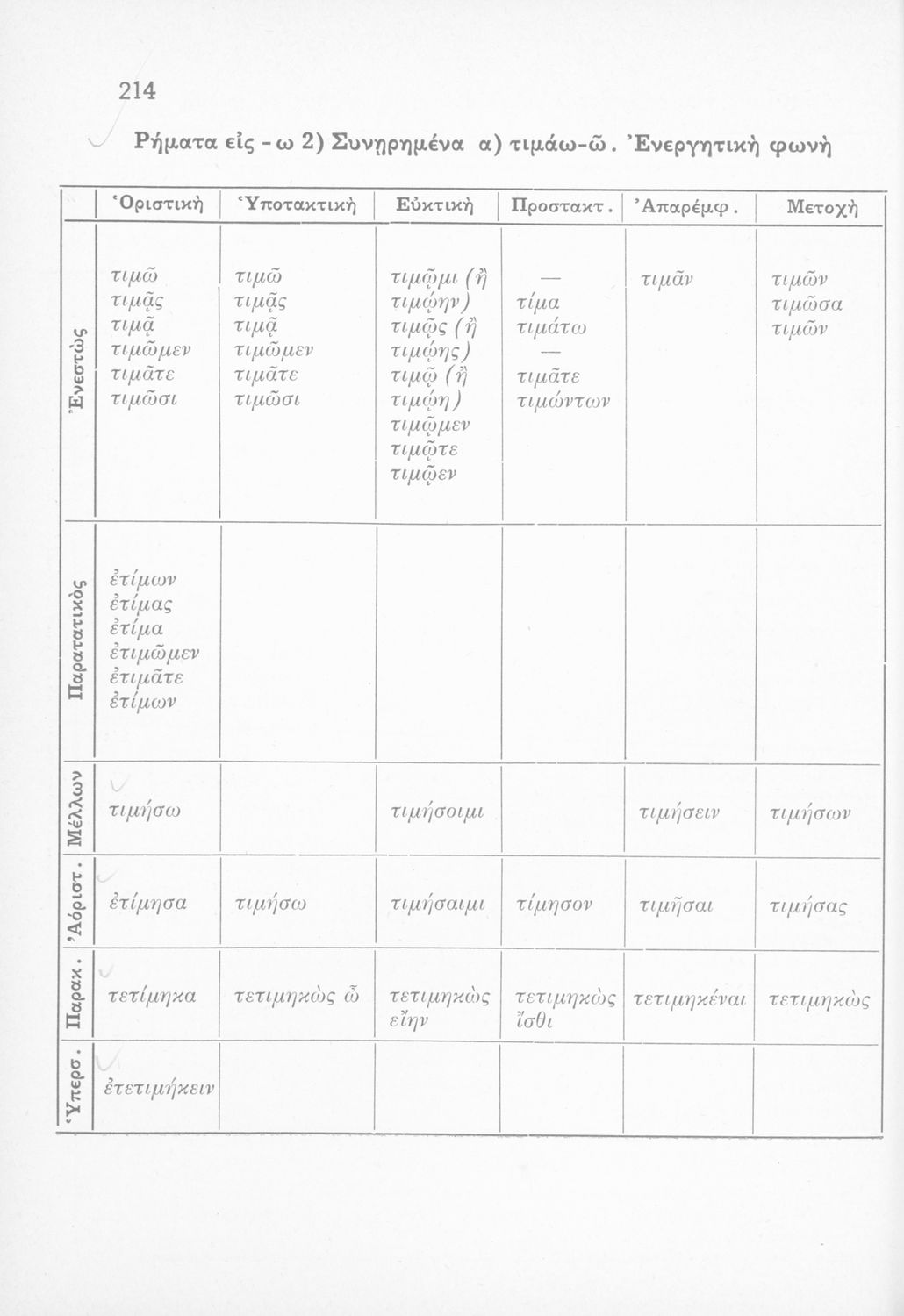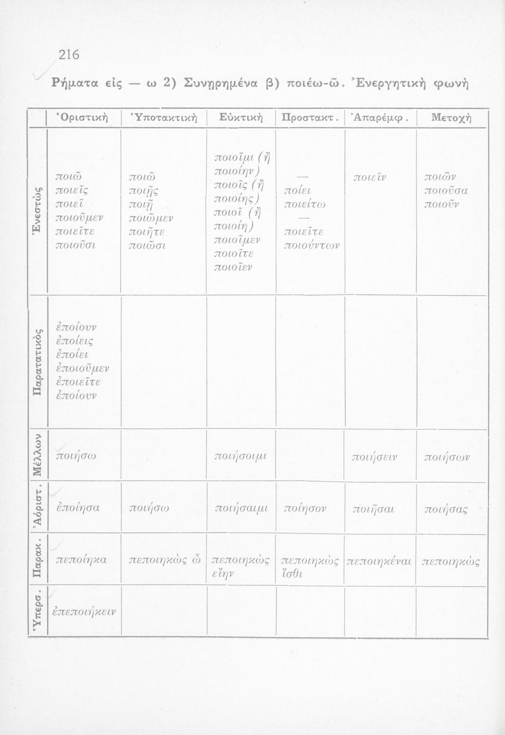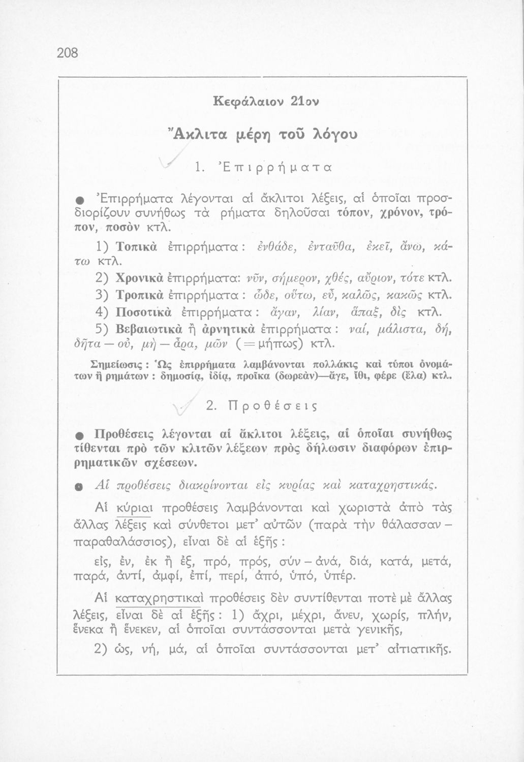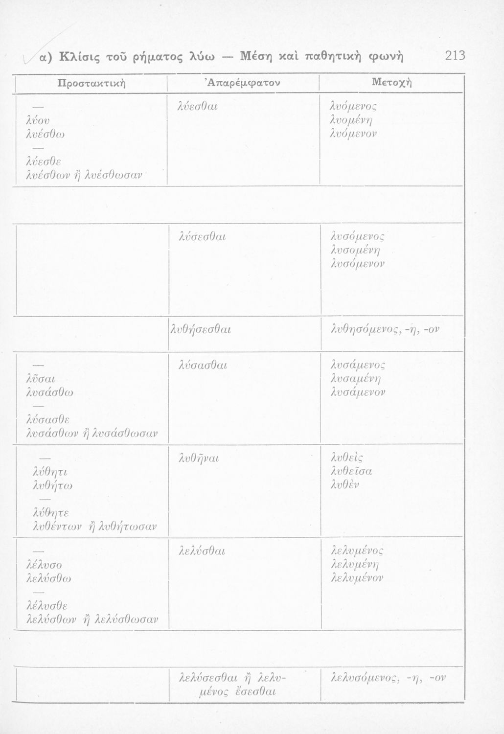 Σχολικό εγχειρίδιο Αρχαίων Ελληνικών Γυμνασίου που περιλαμβάνει τη γραμματική της αρχαίας ελληνικής και είναι χωρισμένο σε φθογγολογικό και τυπολογικό μέρος Περιέχει και κατάλογο ανωμάλων ρημάτων, ασκήσεις και