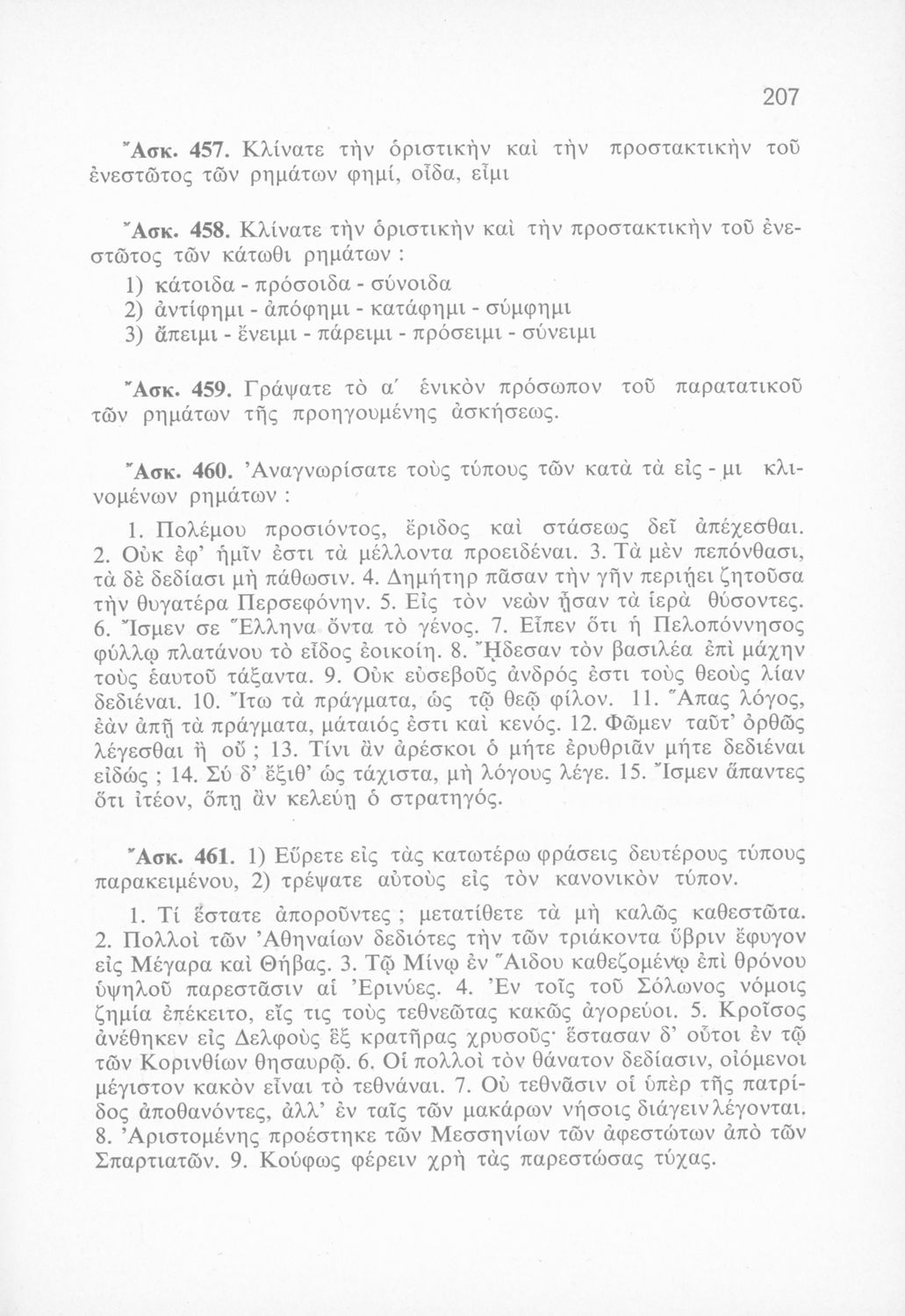 Μαθήματα και ασκήσεις αρχαίας ελληνικής γραμματικής (Βοήθημα προς χρήσιν των μαθητών Γυμνασίου)
