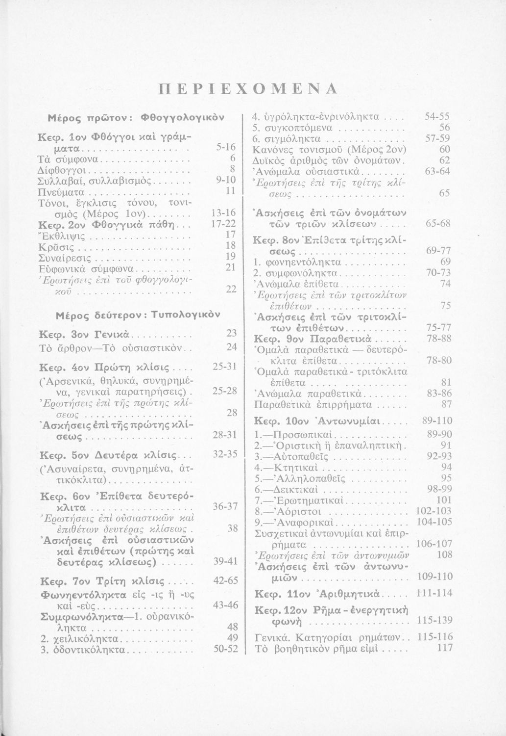 Μαθητικό βοήθημα Αρχαίων Ελληνικών Γυμνασίου που περιλαμβάνει τους κανόνες γραμματικής της αρχαίας ελληνικής και είναι χωρισμένο σε φθογγολογικό και τυπολογικό μέρος.