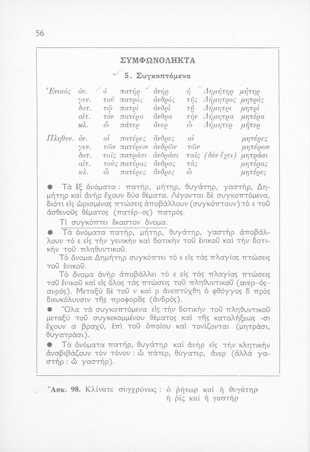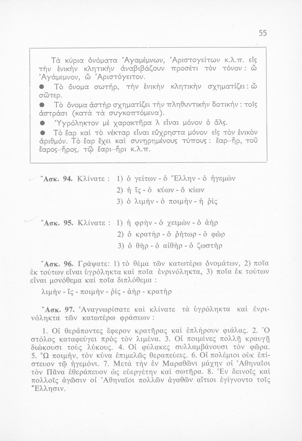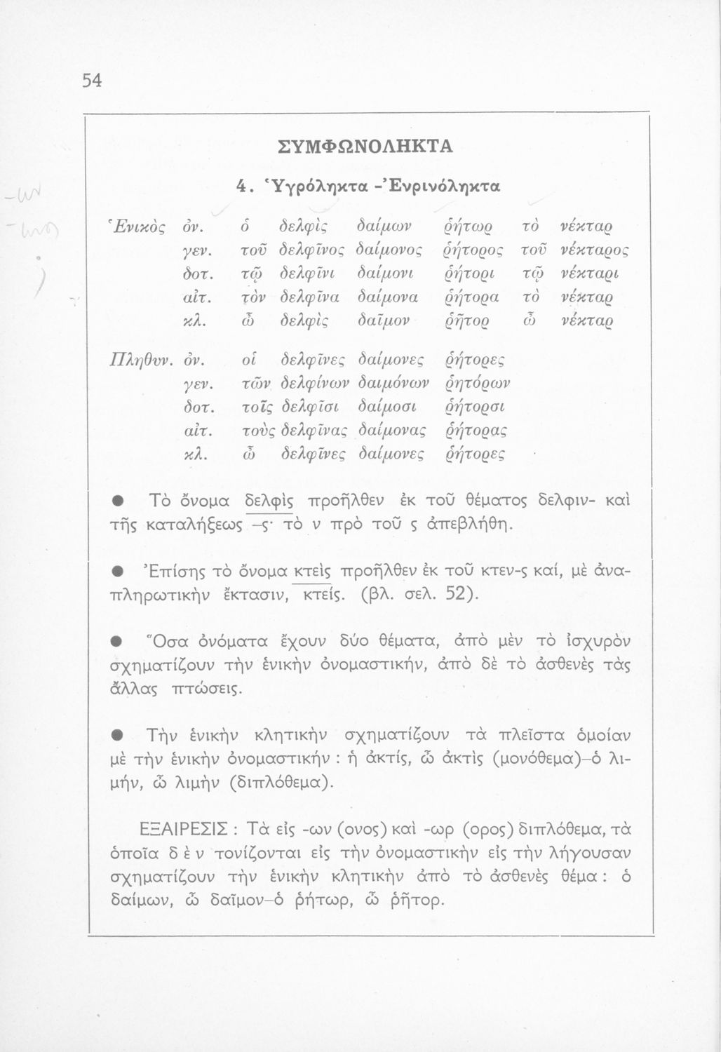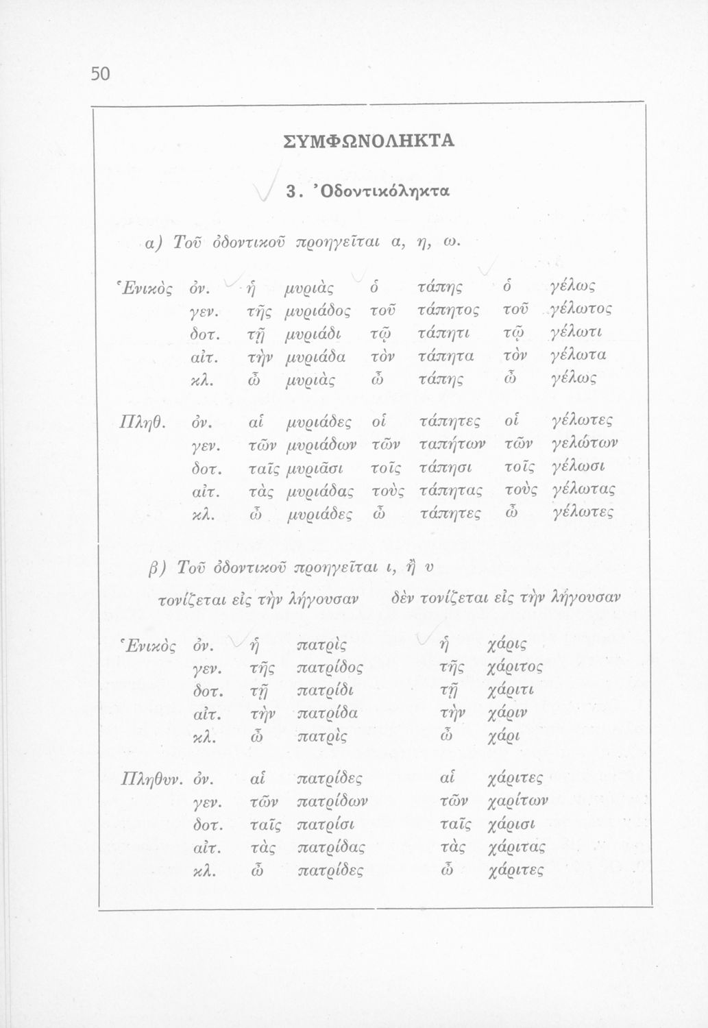 Μαθητικό βοήθημα Αρχαίων Ελληνικών Γυμνασίου που περιλαμβάνει τους κανόνες γραμματικής της αρχαίας ελληνικής και είναι χωρισμένο σε φθογγολογικό και τυπολογικό μέρος.