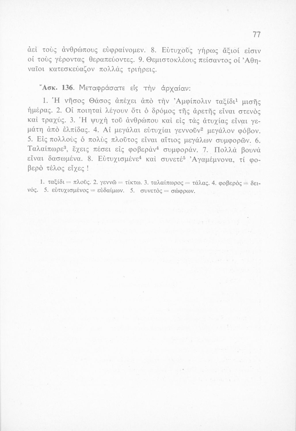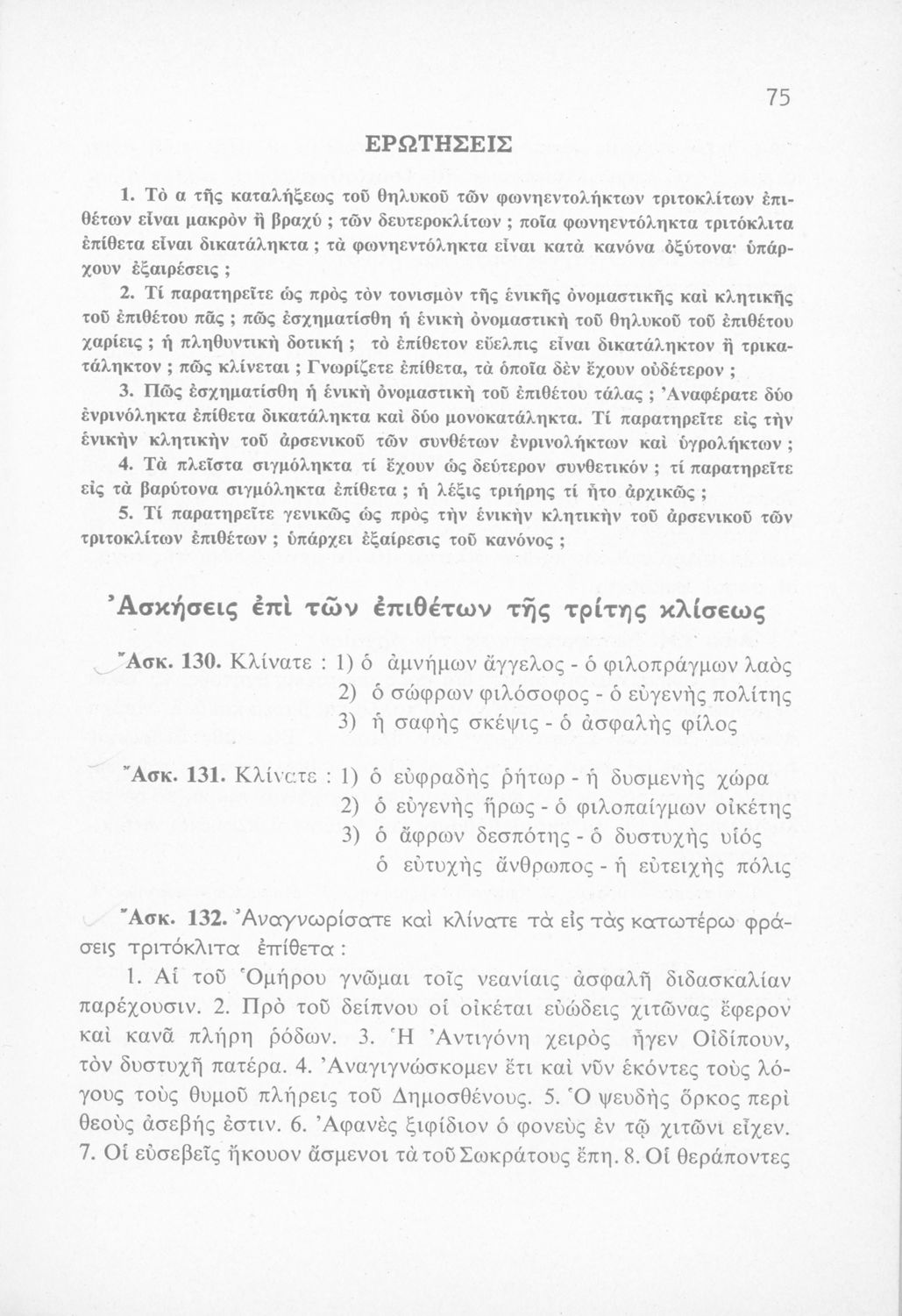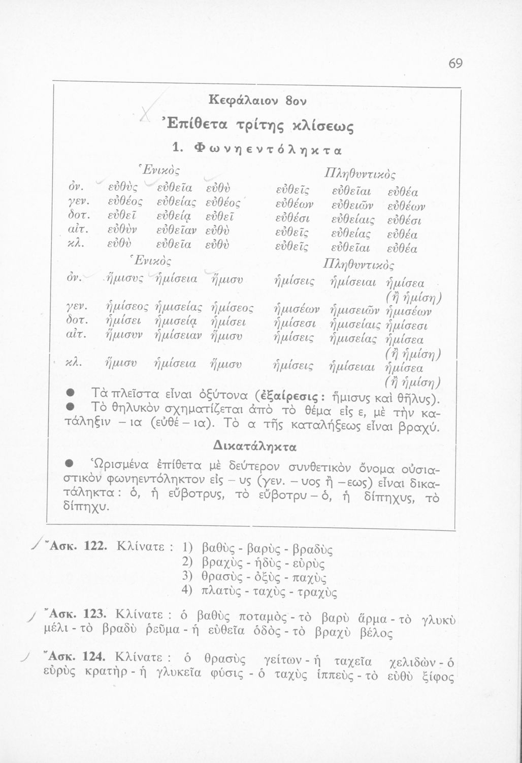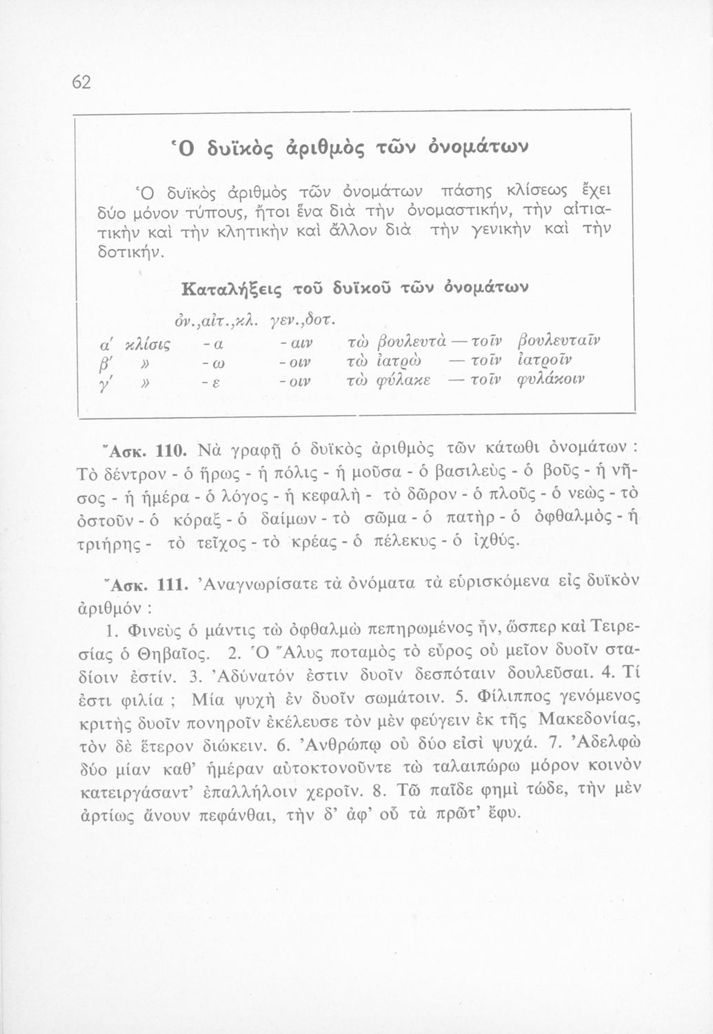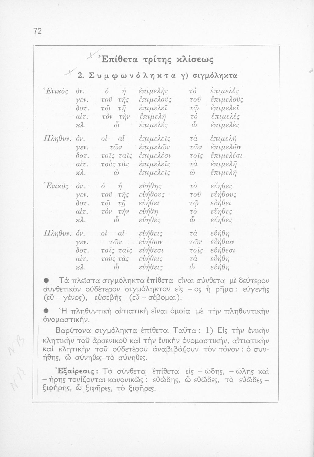 Σχολικό εγχειρίδιο Αρχαίων Ελληνικών Γυμνασίου που περιλαμβάνει τη γραμματική της αρχαίας ελληνικής και είναι χωρισμένο σε φθογγολογικό και τυπολογικό μέρος Περιέχει και κατάλογο ανωμάλων ρημάτων, ασκήσεις και