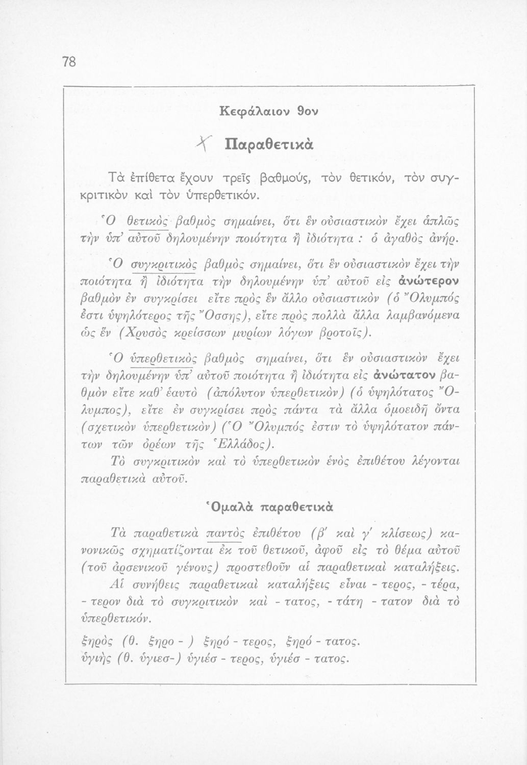 Σχολικό εγχειρίδιο Αρχαίων Ελληνικών για τα Ελληνικά Σχολεία, τα Παρθεναγωγεία και τα Γυμνάσια που περιλαμβάνει τους κανόνες γραμματικής.