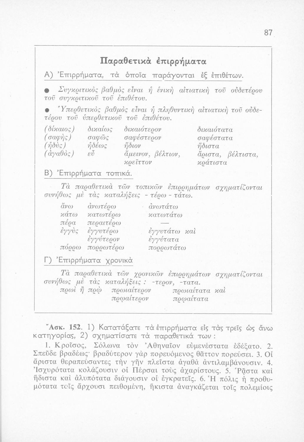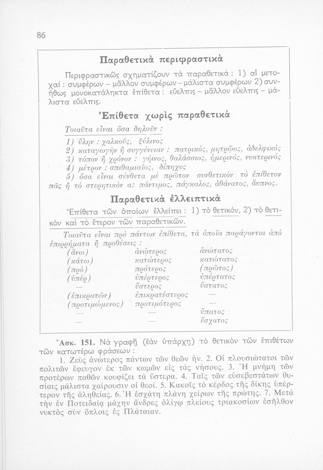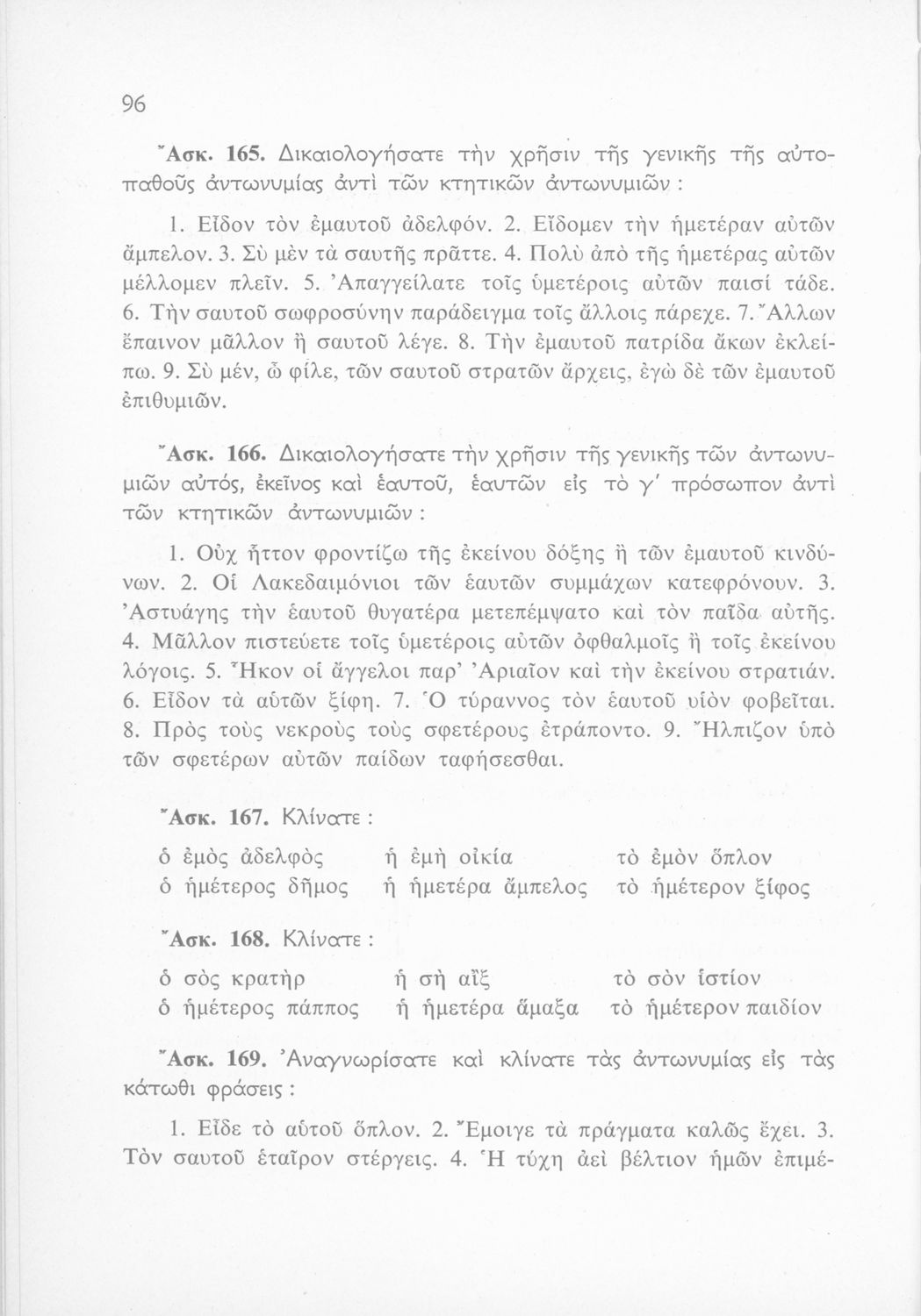 Μαθήματα και ασκήσεις αρχαίας ελληνικής γραμματικής (Βοήθημα προς χρήσιν των μαθητών Γυμνασίου)