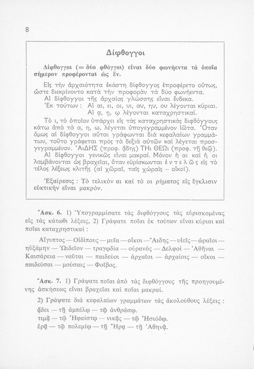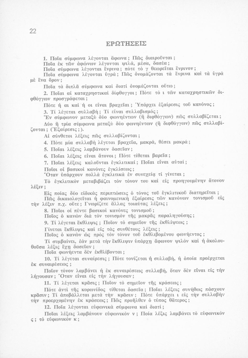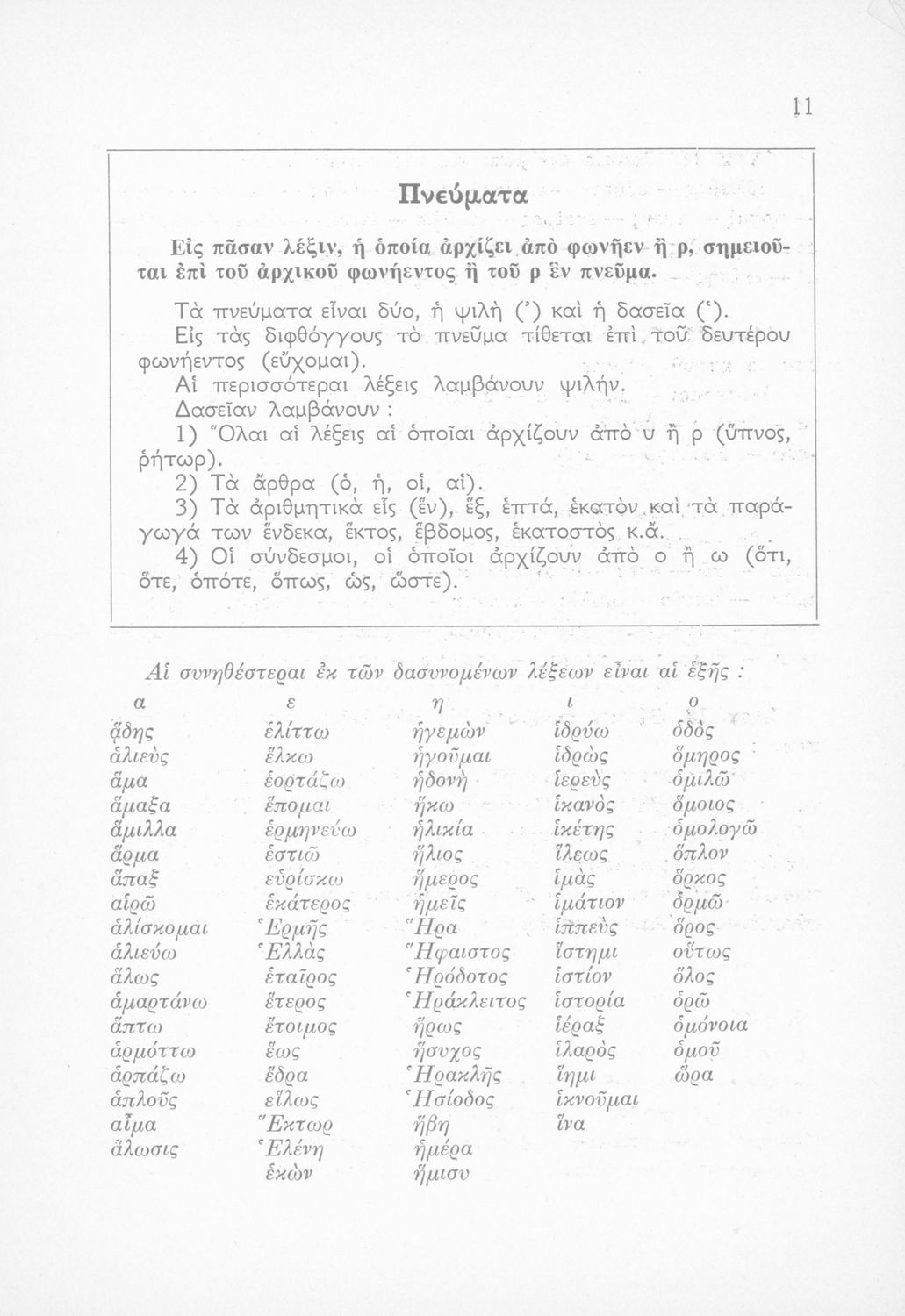 Μαθητικό βοήθημα Αρχαίων Ελληνικών Γυμνασίου που περιλαμβάνει τους κανόνες γραμματικής της αρχαίας ελληνικής και είναι χωρισμένο σε φθογγολογικό και τυπολογικό μέρος.