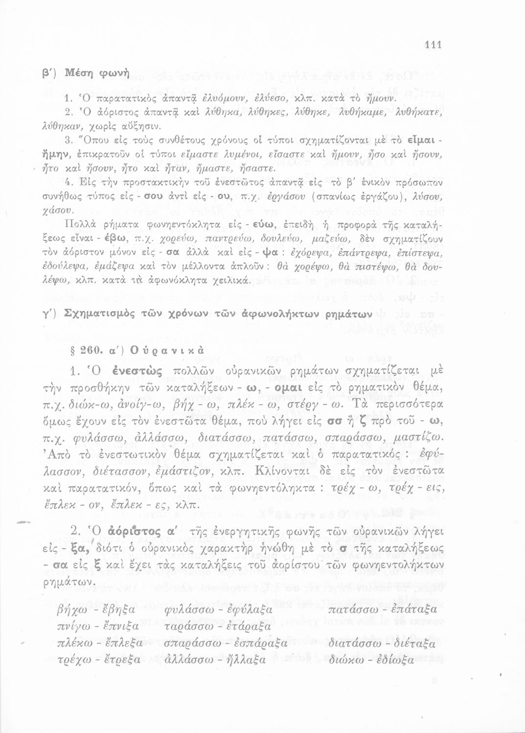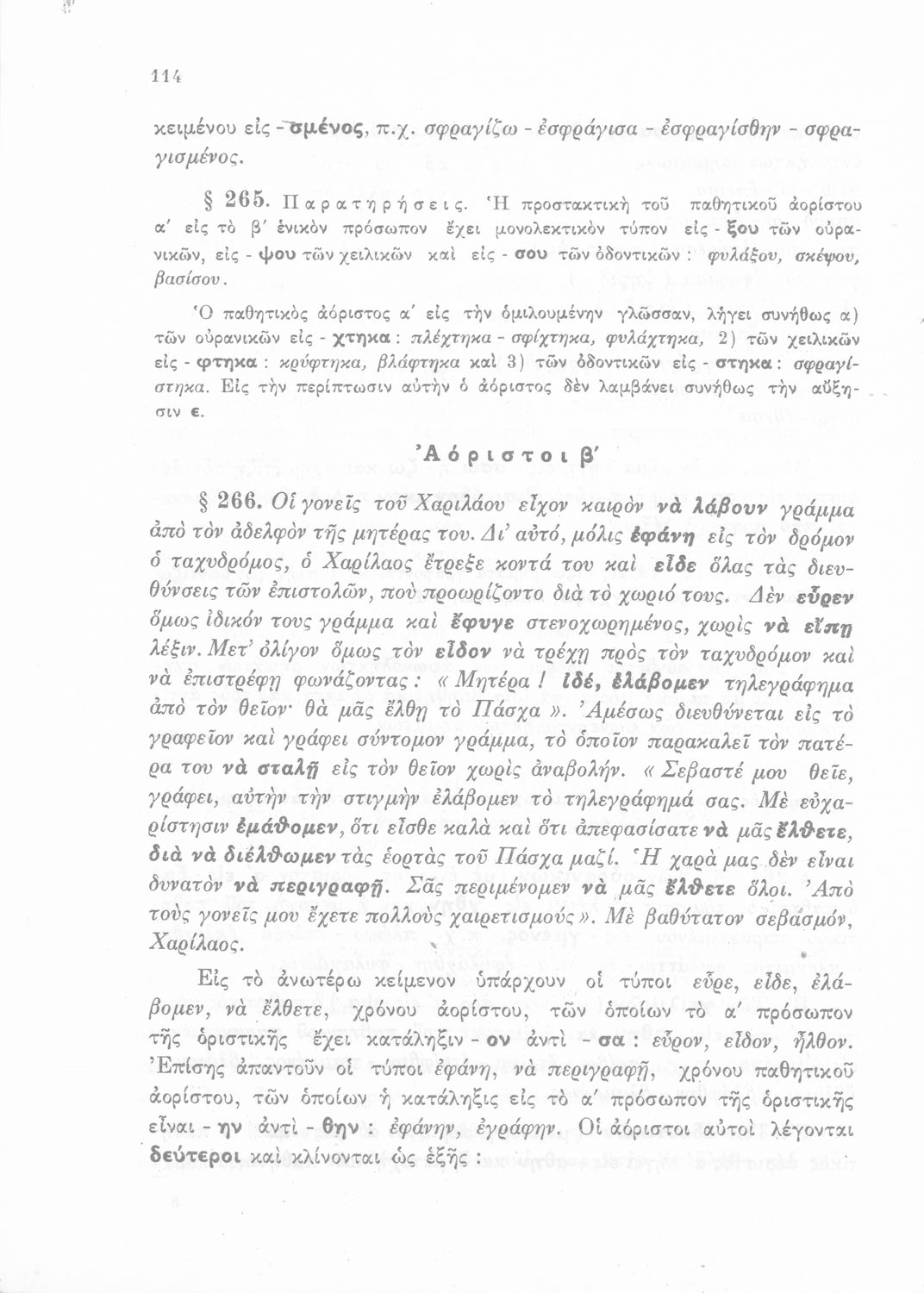Σχολικό εγχειρίδιο Γλώσσας Δημοτικού που περιλαμβάνει γραμματική και συντακτικό και είναι χωρισμένο σε φθογγολογικό, τυπολογικό και ετυμολογικό μέρος. Φέρει το σύμβολο της δικτατορίας.