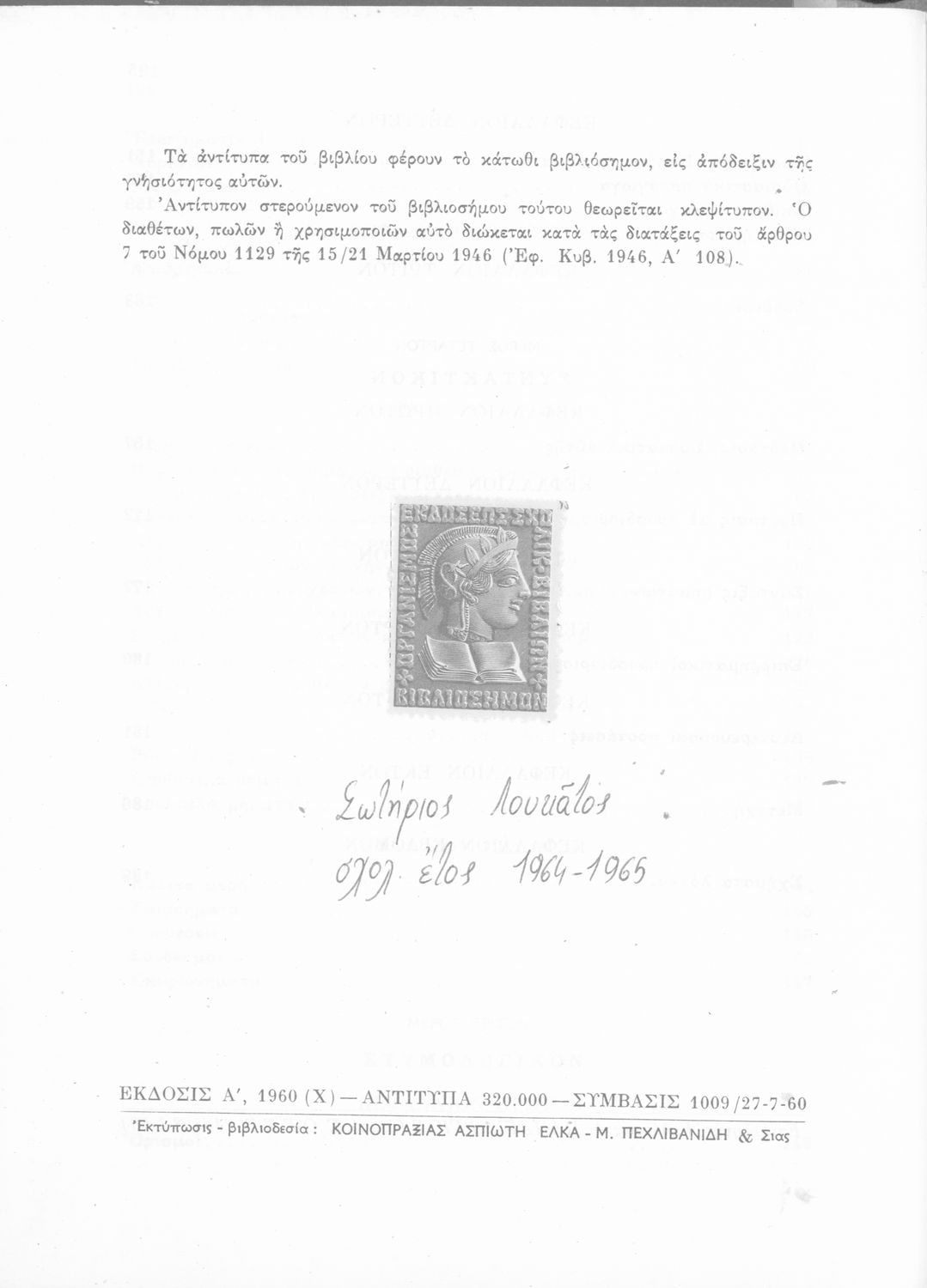 Εκδότης: Οργανισμός Εκδόσεως Διδακτικών Βιβλίων Έτος έκδοσης: 1960 Τόπος έκδοσης: Αθήνα Έκδοση: 1η Υπουργική απόφαση / Σύμβαση: 1009/27-7-1960 Έτος έγκρισης: 1960 |