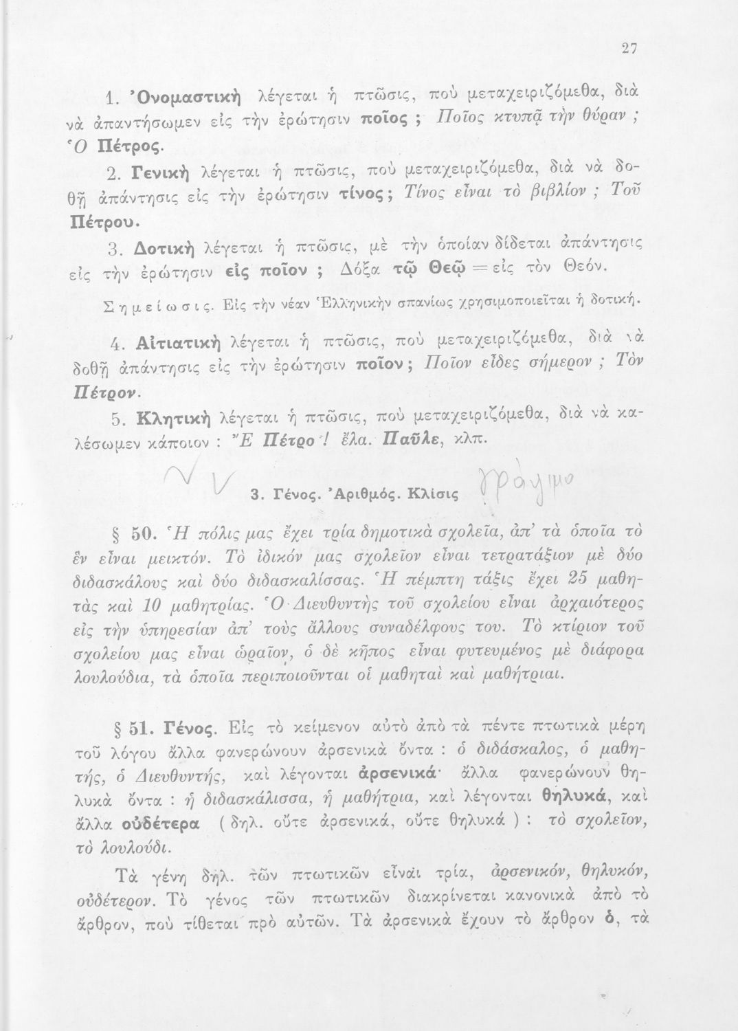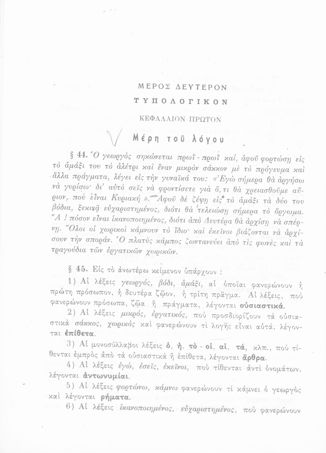 Σχολικό εγχειρίδιο που περιλαμβάνει τους κανόνες γραμματικής της νέας ελληνικής για τους μαθητές του Δημοτικού.