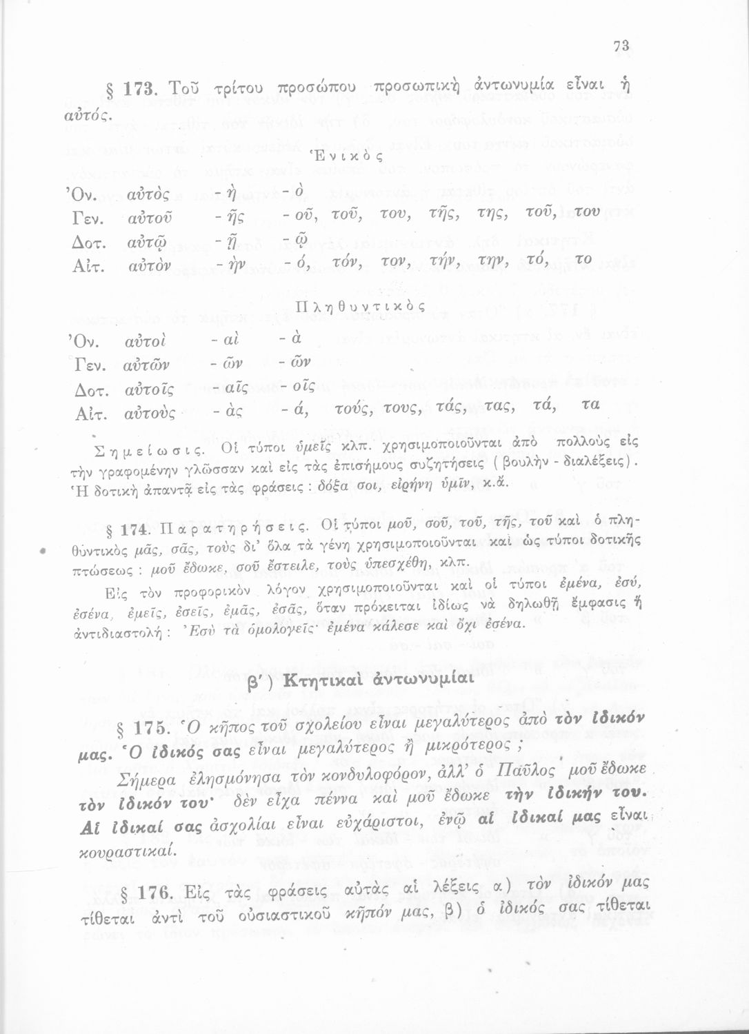 Σχολικό εγχειρίδιο Γλώσσας Δημοτικού που περιλαμβάνει τους κανόνες της γραμματικής και του συντακτικού της καθαρεύουσας.