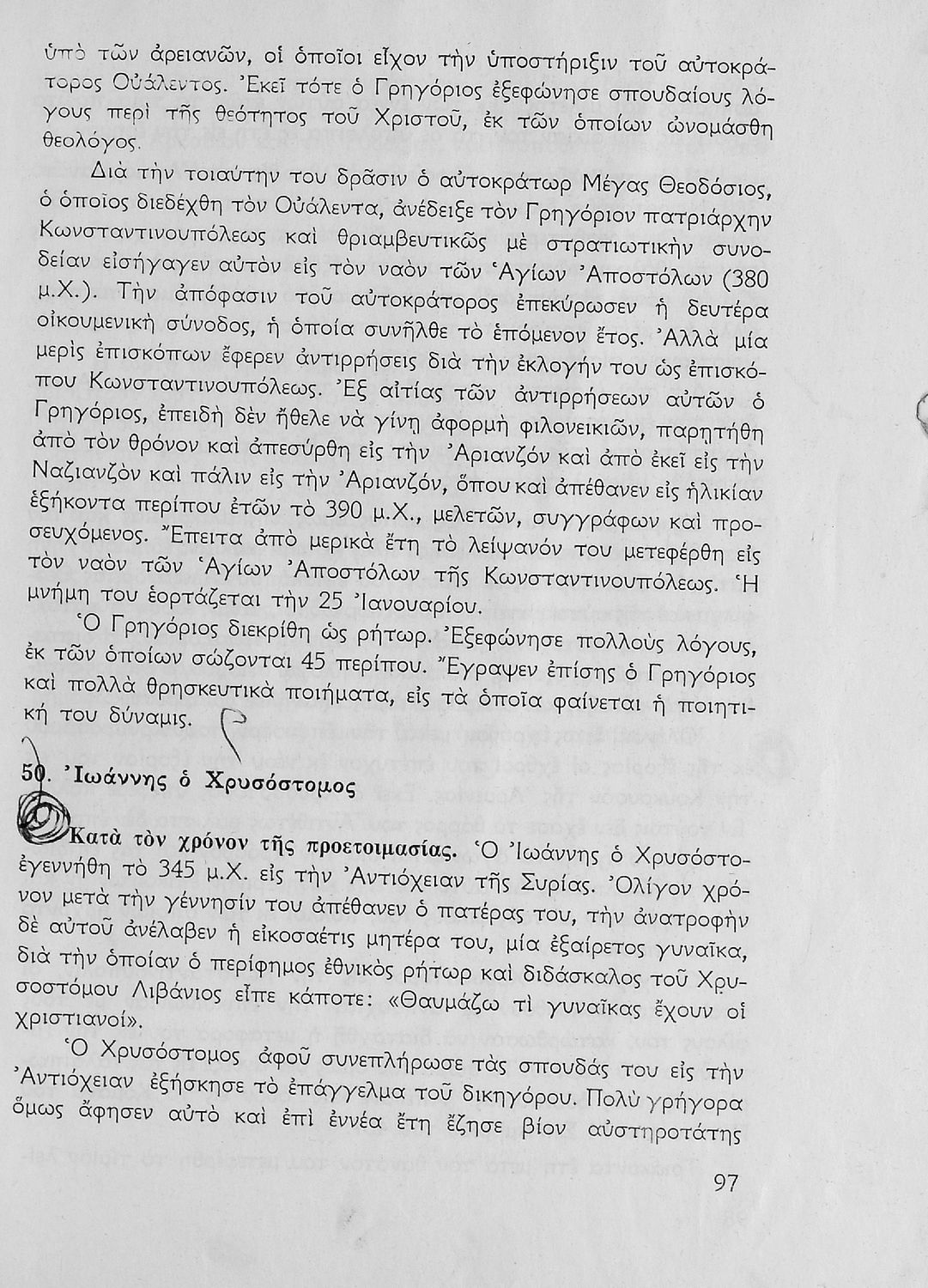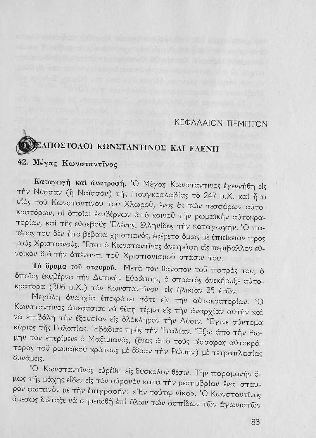 Σχολικό εγχειρίδιο Θρησκευτικών Ε΄ Δημοτικού που αποτελεί μια ιστορική επισκόπηση της Ορθόδοξης Εκκλησίας από την ίδρυσή της μέχρι την ίδρυση της Εκκλησίας της Ελλάδας. Φέρει το σύμβολο της δικτατορίας.
