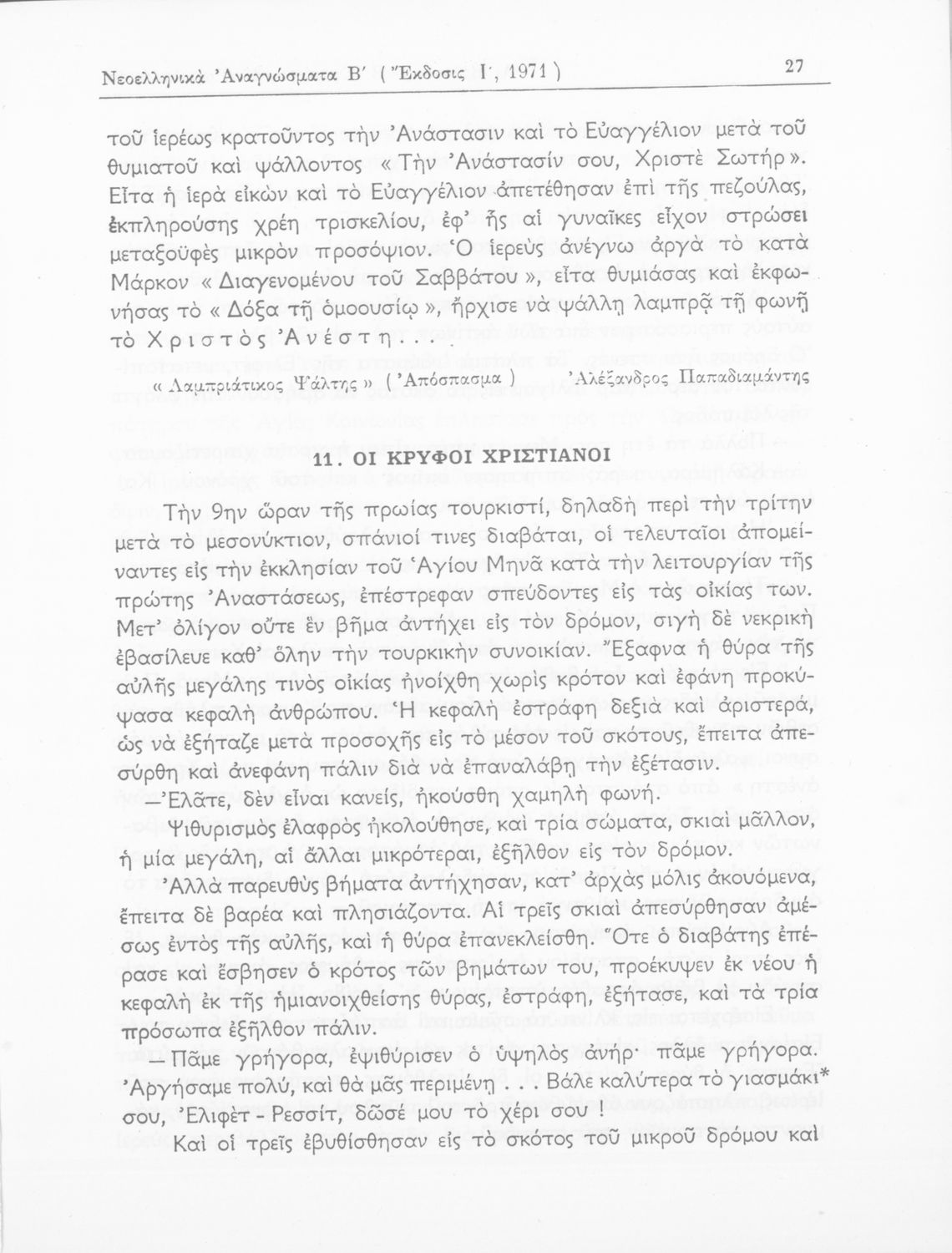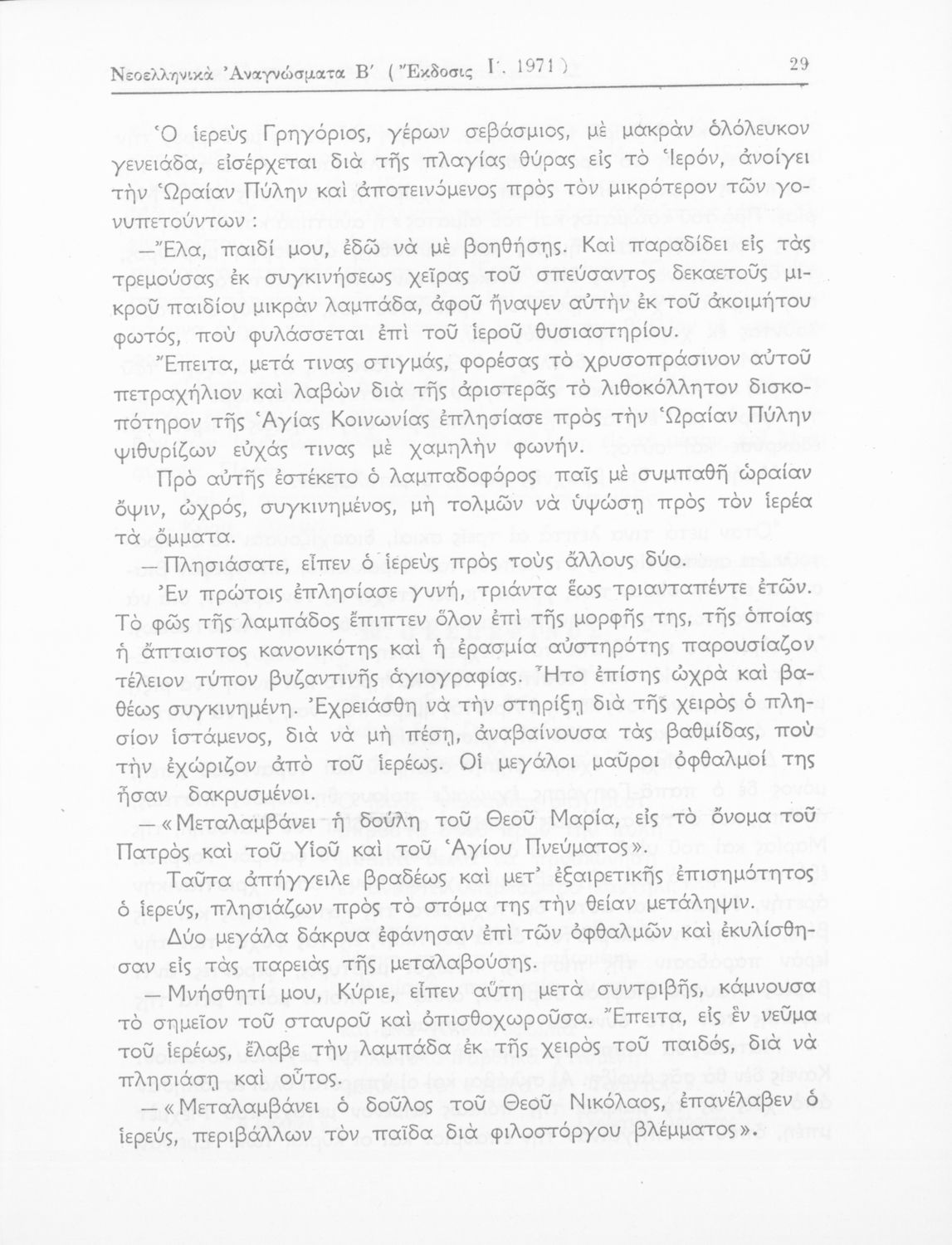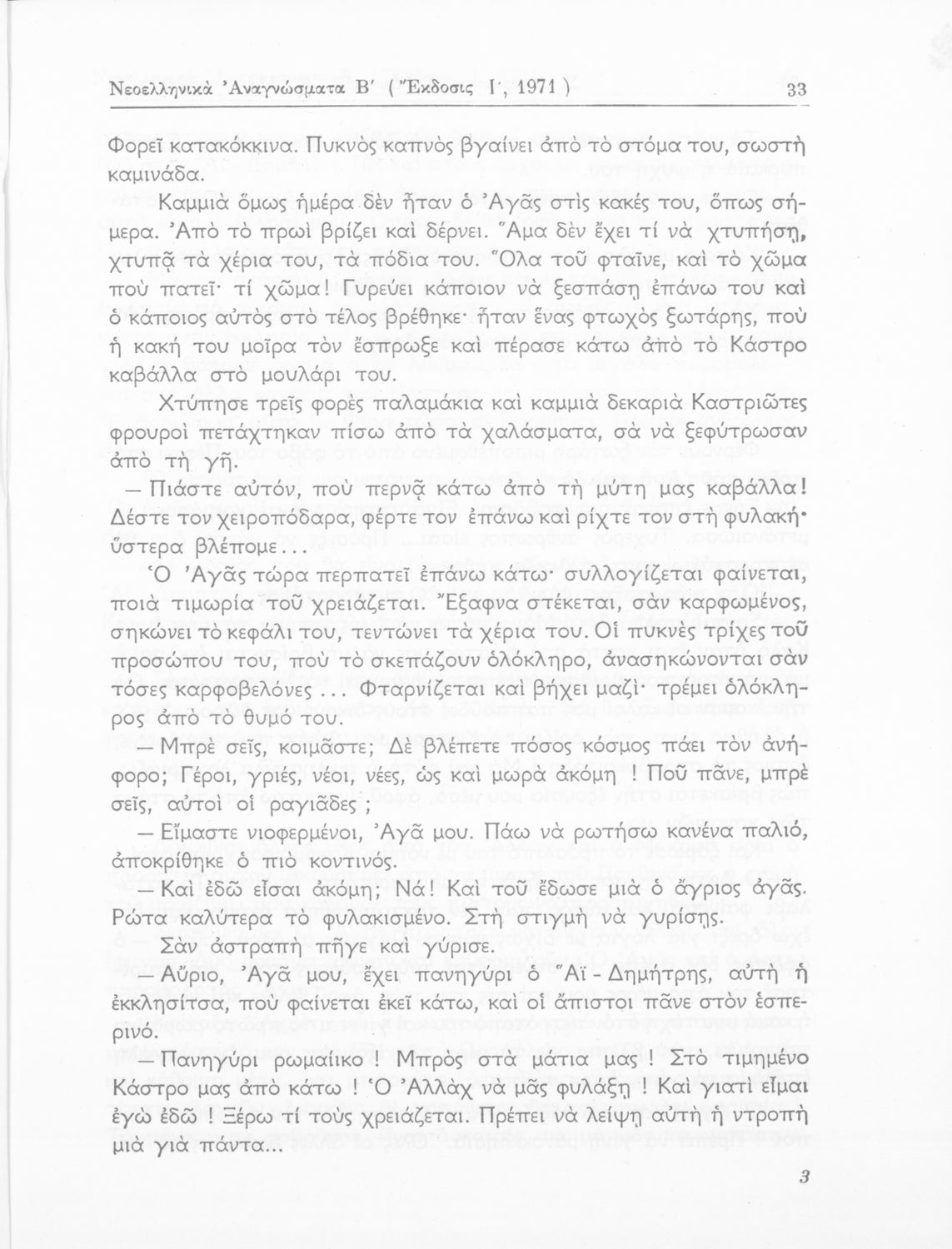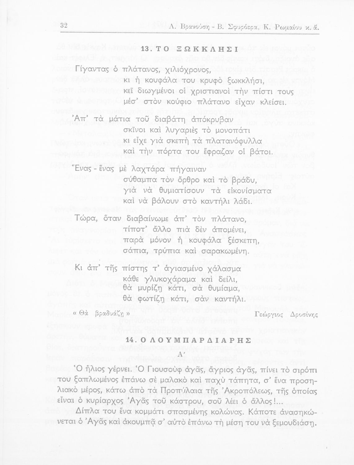 Σχολικό εγχειρίδιο Νέων Ελληνικών Β' Γυμνασίου που περιέχει ποιήματα και πεζά Ελλήνων συγγραφέων εμπνευσμένα από τη θρησκευτική, εθνική, οικογενειακή και κοινωνική ζωή και την ελληνική φύση. Περιέχει παράρτημα με βιογραφίες των συγγραφέων και λεξιλόγιο. Φέρει το σύμβολο της δικτατορίας.