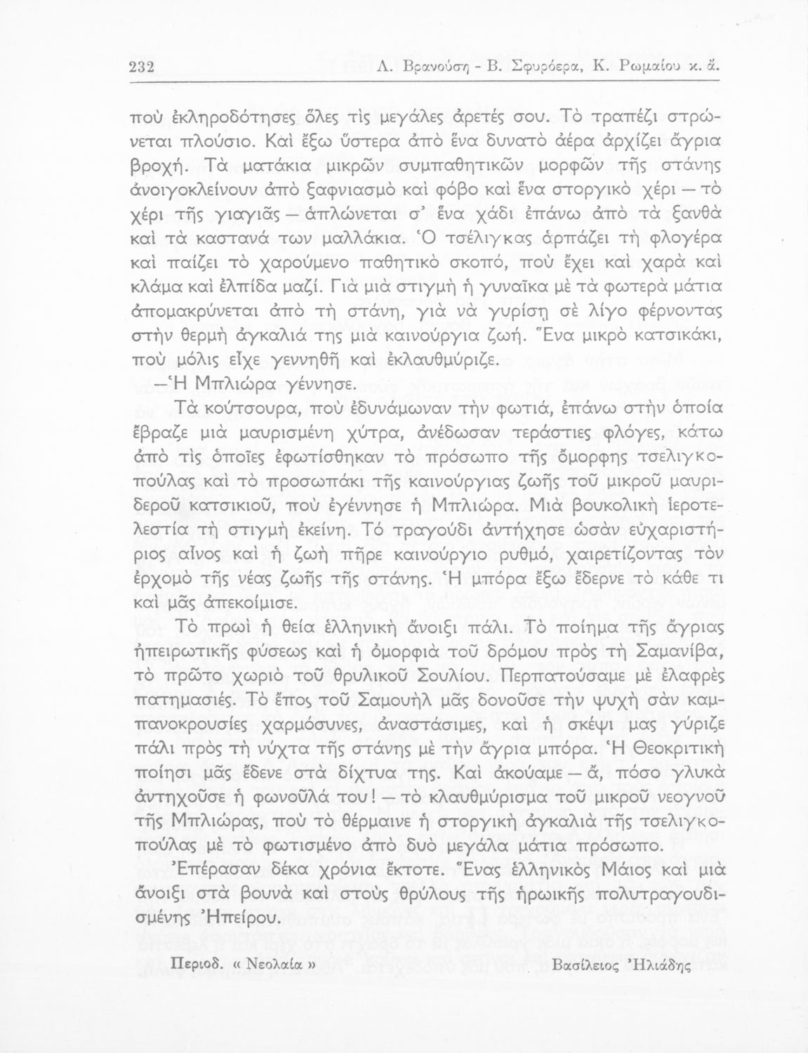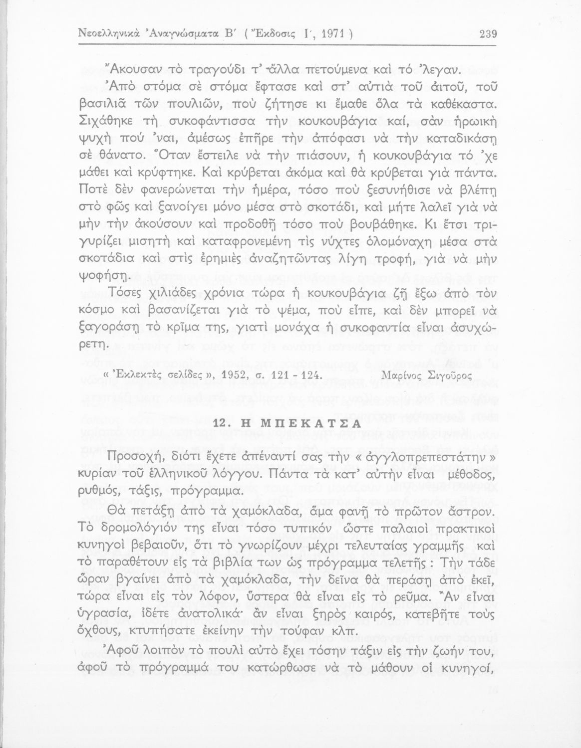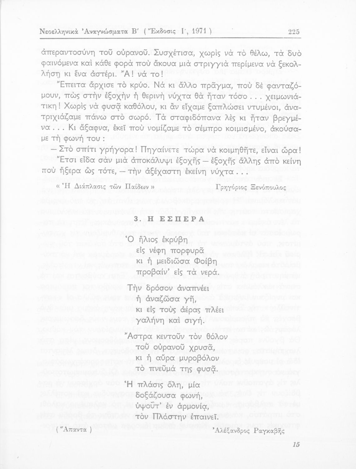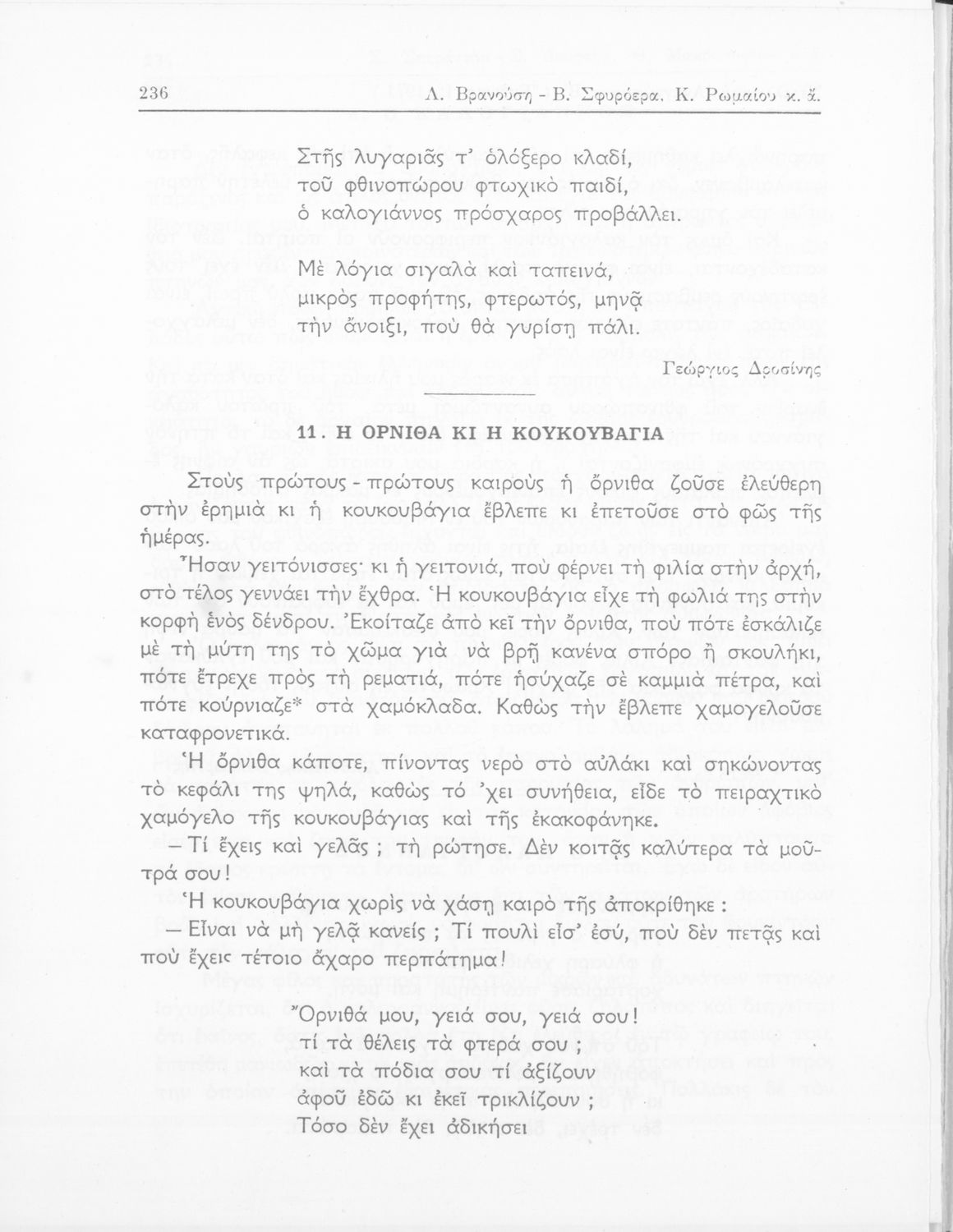 Σχολικό εγχειρίδιο Νέων Ελληνικών Β' Γυμνασίου που περιέχει ποιήματα και πεζά Ελλήνων συγγραφέων εμπνευσμένα από τη θρησκευτική, εθνική, οικογενειακή και κοινωνική ζωή και την ελληνική φύση. Περιέχει παράρτημα με βιογραφίες των συγγραφέων και λεξιλόγιο. Φέρει το σύμβολο της δικτατορίας.
