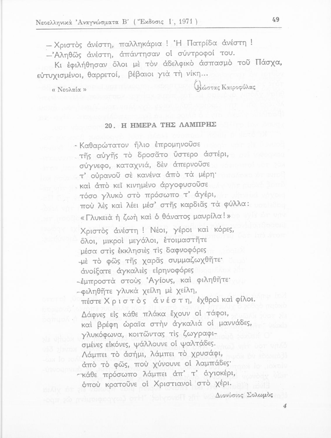 Σχολικό εγχειρίδιο Νέων Ελληνικών Δ΄ Γυμνασίου και Β΄ Αστικού Σχολείου που περιέχει πεζά και ποιήματα Ελλήνων συγγραφέων εμπνευσμένα από τη θρησκευτική και κοινωνική ζωή, την ελληνική μυθολογία, την αρχαία και