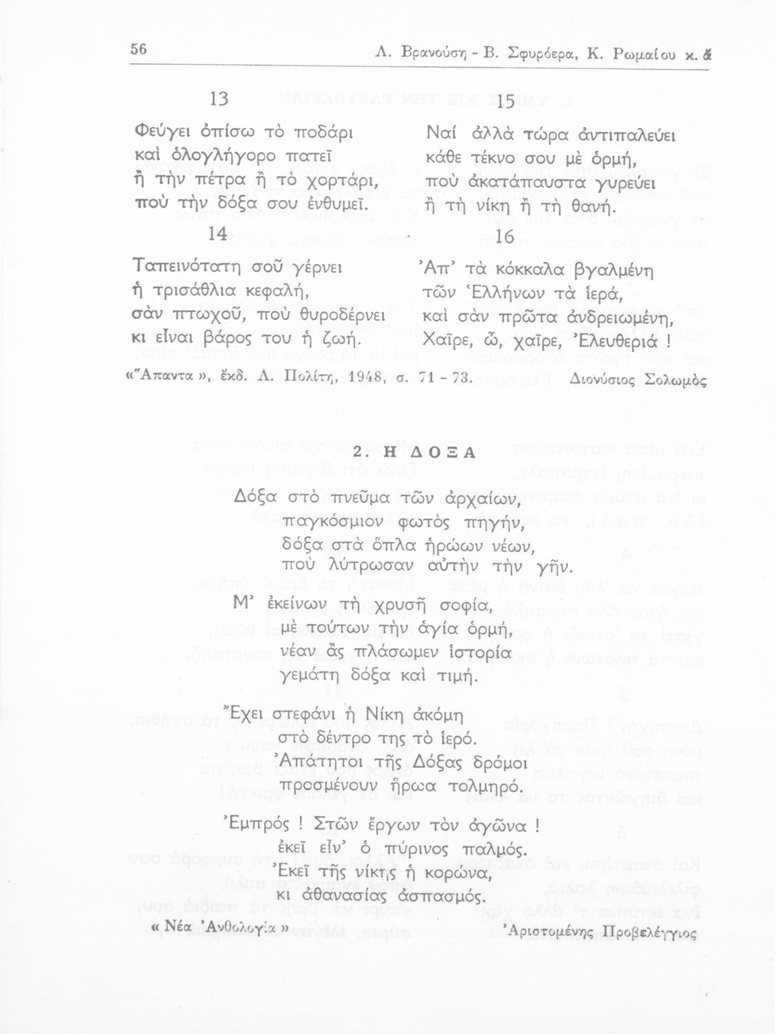Σχολικό εγχειρίδιο Νέων Ελληνικών Β΄ Γυμνασίου που περιλαμβάνει ποιήματα και πεζά Ελλήνων συγγραφέων και δημοτικά τραγούδια εμπνευσμένα από την σύγχρονη ελληνική ιστορία, τη βυζαντινή ιστορία, την ελληνική ...