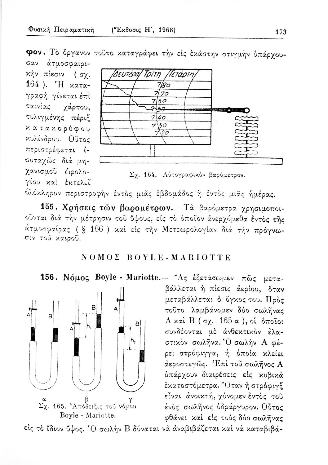 Σχολικό εγχειρίδιο Φυσικής Πειραματικής που εστιάζει στα φυσικά φαινόμενα της μηχανικής, της ακουστικής και της θερμότητας. Φέρει το σύμβολο της δικτατορίας.