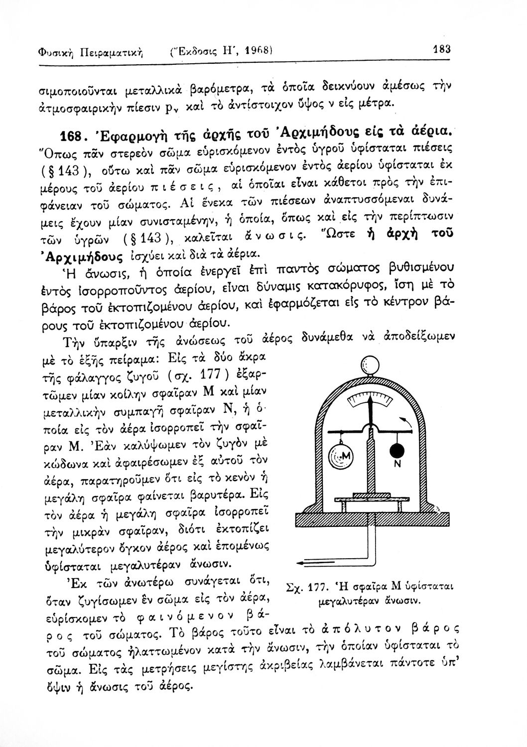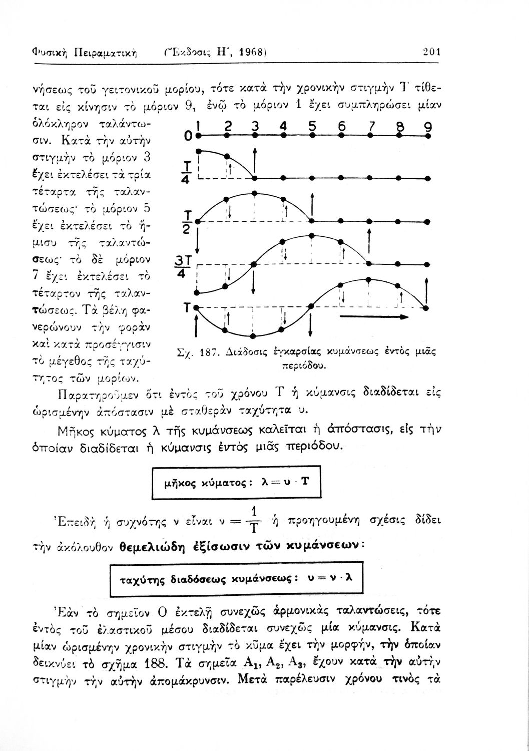 Σχολικό εγχειρίδιο Φυσικής Πειραματικής που εστιάζει στα φυσικά φαινόμενα της μηχανικής, της ακουστικής και της θερμότητας. Φέρει το σύμβολο της δικτατορίας.