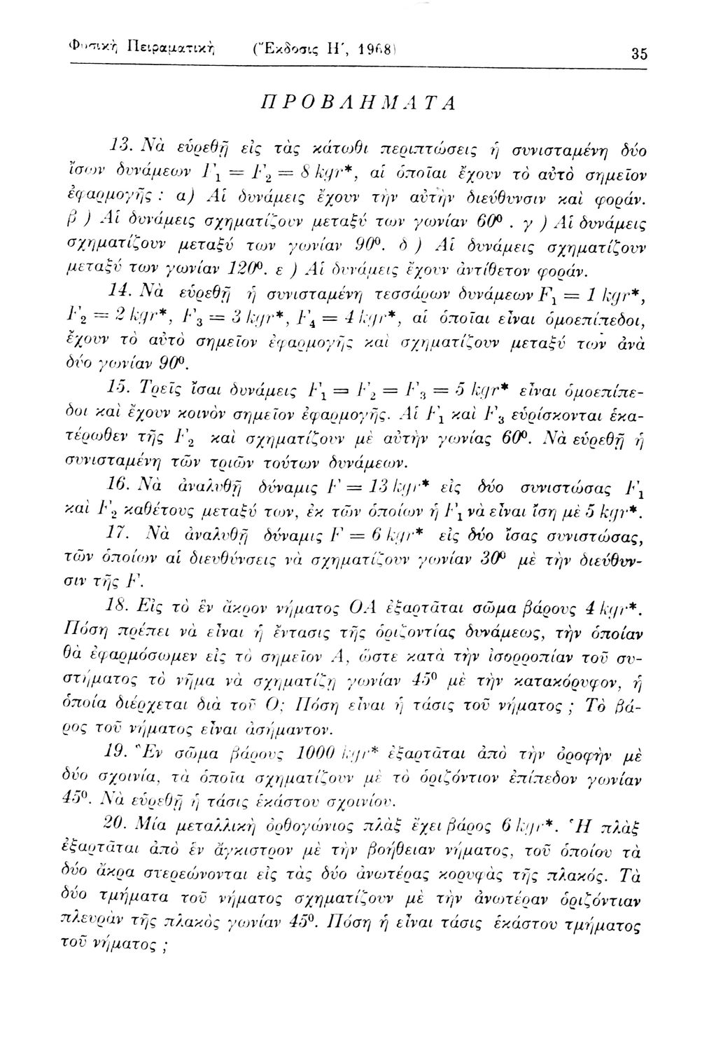 Σχολικό εγχειρίδιο της Ε΄ και ΣΤ΄ Τάξης των Δημοτικών Σχολείων και την Α΄ Τάξη των Οκτατάξιων Γυμνασίων, Προγυμνασίων και Αστικών Σχολείων για το μάθημα της Φυσικής. Παρέχει βασικές γνώσεις της φυσικής ...