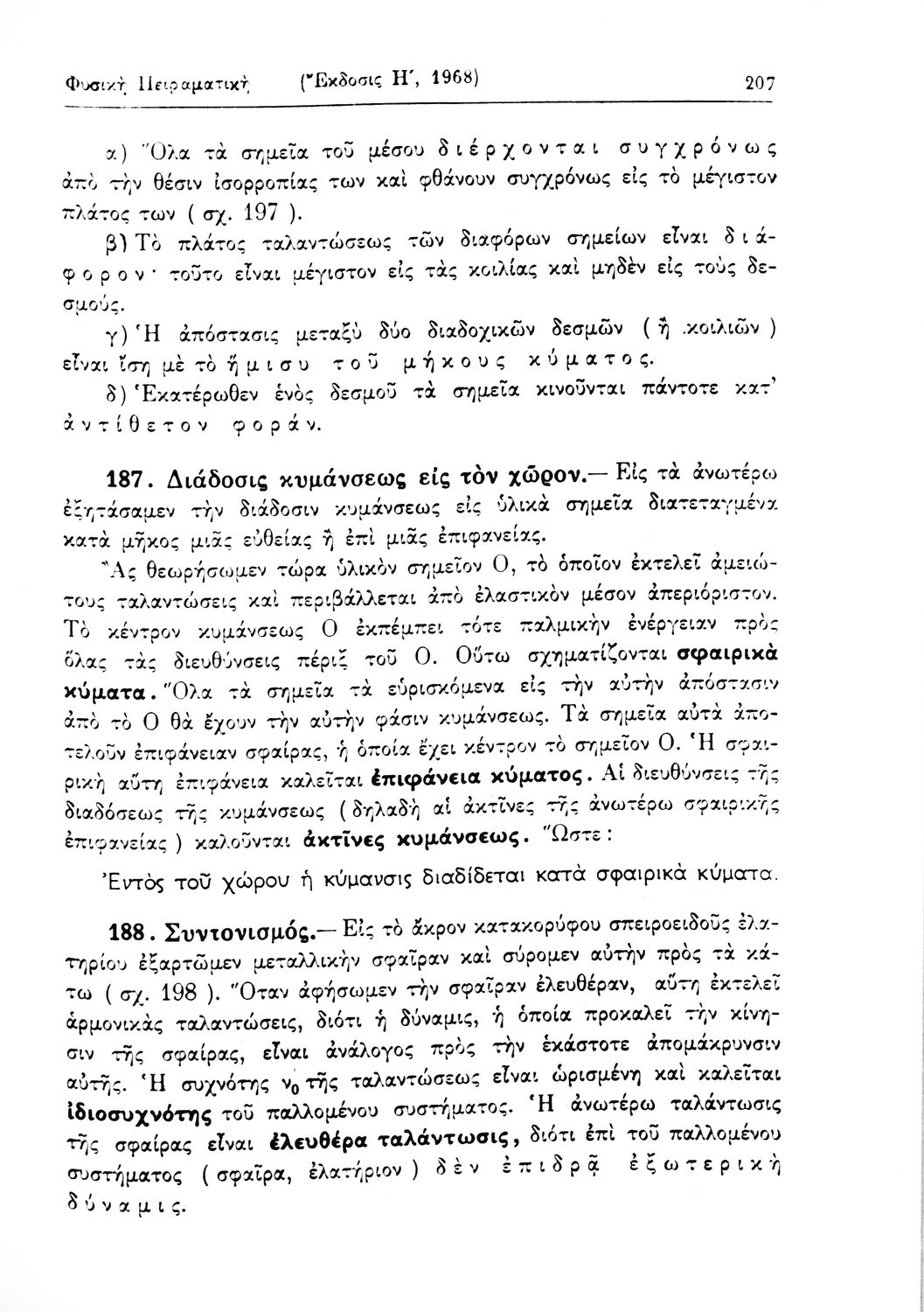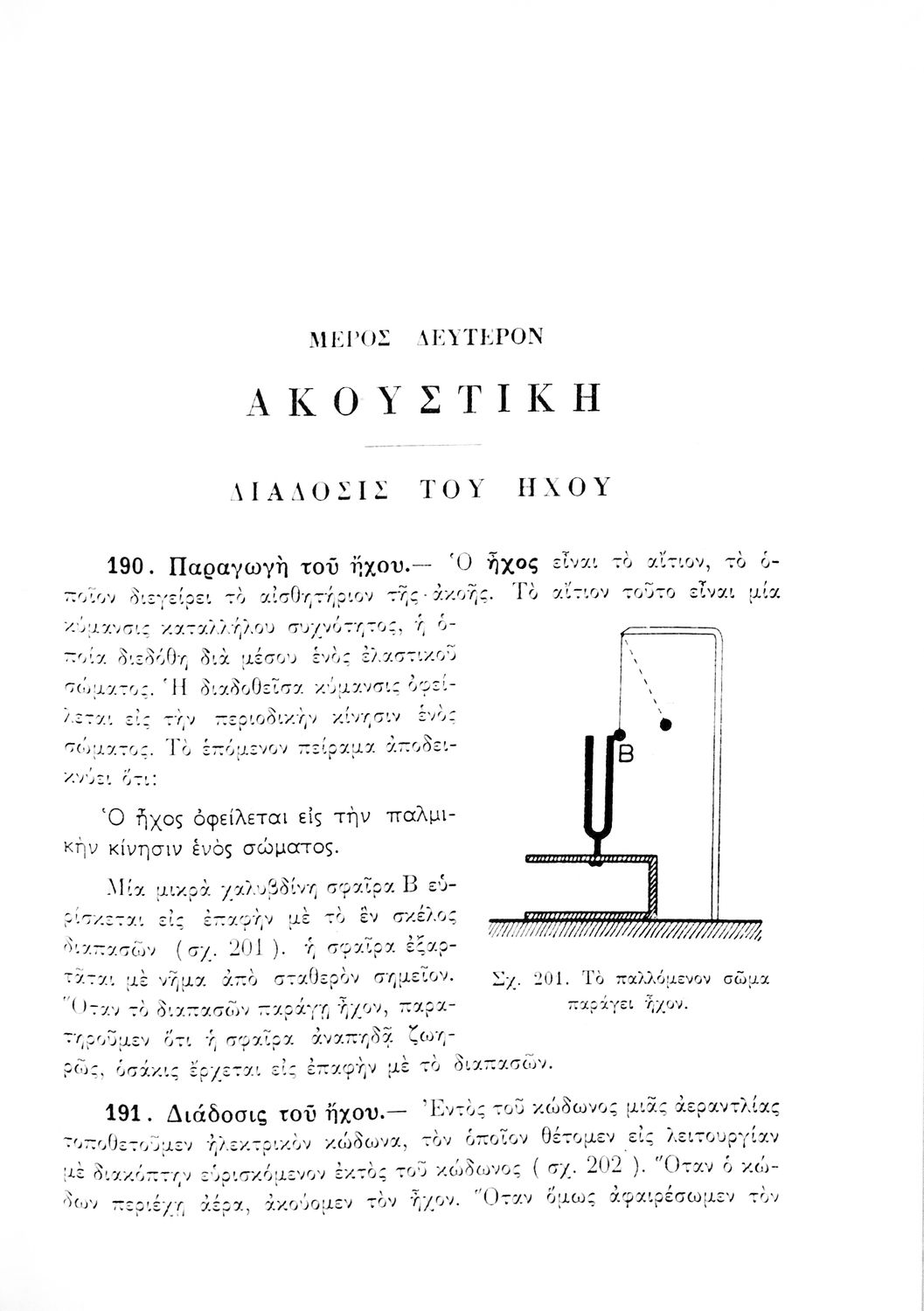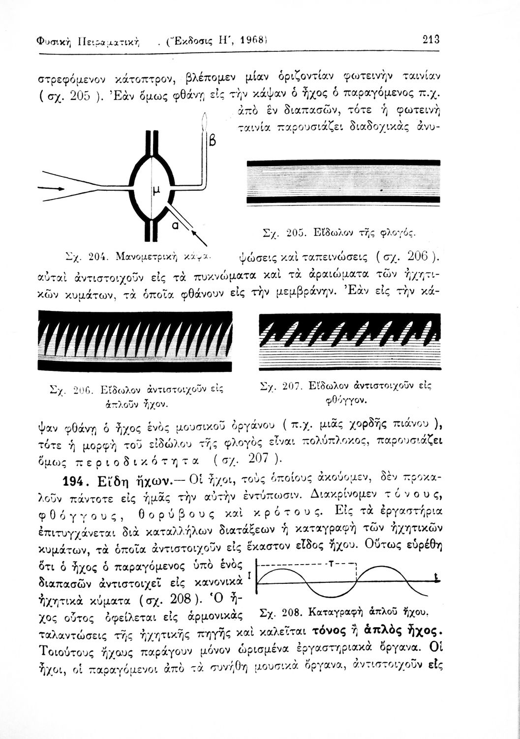 Σχολικό εγχειρίδιο Φυσικής Πειραματικής που εστιάζει στα φυσικά φαινόμενα της μηχανικής, της ακουστικής και της θερμότητας. Φέρει το σύμβολο της δικτατορίας.