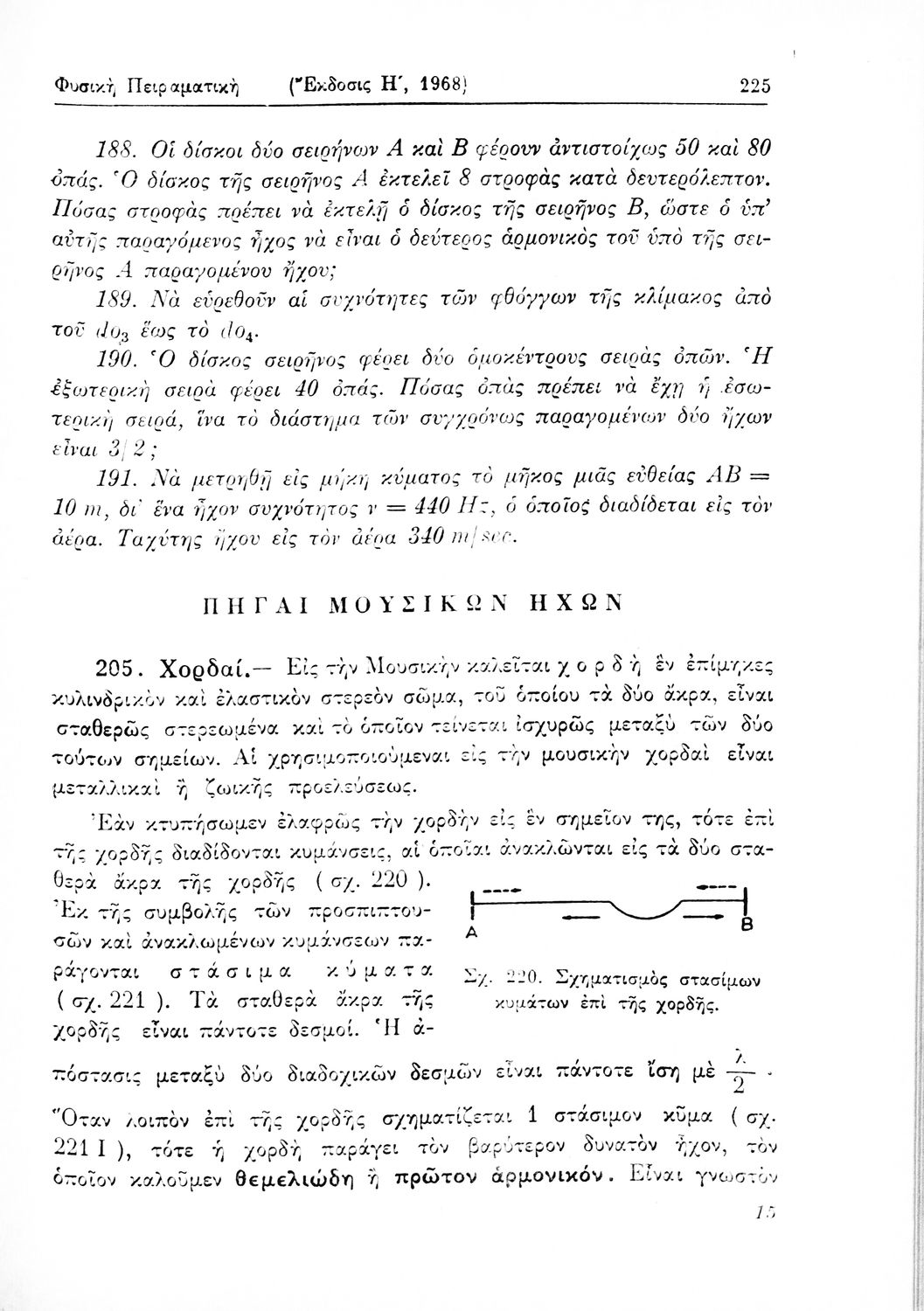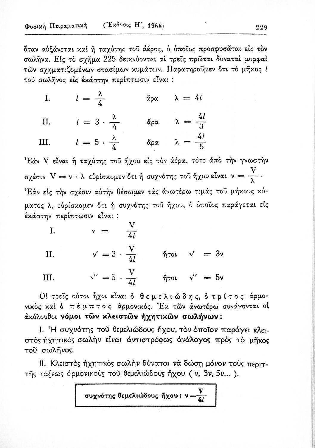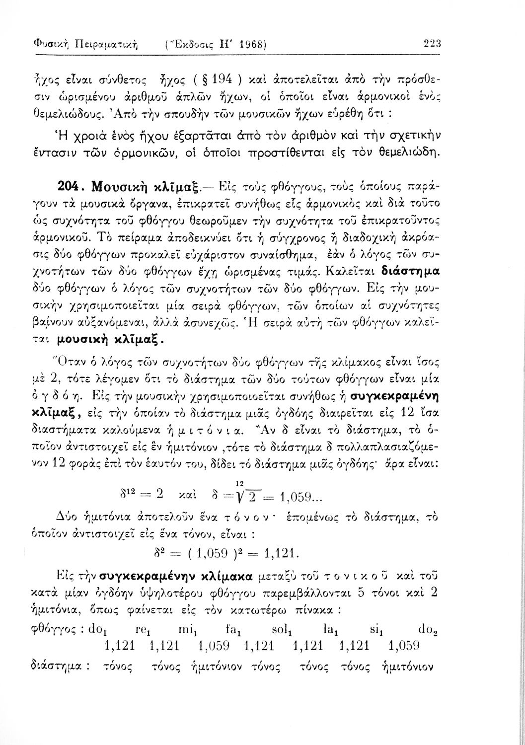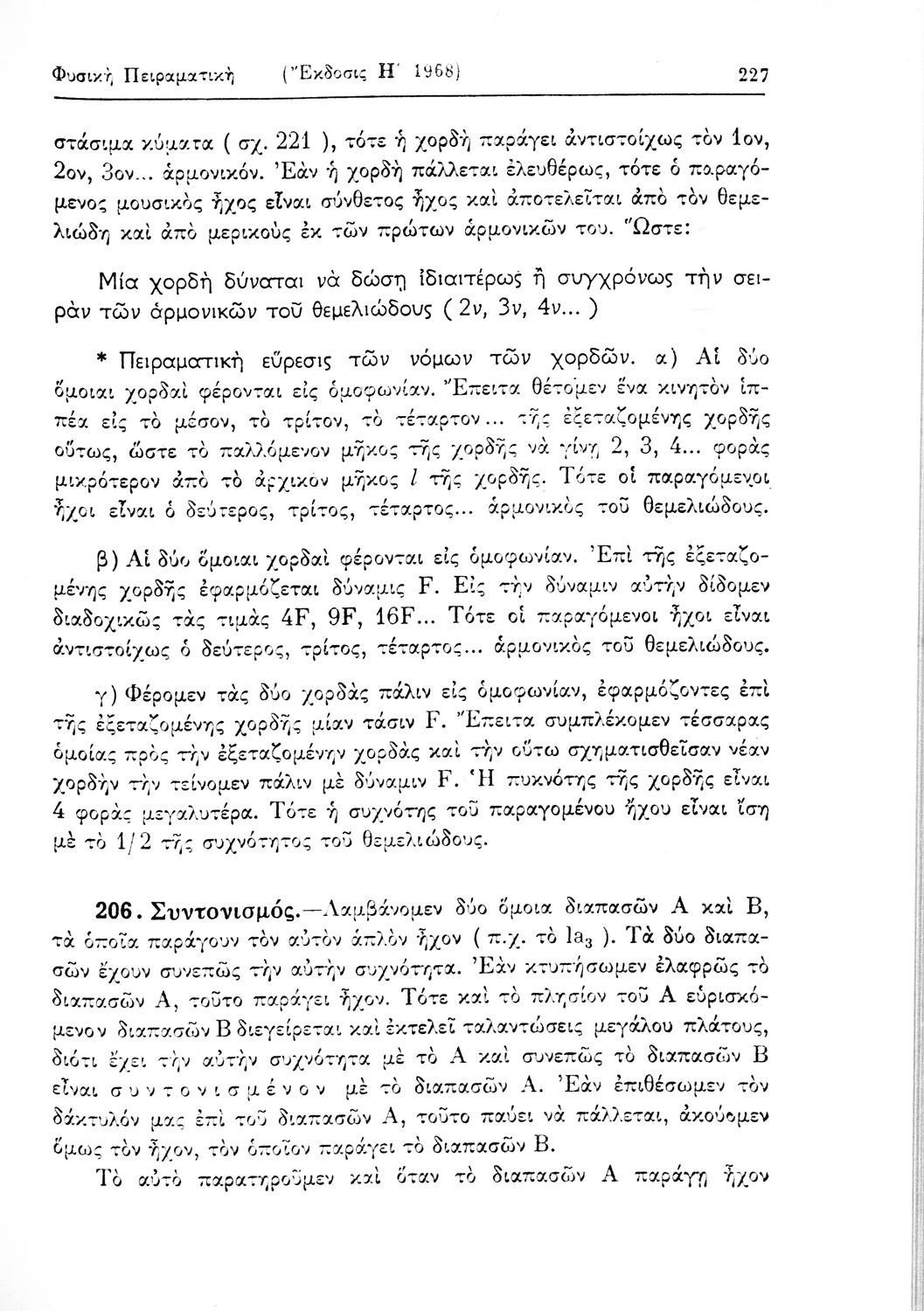 Σχολικό εγχειρίδιο Φυσικής Πειραματικής που εστιάζει στα φυσικά φαινόμενα της μηχανικής, της ακουστικής και της θερμότητας. Φέρει το σύμβολο της δικτατορίας.