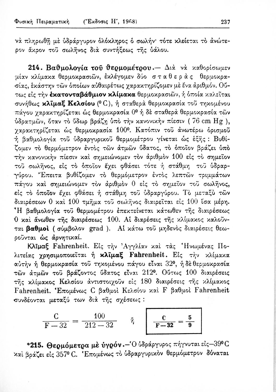 Σχολικό εγχειρίδιο της Ε΄ και ΣΤ΄ Τάξης των Δημοτικών Σχολείων και την Α΄ Τάξη των Οκτατάξιων Γυμνασίων, Προγυμνασίων και Αστικών Σχολείων για το μάθημα της Φυσικής. Παρέχει βασικές γνώσεις της φυσικής ...