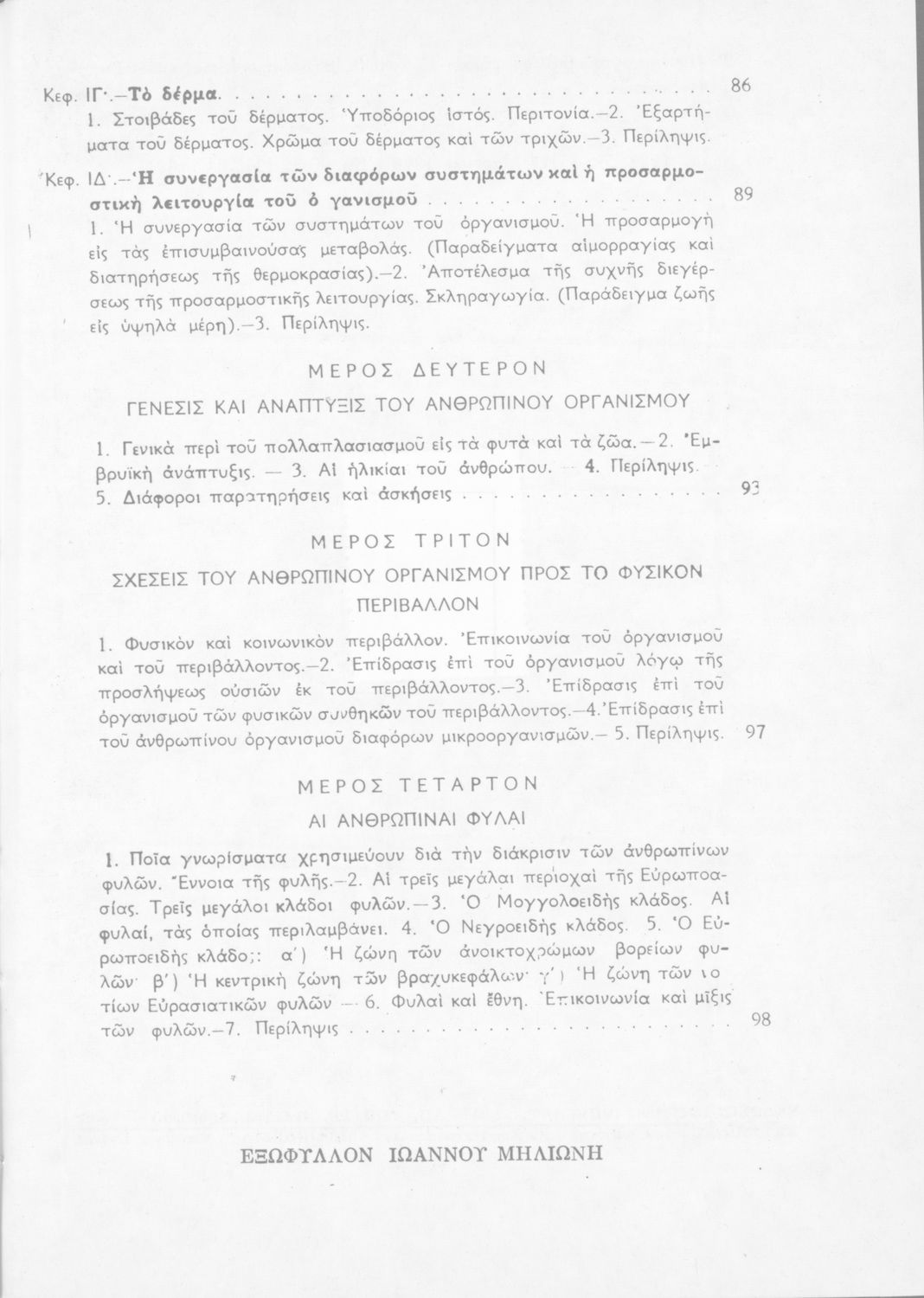Σχολικό εγχειρίδιο Ανθρωπολογίας Β΄ Γυμνασίου που εστιάζει στην κατασκευή, ανάπτυξη και λειτουργία του ανθρώπινου οργανισμού και τη σχέση του ανθρώπου με το φυσικό περιβάλλον. Περιέχει και αναφορά στις ανθρώπινες φυλές.