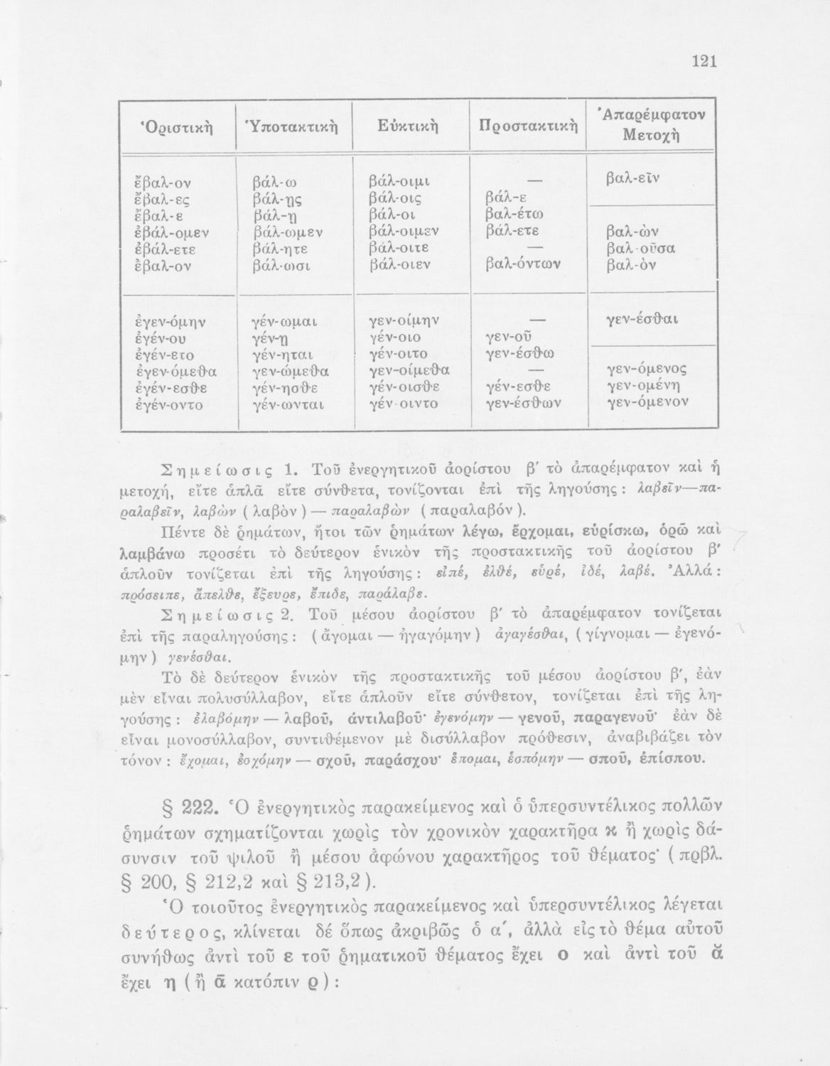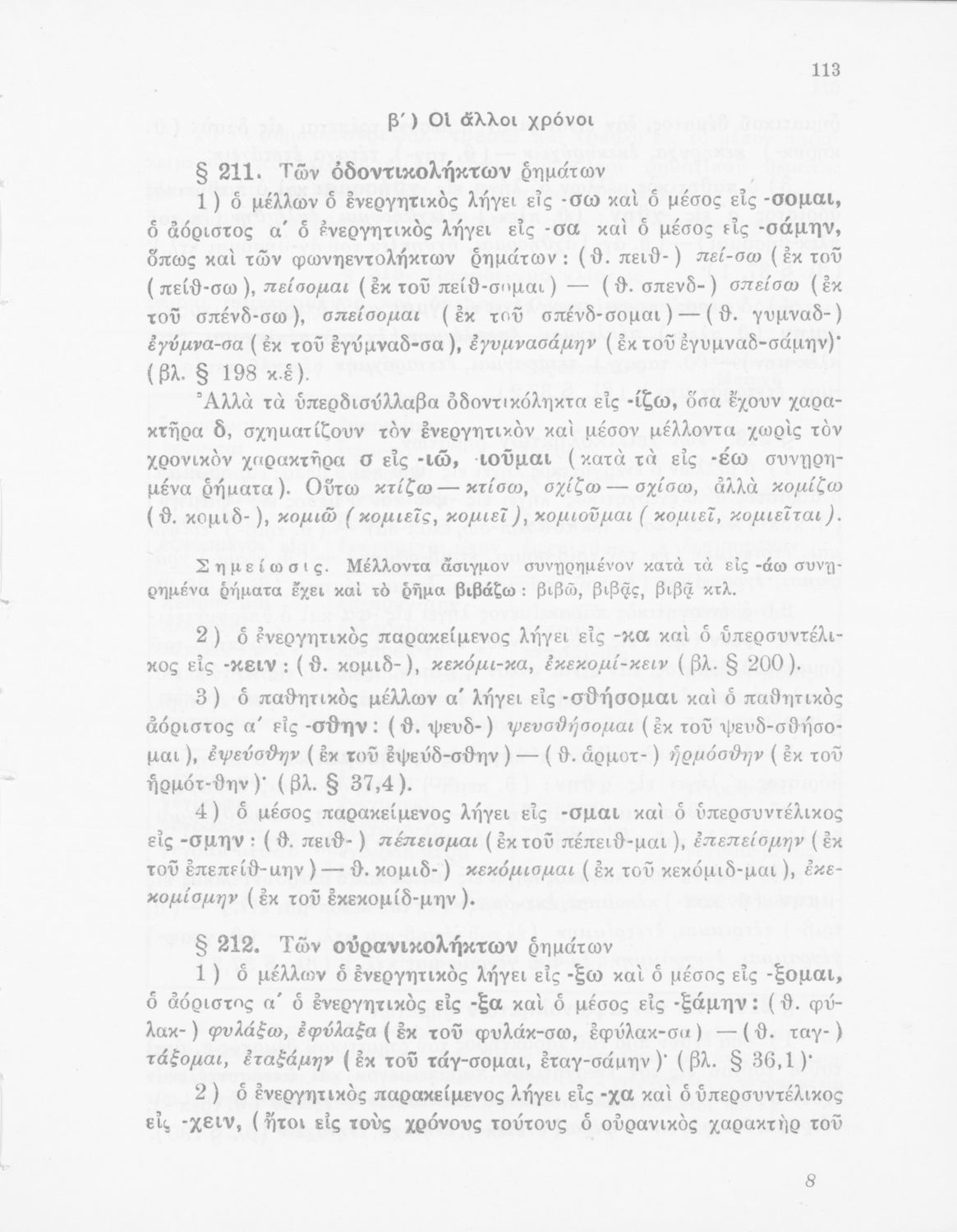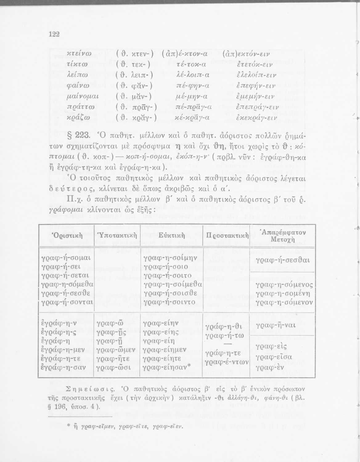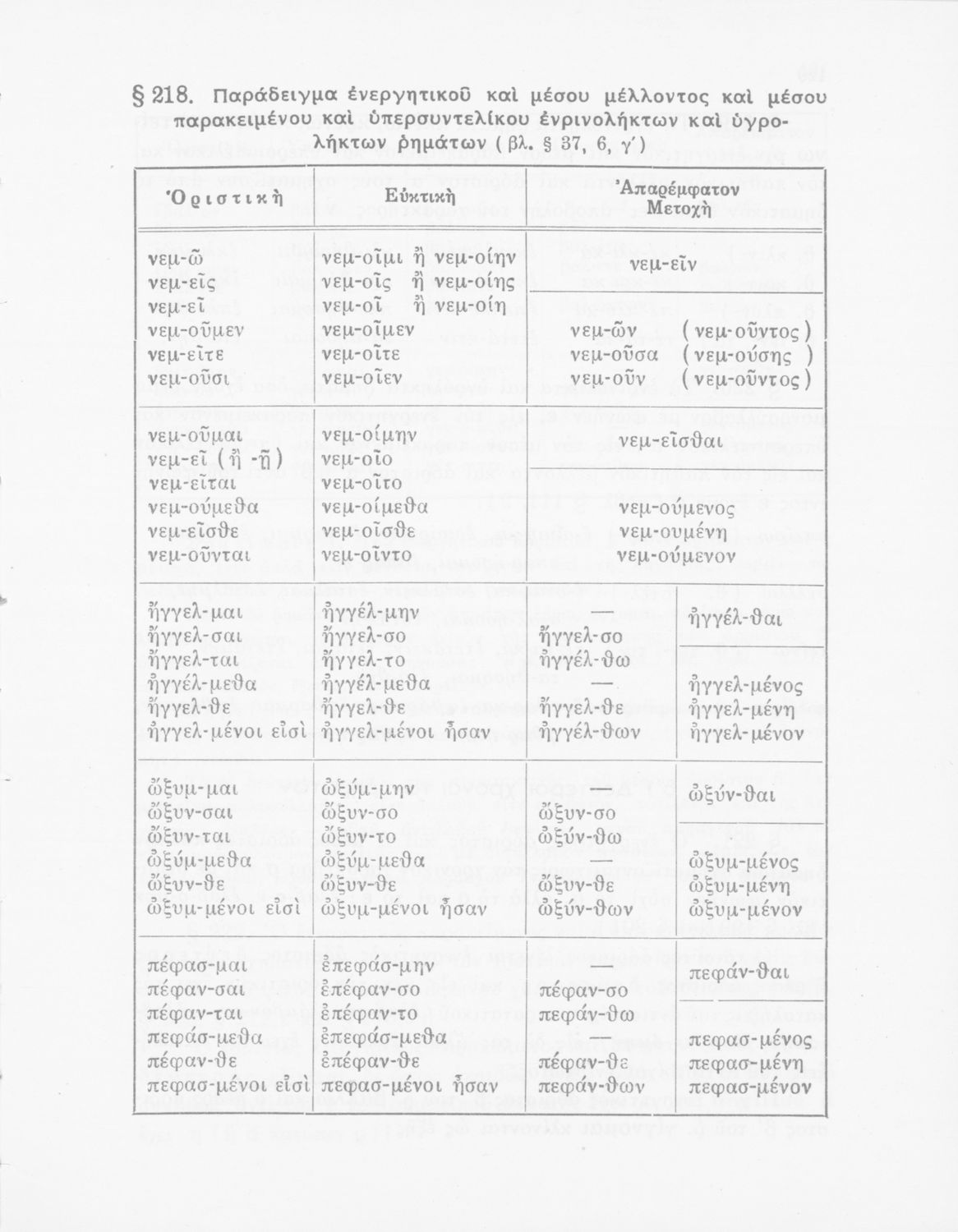 520 ## _aΣχολικό εγχειρίδιο Αρχαίων Ελληνικών Γυμνασίου που περιλαμβάνει τους κανόνες γραμματικής και είναι χωρισμένη στο φθογγολογικό, το τυπολογικό και ετυμολογικό μέρος.