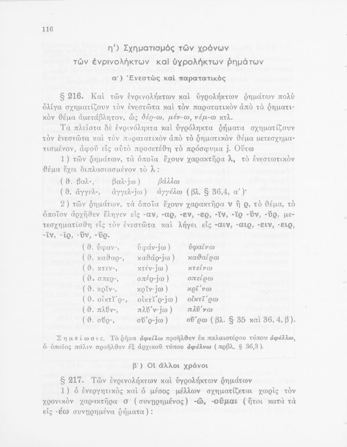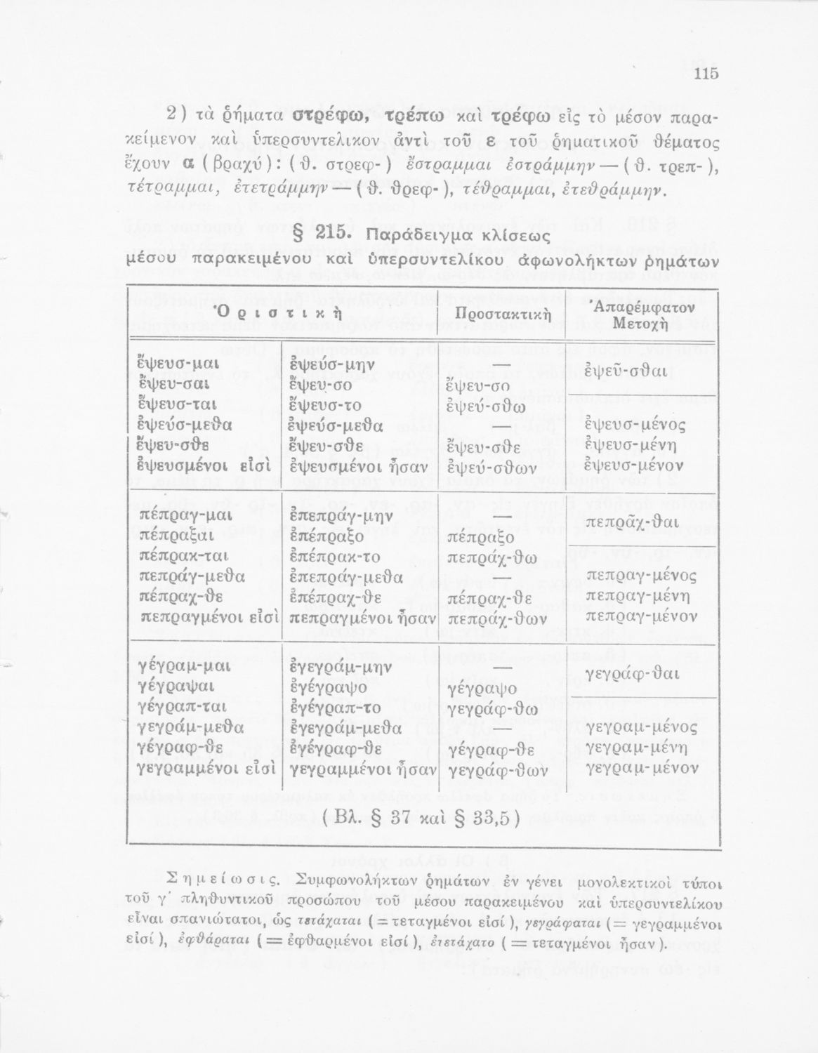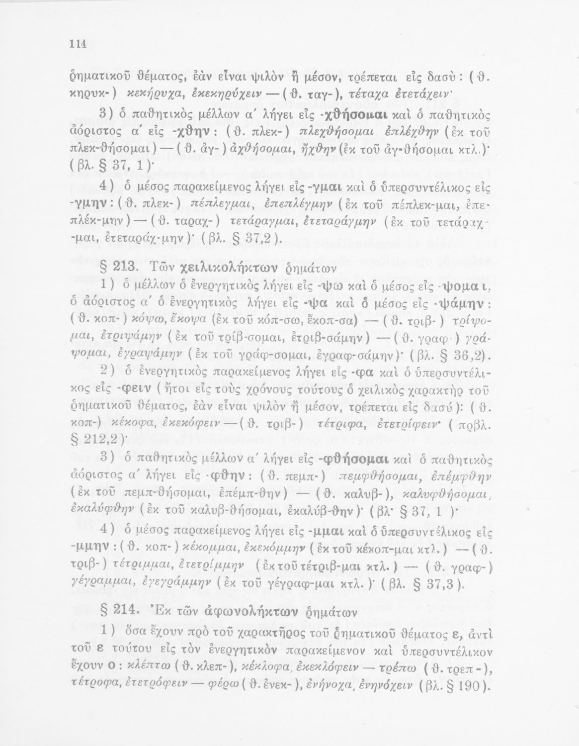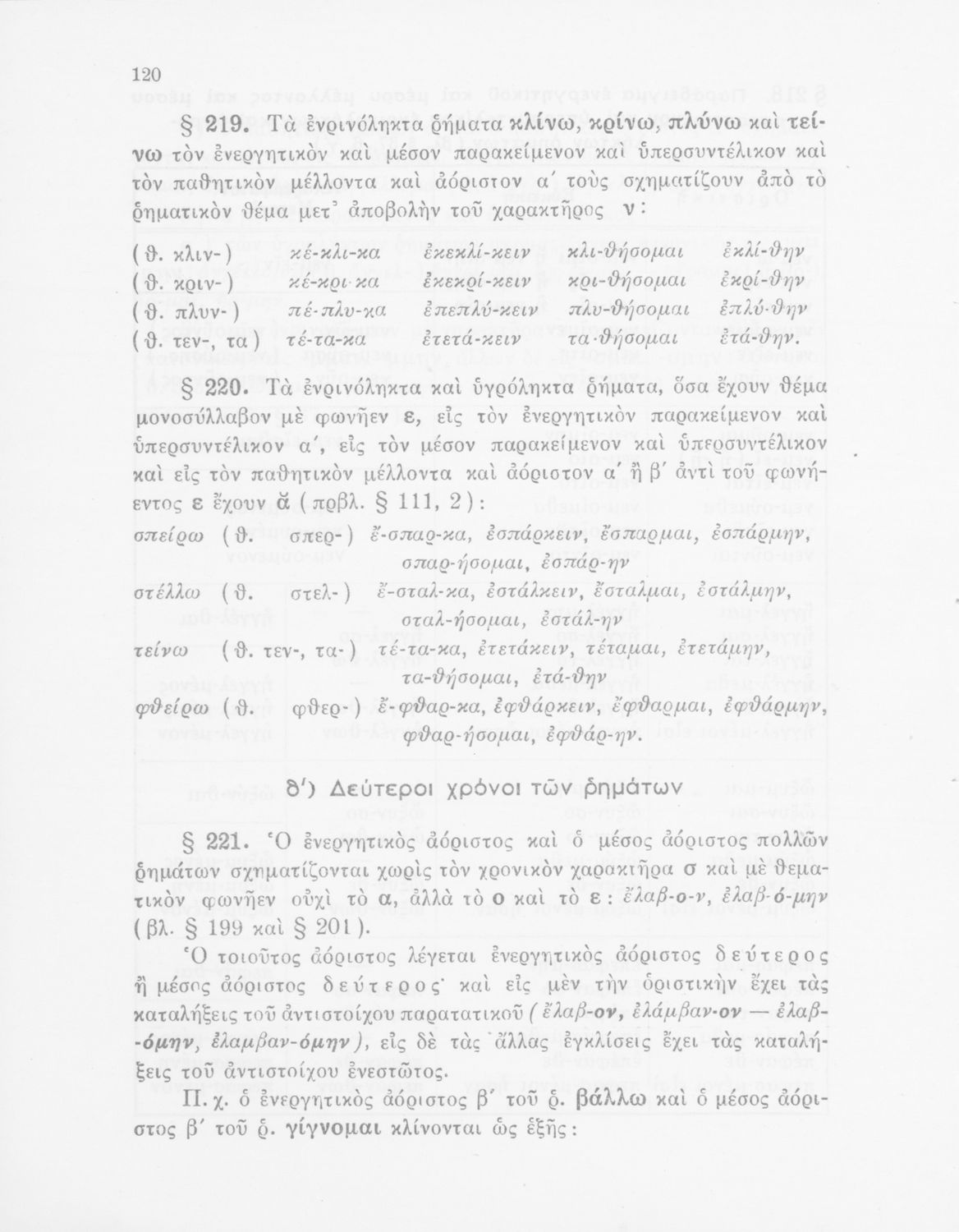 520 ## _aΣχολικό εγχειρίδιο Αρχαίων Ελληνικών Γυμνασίου που περιλαμβάνει τους κανόνες γραμματικής και είναι χωρισμένη στο φθογγολογικό, το τυπολογικό και ετυμολογικό μέρος.