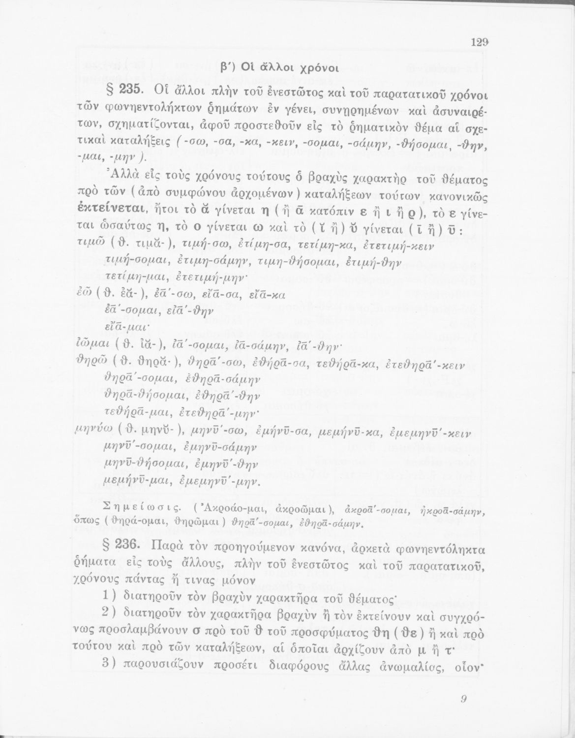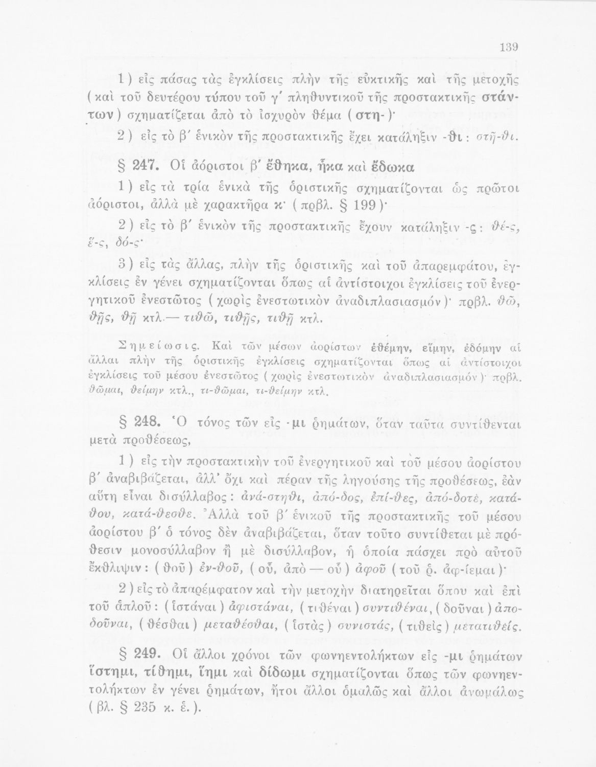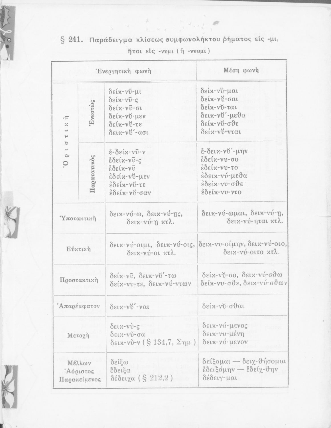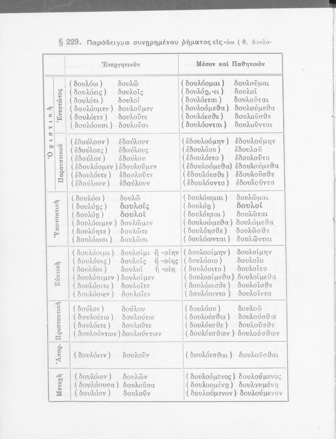 Σχολικό εγχειρίδιο Αρχαίων Ελληνικών Γυμνασίου που περιέχει τους κανόνες γραμματικής και είναι χωρισμένο σε φθογγολογικό, τυπολογικό και ετυμολογικό μέρος. Περιέχει και κατάλογο ανωμάλων ρημάτων.