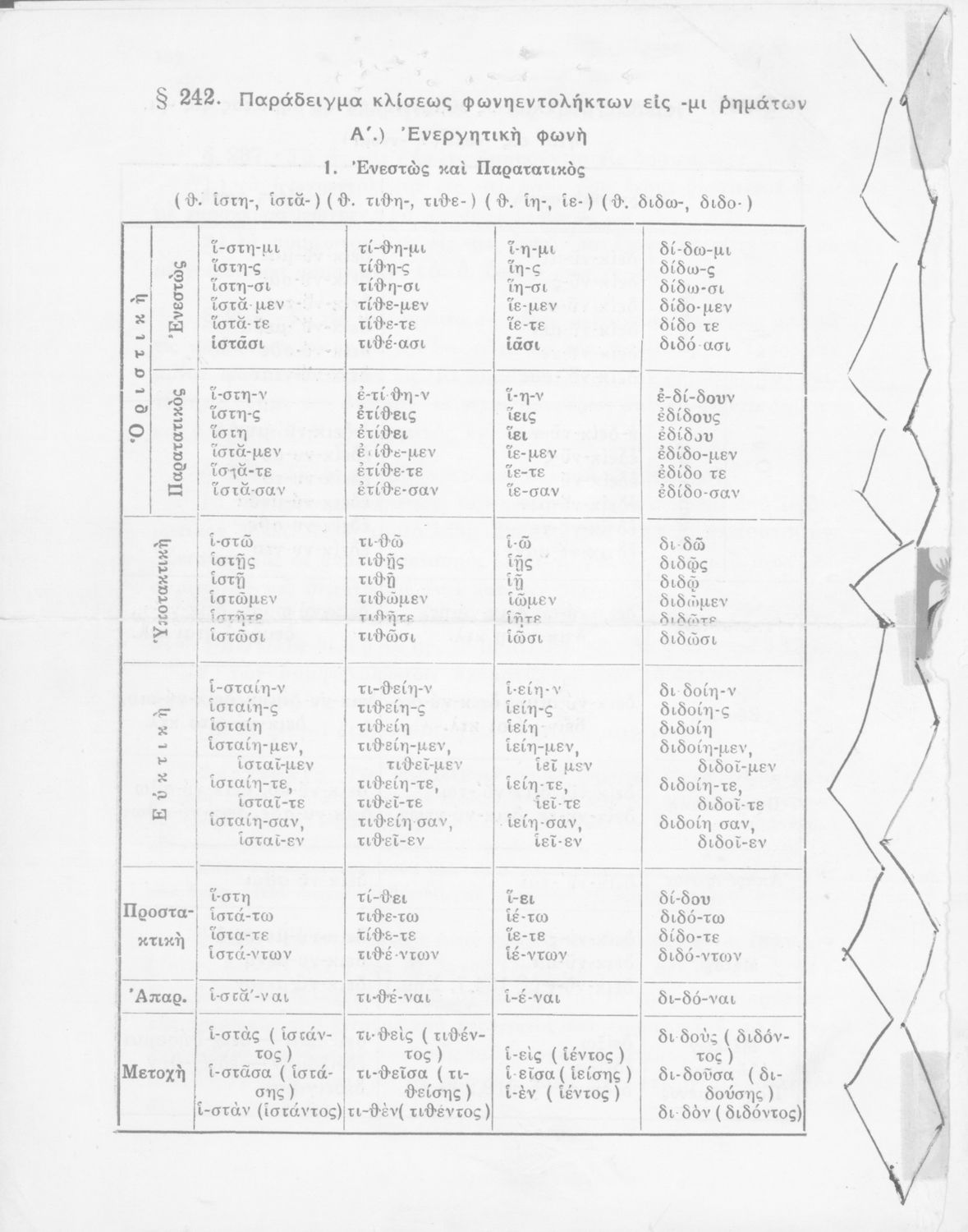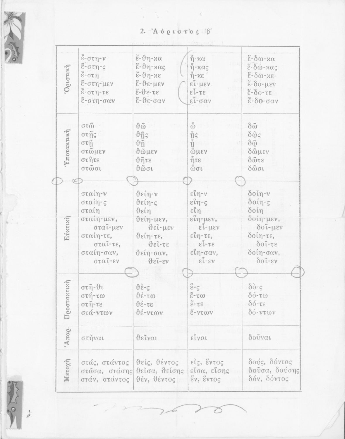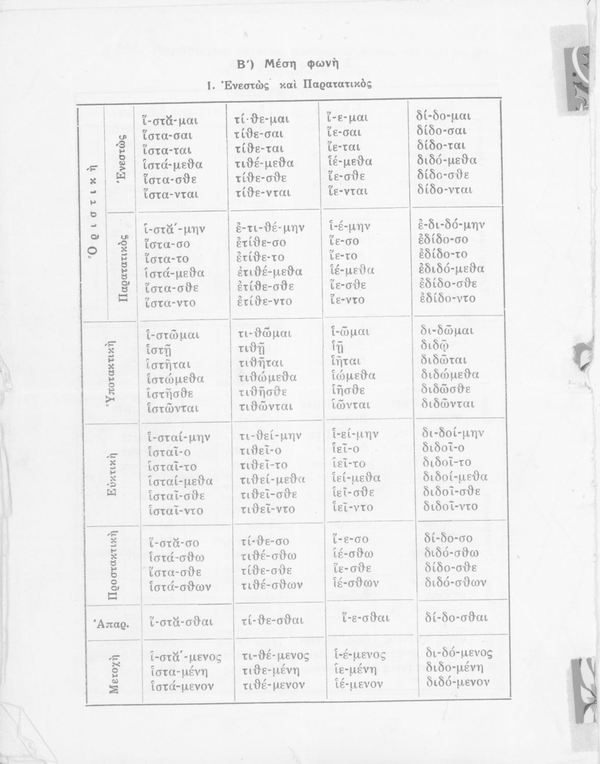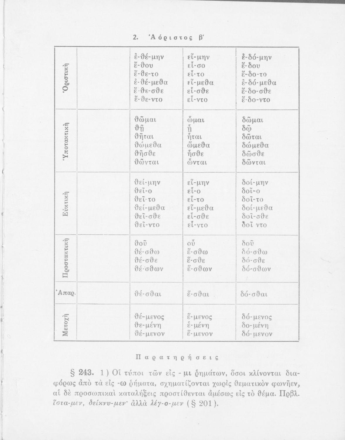 Σχολικό εγχειρίδιο Αρχαίων Ελληνικών Γυμνασίου που περιέχει τους κανόνες γραμματικής και είναι χωρισμένο σε φθογγολογικό, τυπολογικό και ετυμολογικό μέρος. Περιέχει και κατάλογο ανωμάλων ρημάτων.