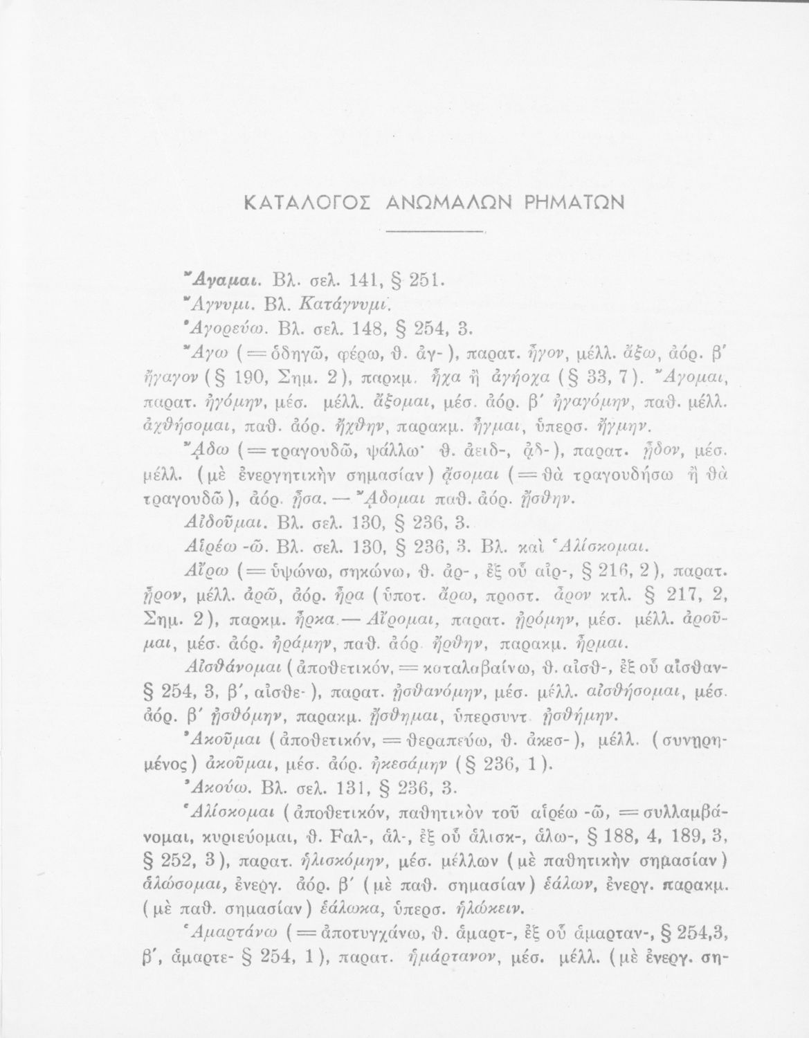 Σχολικό εγχειρίδιο Αρχαίων Ελληνικών Γυμνασίου που περιέχει τους κανόνες γραμματικής και είναι χωρισμένο σε φθογγολογικό, τυπολογικό και ετυμολογικό μέρος. Περιέχει και κατάλογο ανωμάλων ρημάτων.