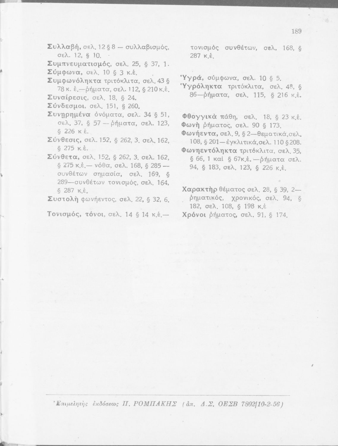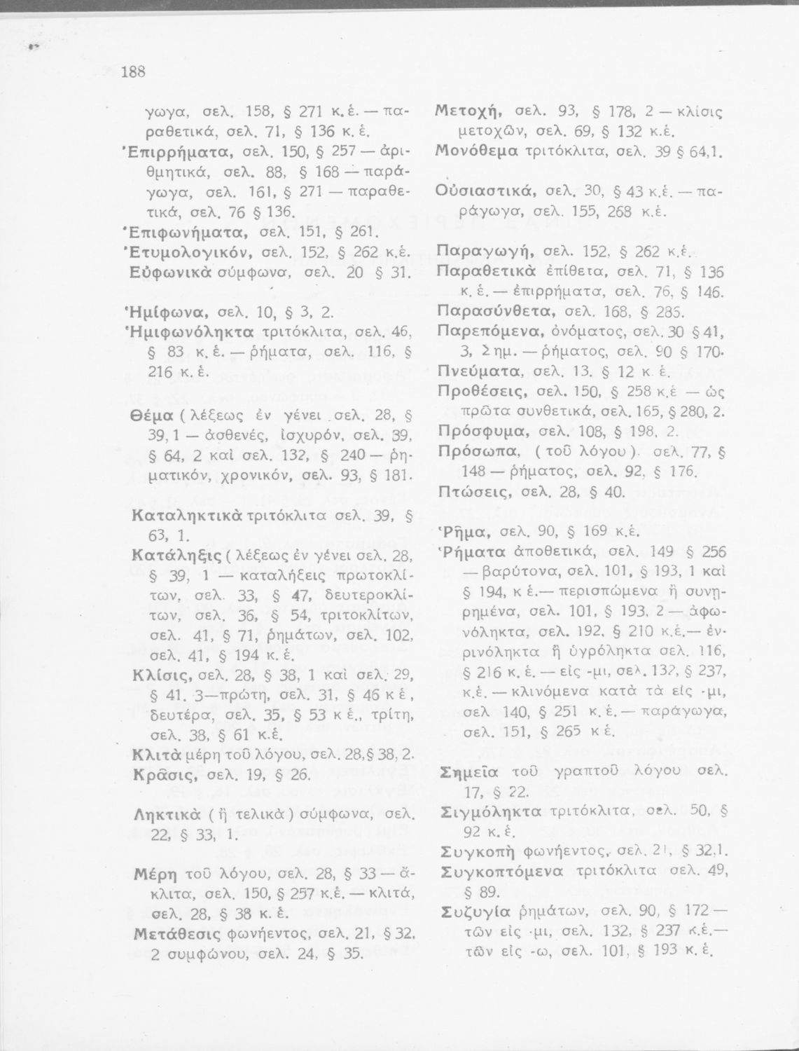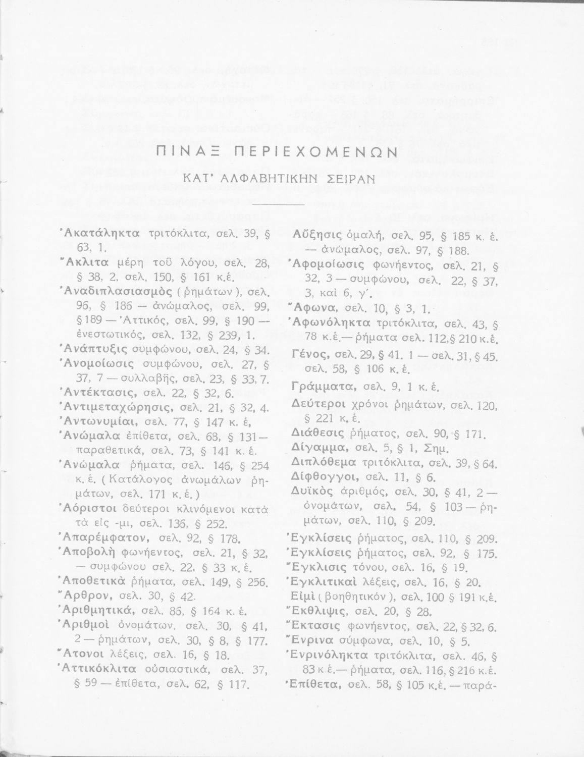 Σχολικό εγχειρίδιο Αρχαίων Ελληνικών Γυμνασίου που περιέχει τους κανόνες γραμματικής και είναι χωρισμένο σε φθογγολογικό, τυπολογικό και ετυμολογικό μέρος. Περιέχει και κατάλογο ανωμάλων ρημάτων.