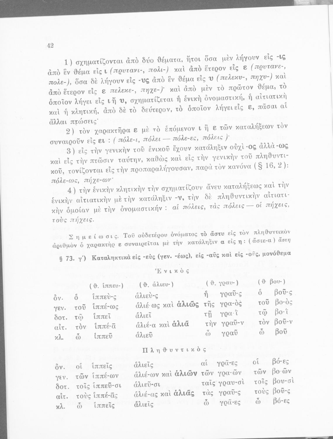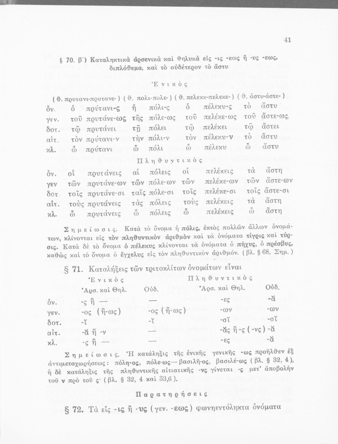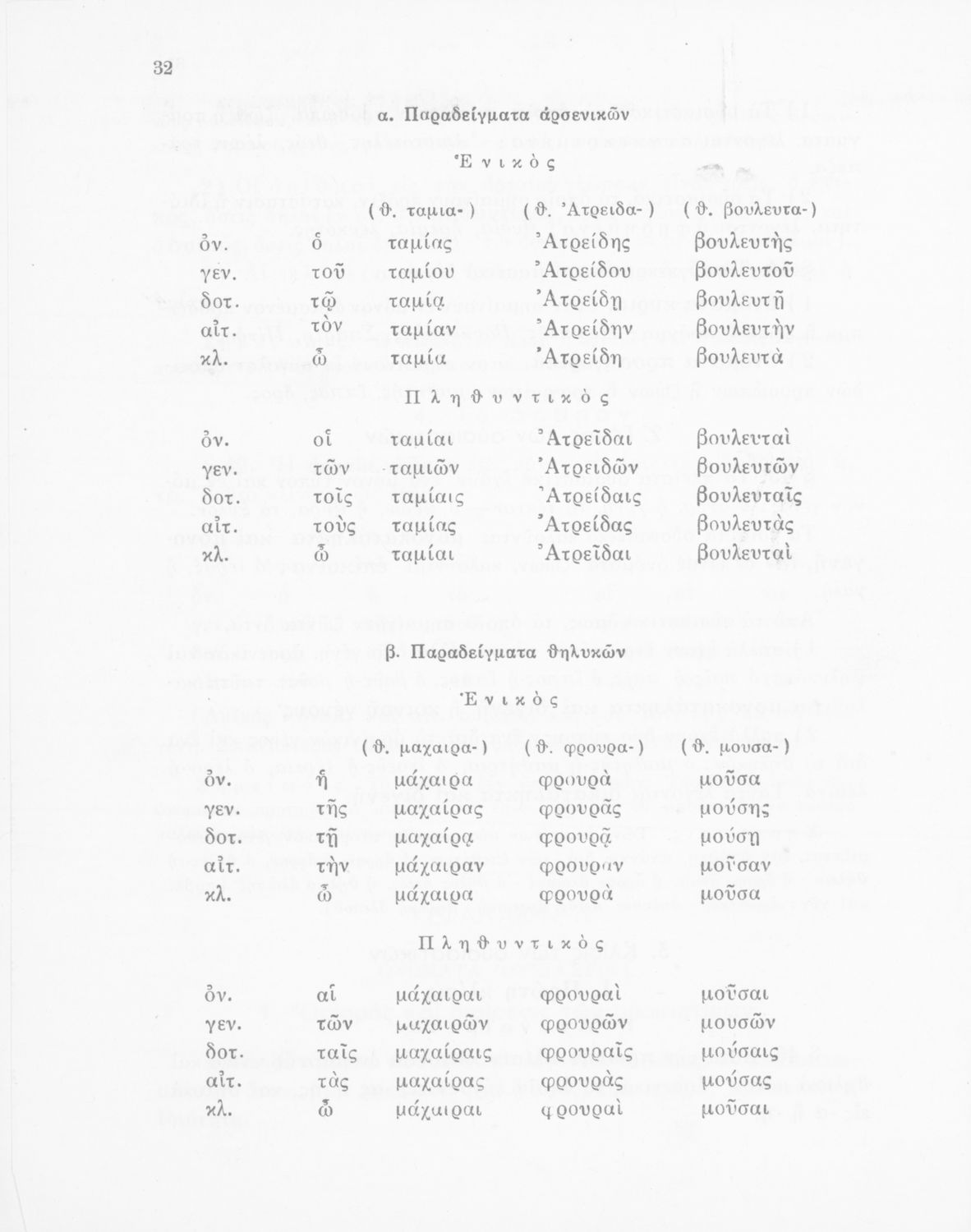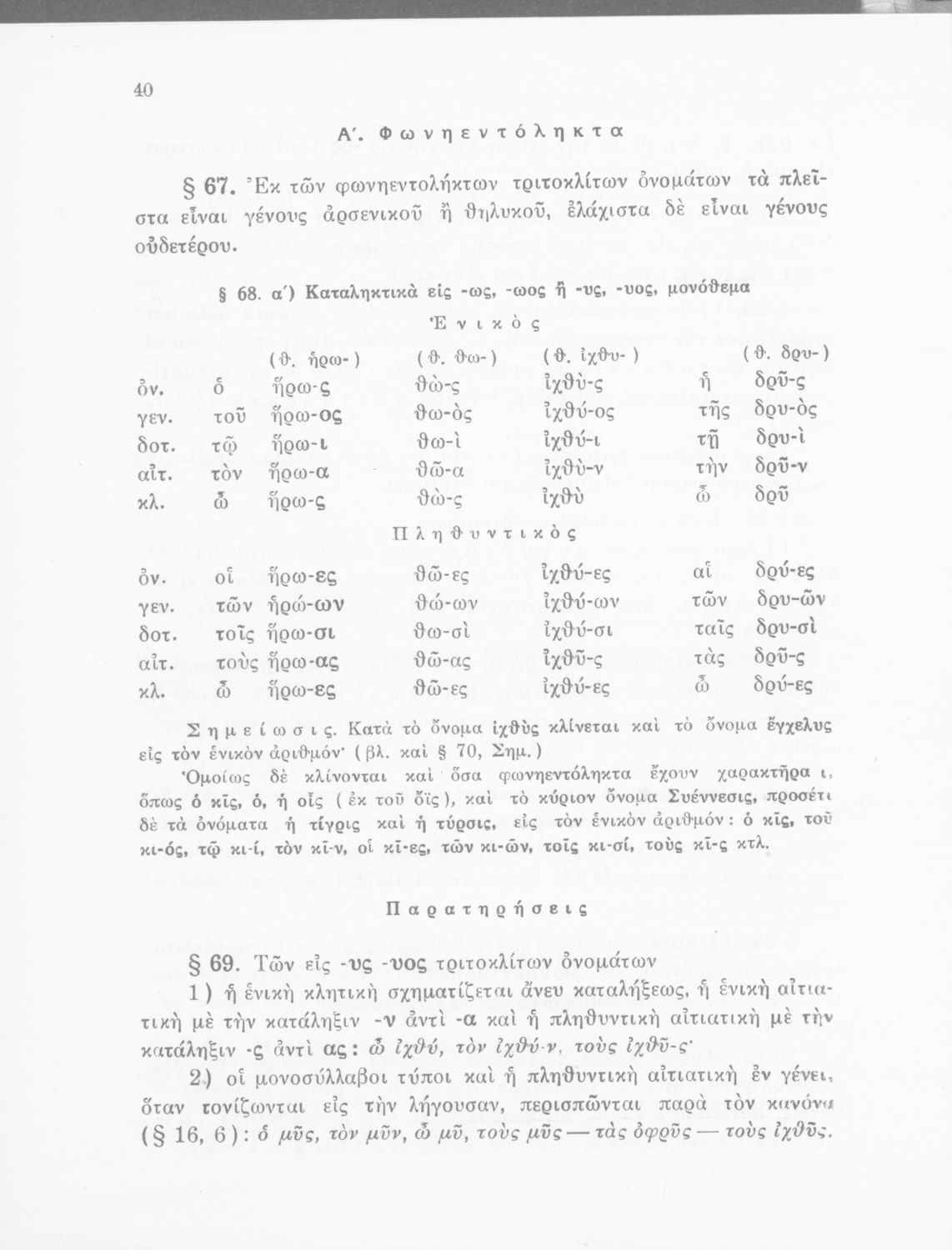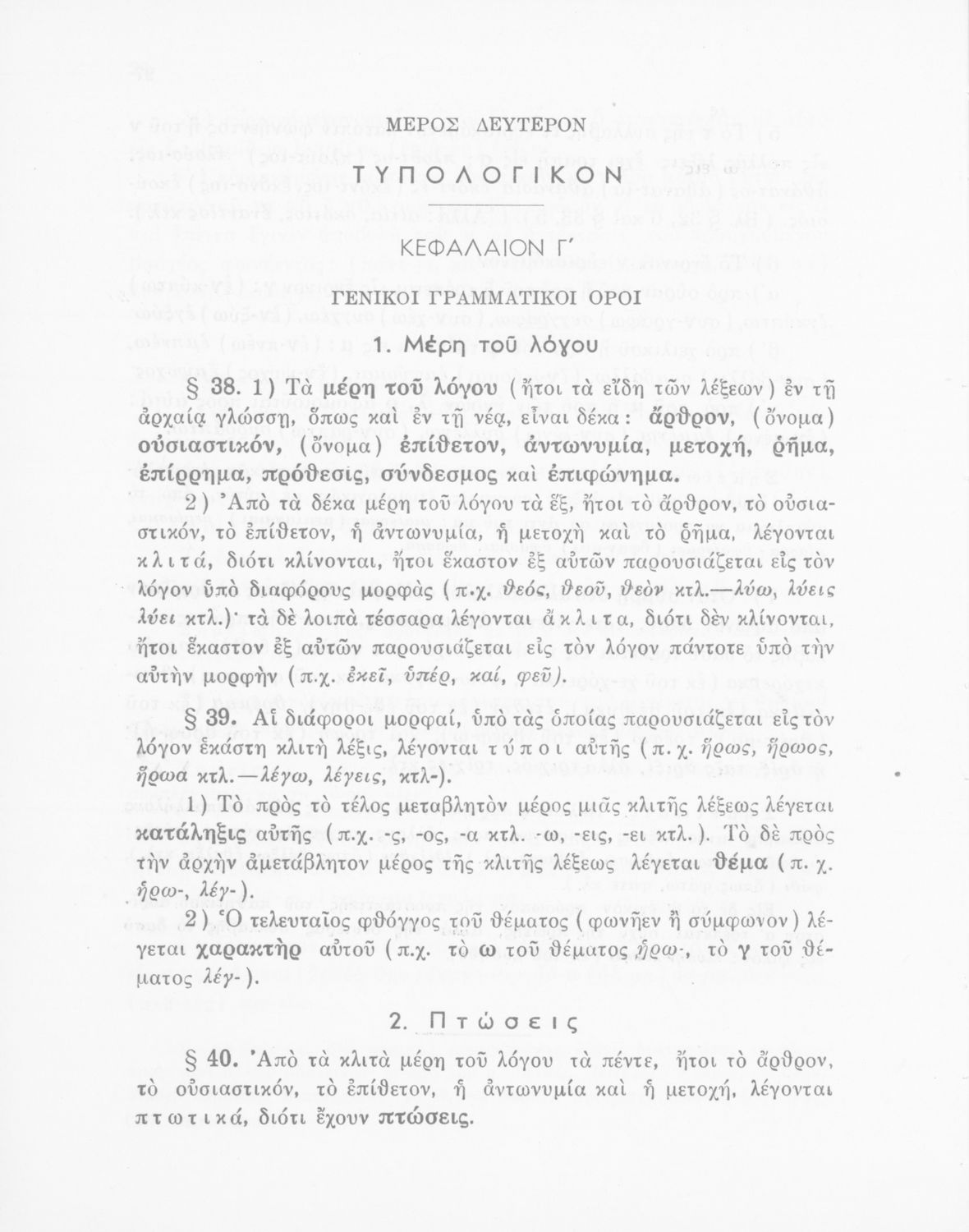 520 ## _aΣχολικό εγχειρίδιο Αρχαίων Ελληνικών Γυμνασίου που περιλαμβάνει τους κανόνες γραμματικής και είναι χωρισμένη στο φθογγολογικό, το τυπολογικό και ετυμολογικό μέρος.