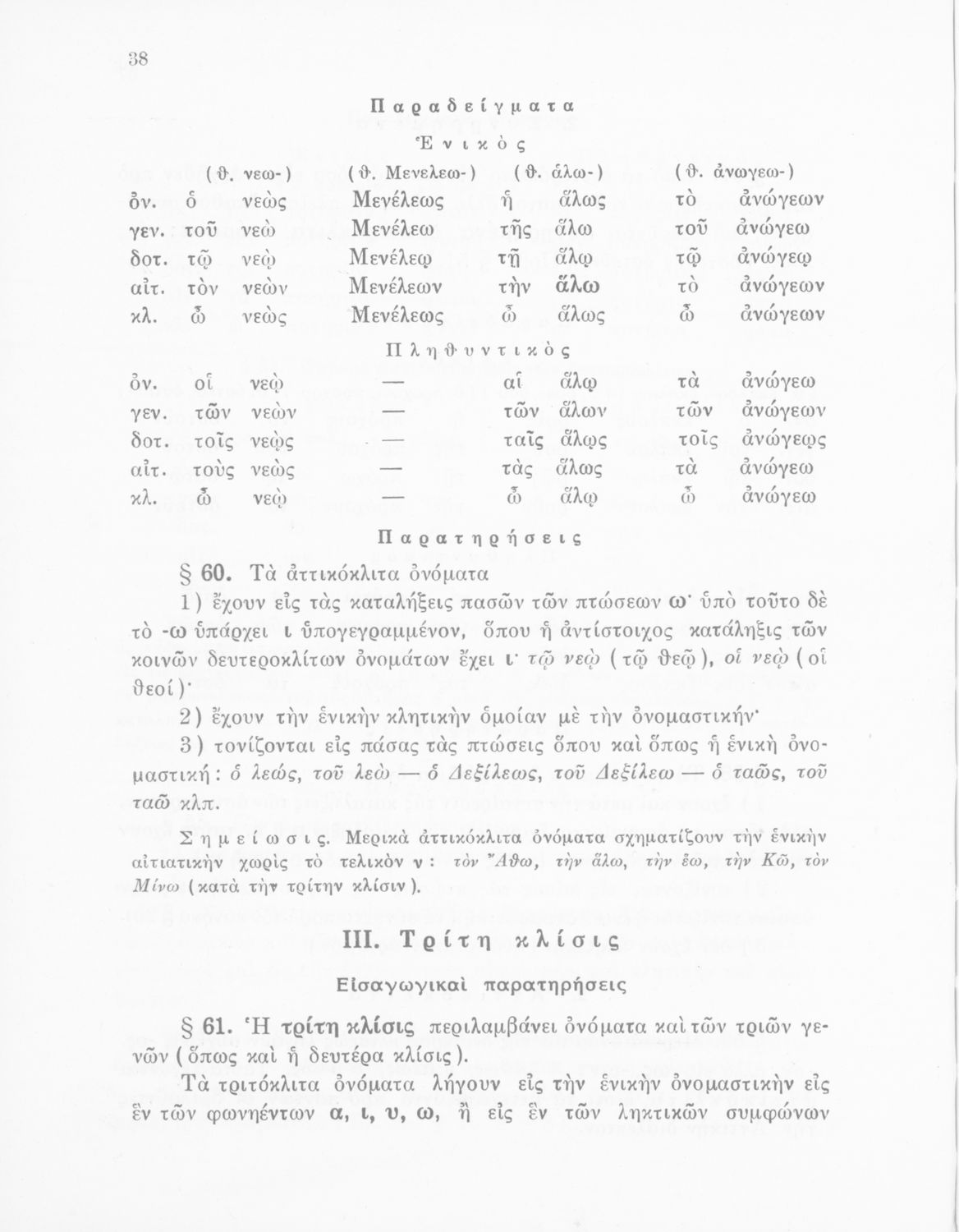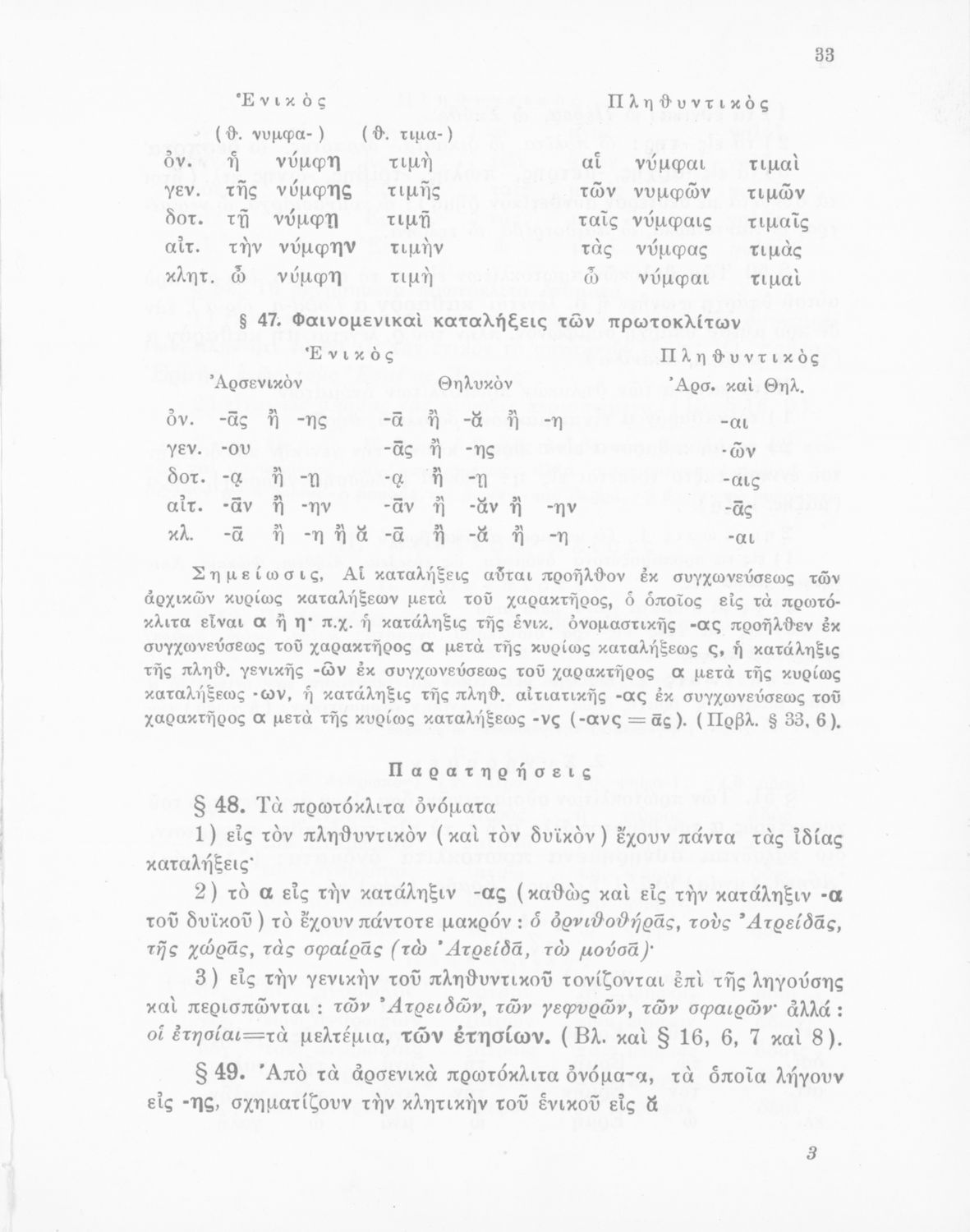 Σχολικό εγχειρίδιο Αρχαίων Ελληνικών Γυμνασίου που περιλαμβάνει τους κανόνες γραμματικής και είναι χωρισμένη στο φθογγολογικό, το τυπολογικό και ετυμολογικό μέρος.