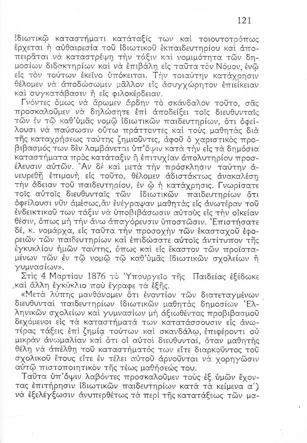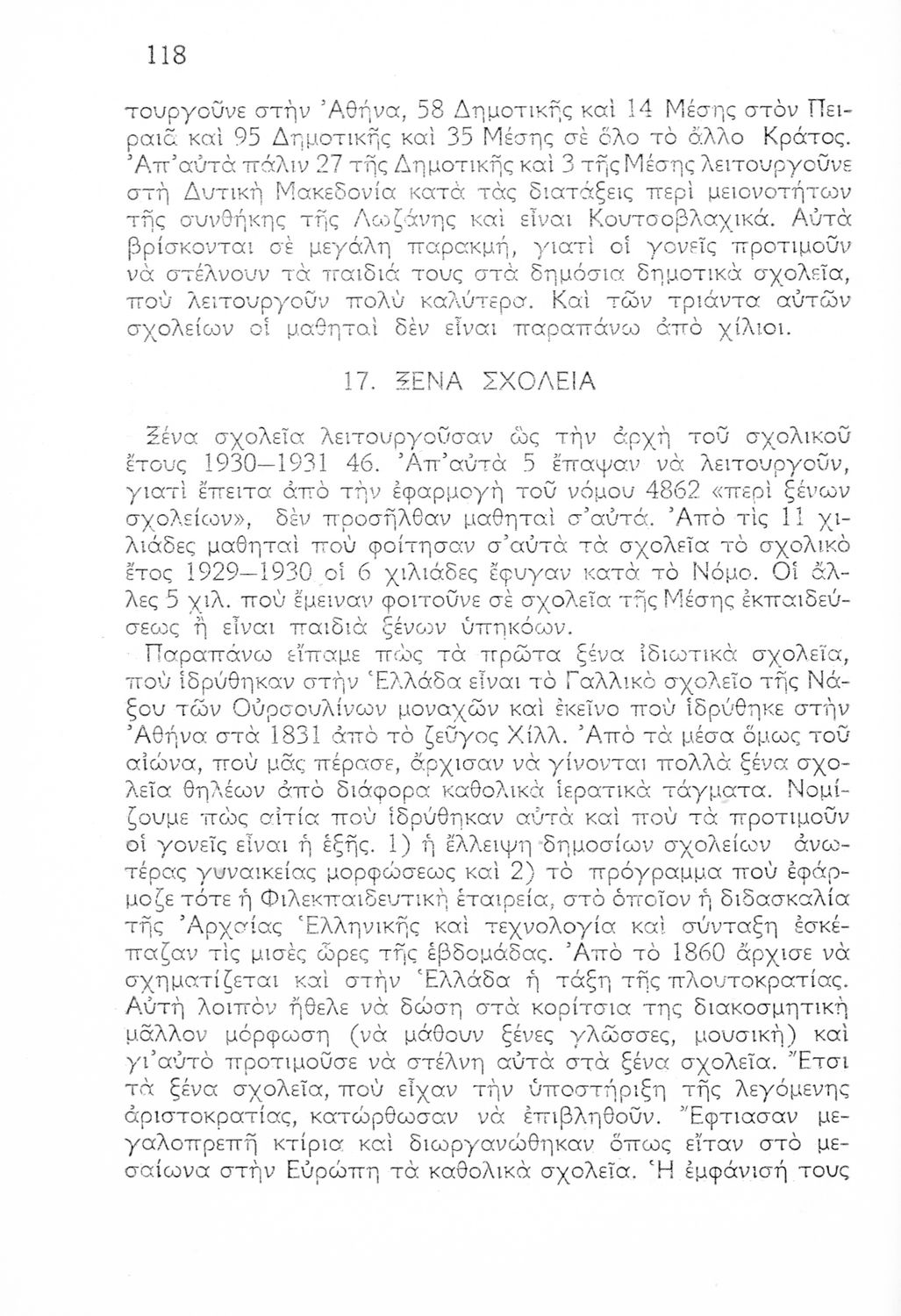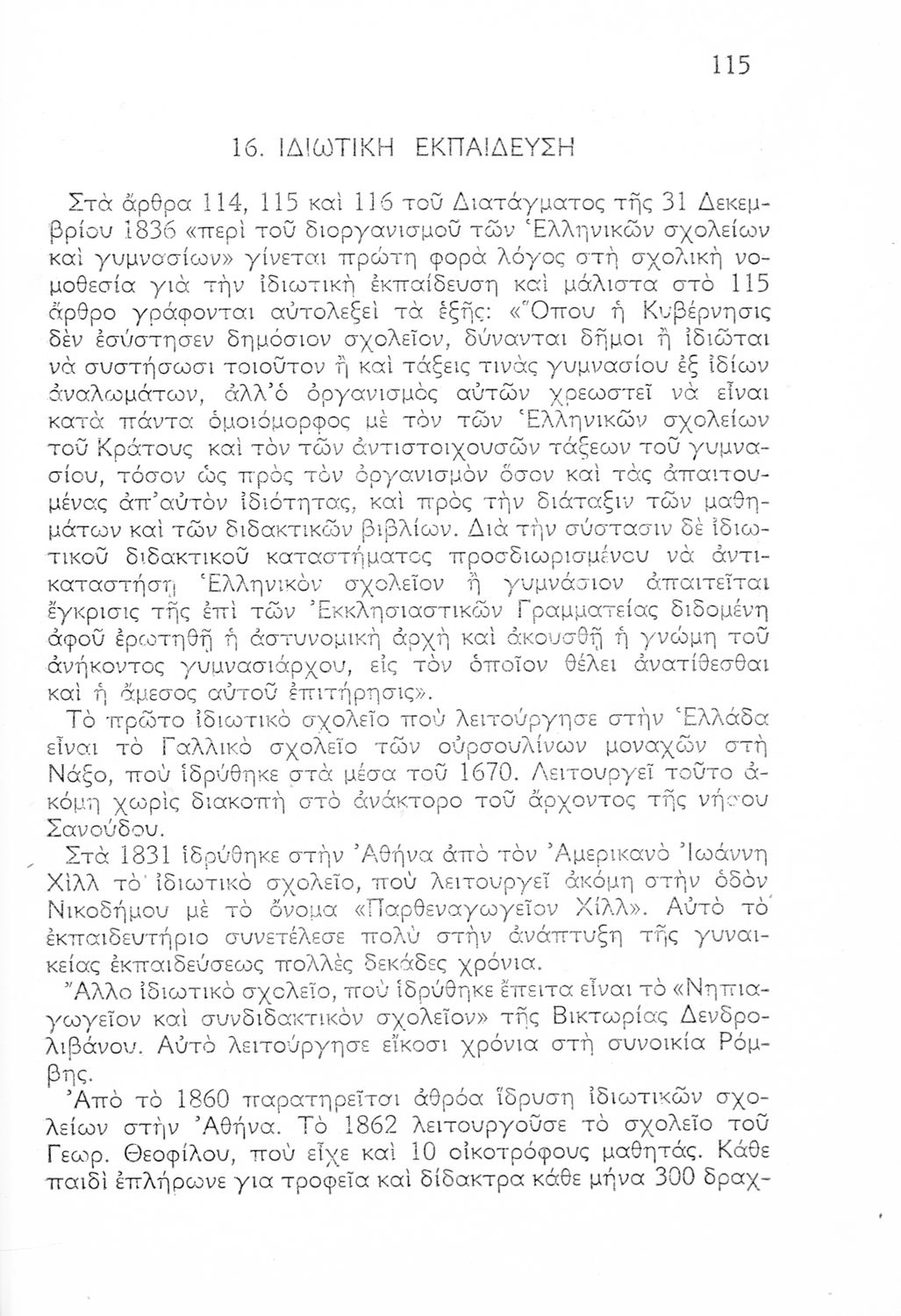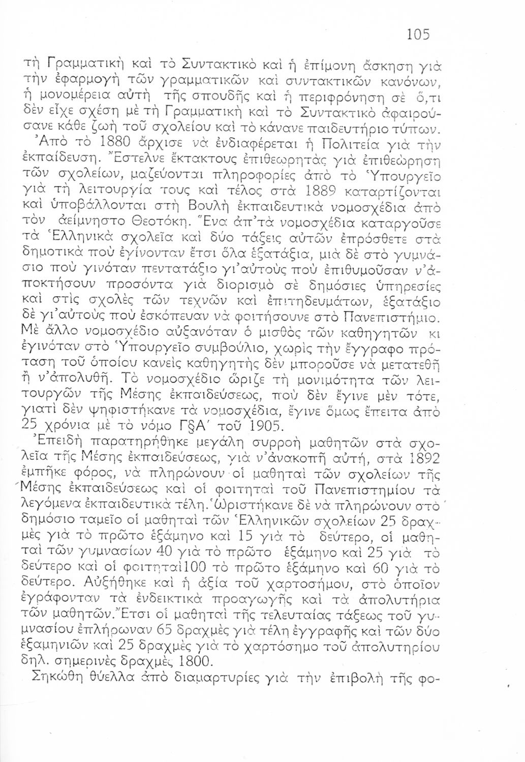 Ιστορική καταγραφή της κατάστασης του εκπαιδευτικού συστήματος από την ίδρυση του ελληνικού κράτους μέχρι το Μεσοπόλεμο μέσα από τεκμήρια. Οι συγγραφείς υπήρξαν επιθεωρητές ιδιωτικών και ξένων Δημοτικών Σχολείων.