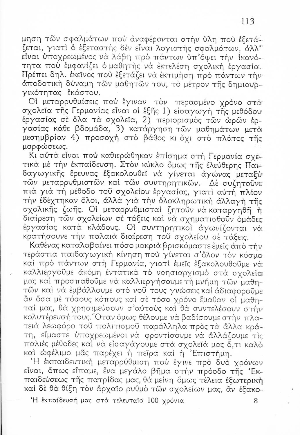 Η εκπαίδευση μας στα τελευταία 100 χρόνια