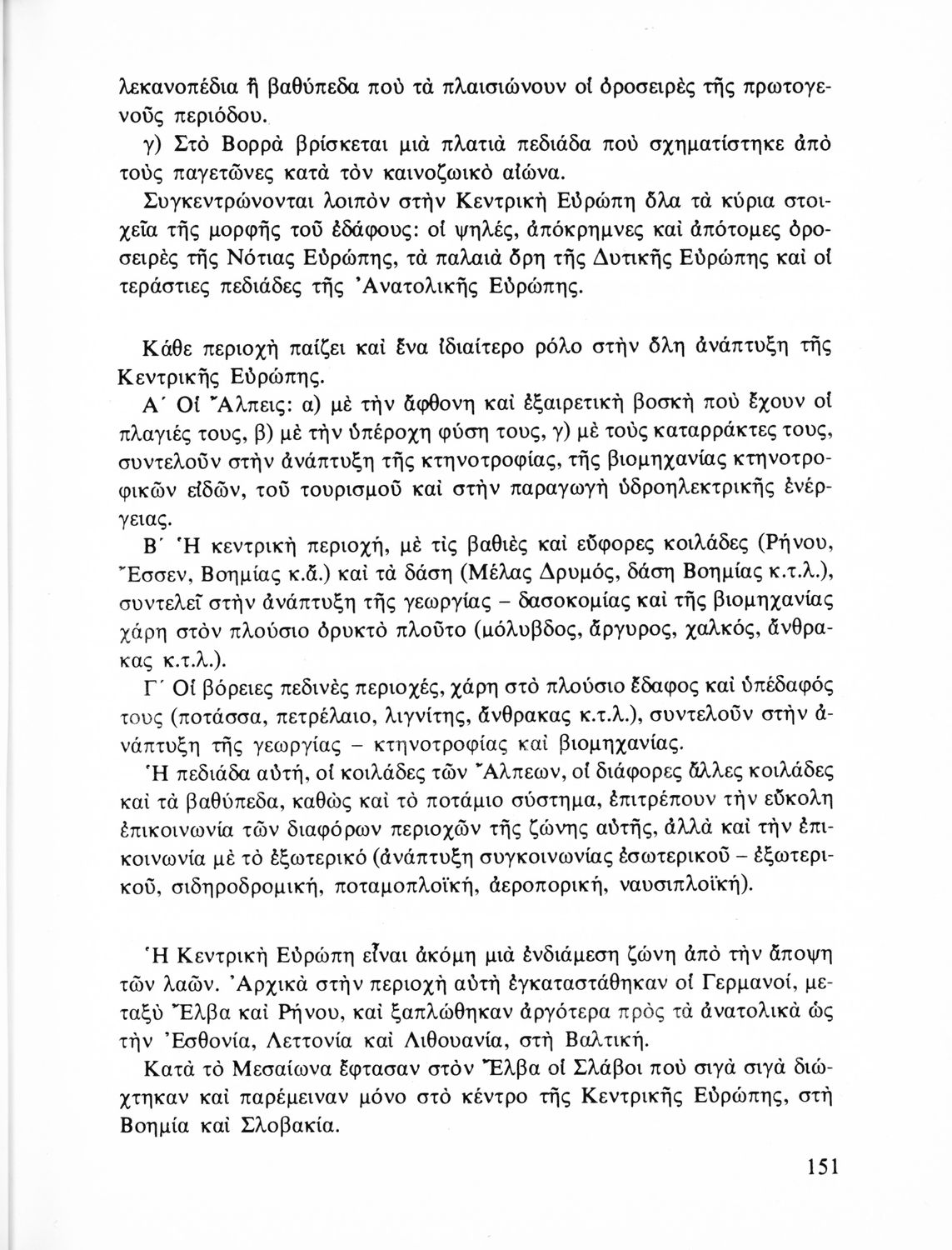 Βαθμίδα εκπαίδευσης: Δευτεροβάθμια Τάξη: Β' Γυμνασίου Μάθημα: Γεωγραφία Γλώσσα: Δημοτική Παρουσίαση περιεχομένου: Σχολικό εγχειρίδιο Γεωγραφίας Β' Γυμνασίου που περιλαμβάνει εισαγωγή στη φυσική και μαθηματική γεωγραφία και παρουσιάζει τις χώρες της Ευρώπης από γεωμορφολογική, πολιτική, πολιτισμική και οικονομική άποψη. Περιέχει και αναφορά στις οικονομικές σχέσεις της Ελλάδας με τα ευρωπαϊκά κράτη. |