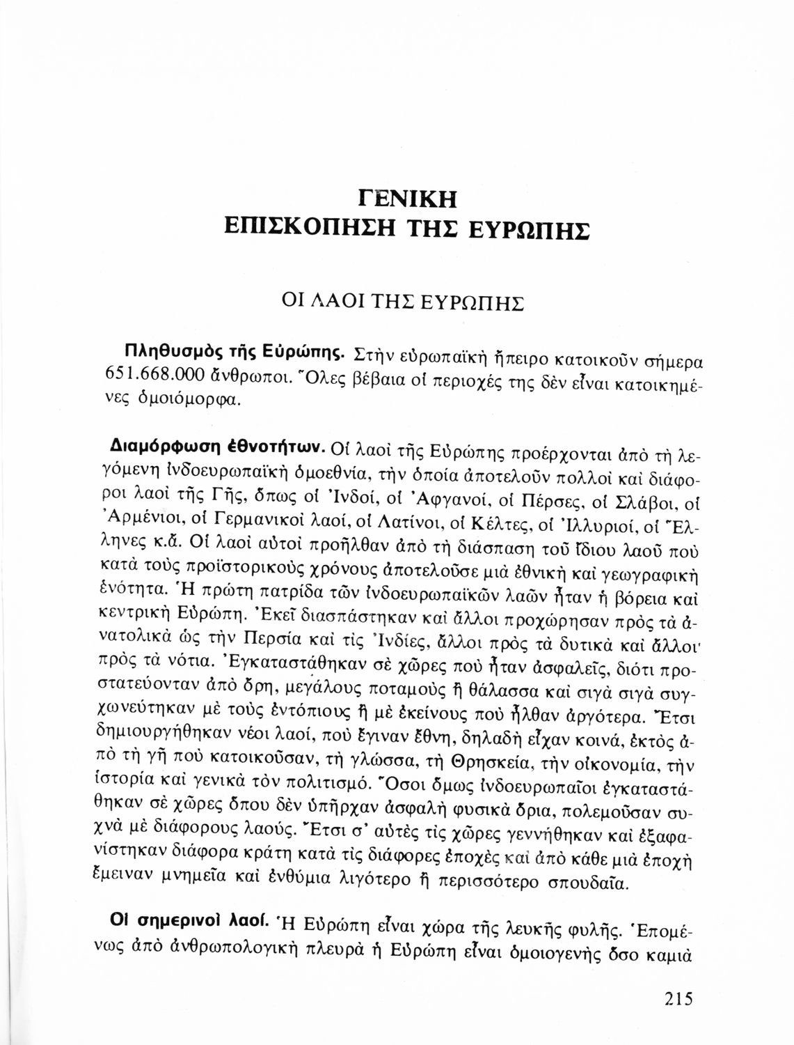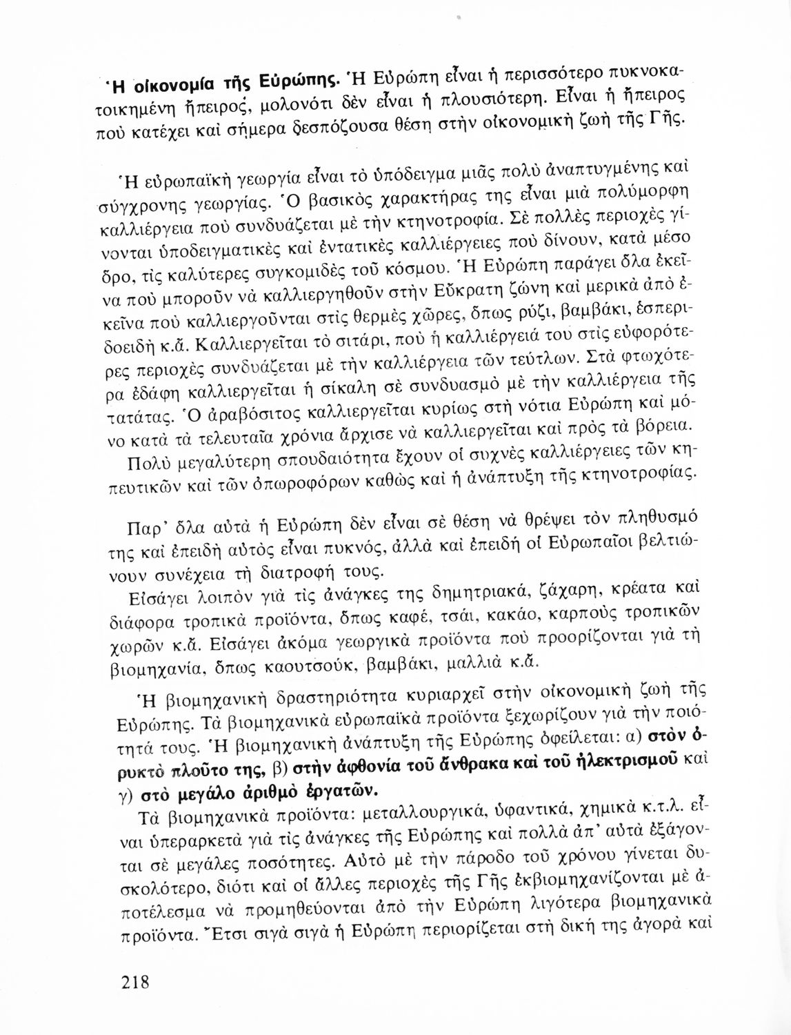 Σχολικό εγχειρίδιο Γεωγραφίας Β' Γυμνασίου που περιλαμβάνει εισαγωγή στη φυσική και μαθηματική γεωγραφία και παρουσιάζει τις χώρες της Ευρώπης από γεωμορφολογική, πολιτική, πολιτισμική και οικονομική άποψη. Περιέχει και αναφορά στις οικονομικές σχέσεις της Ελλάδας με τα ευρωπαϊκά κράτη.